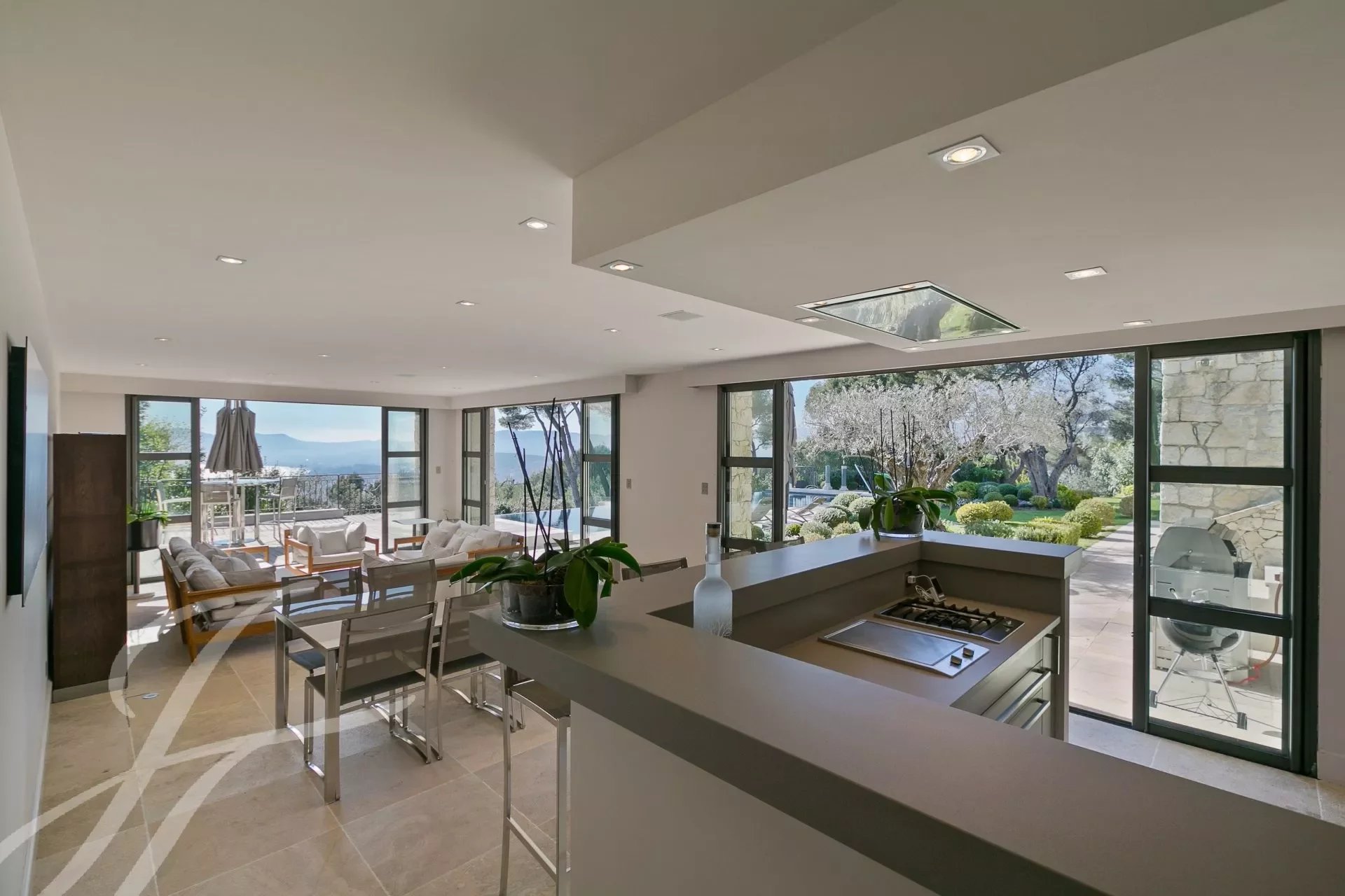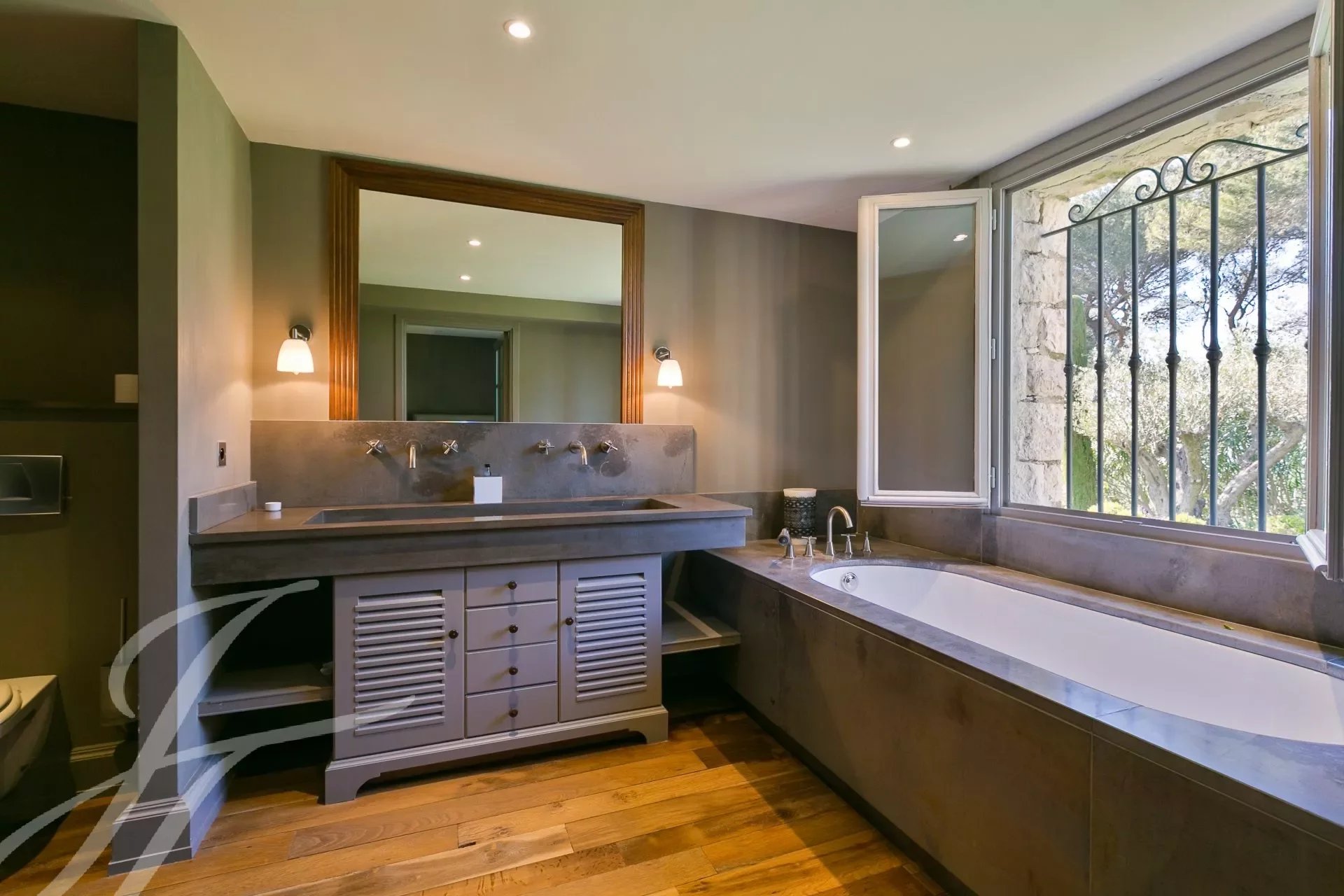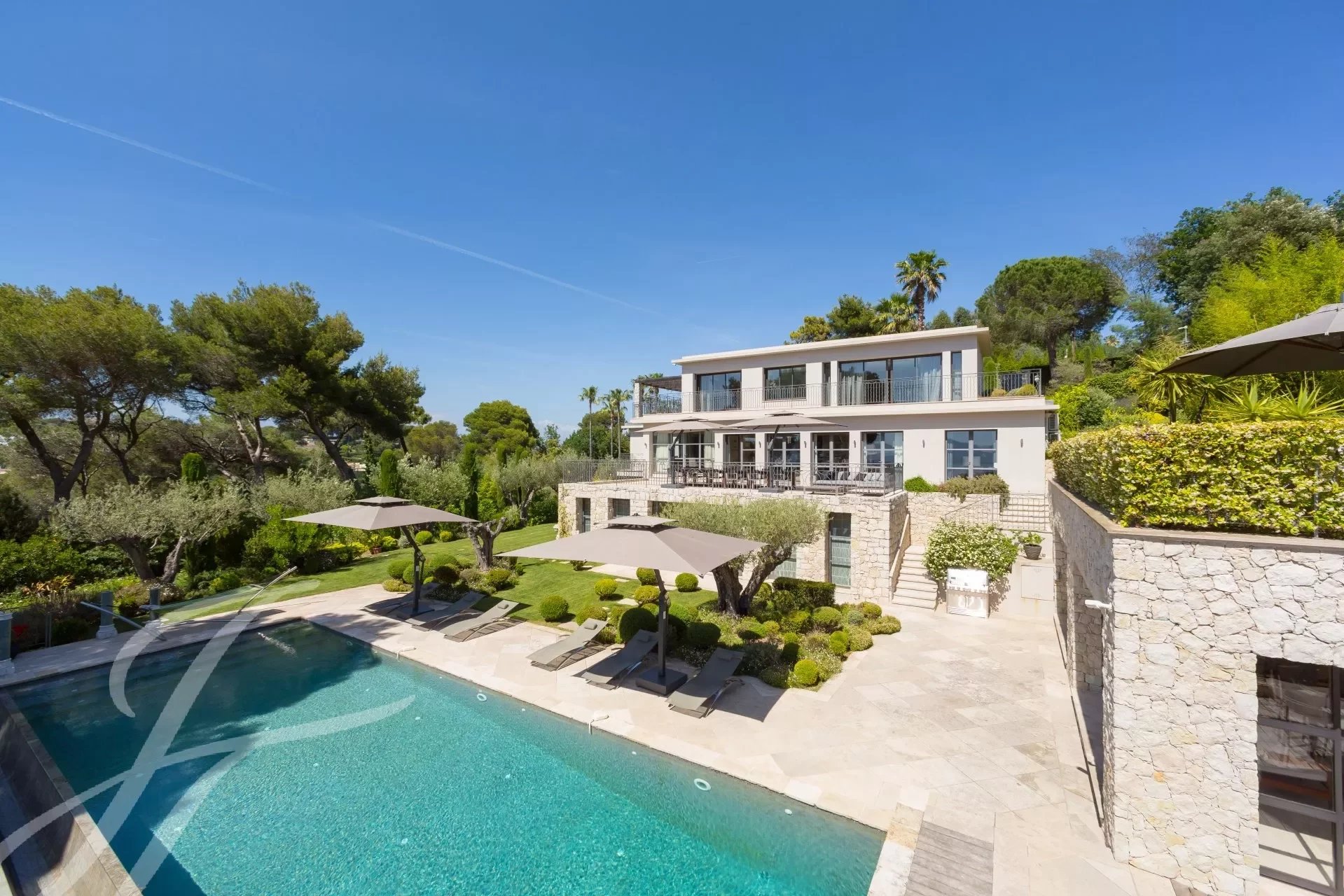 This superb property is situated in the hills above Cannes, in the prestigious Super Cannes area. It is surrounded by a meticulously maintained landscaped garden of approximately 4,450 square meters and features a stunning infinity pool measuring 17 meters by 6 meters.