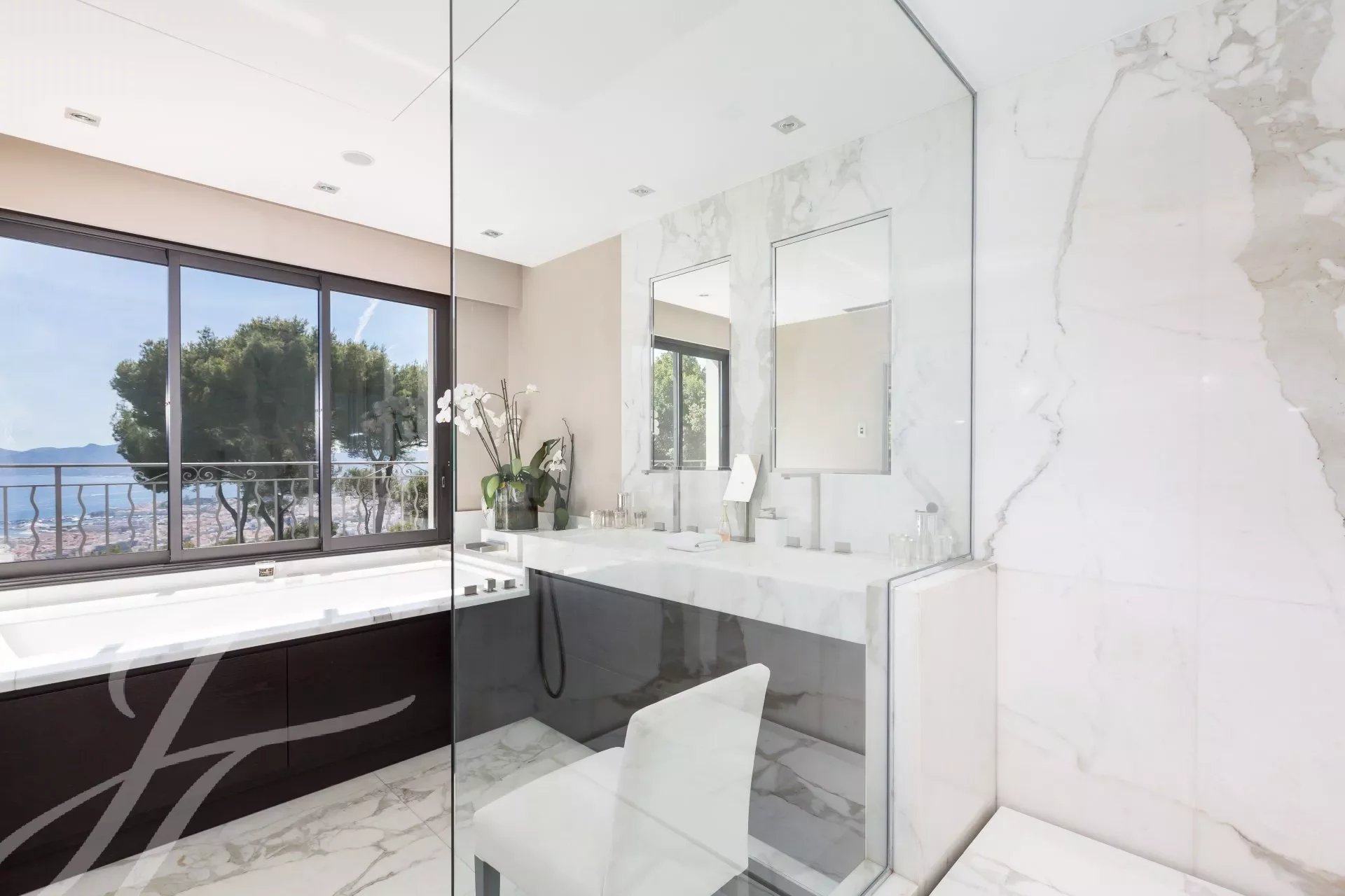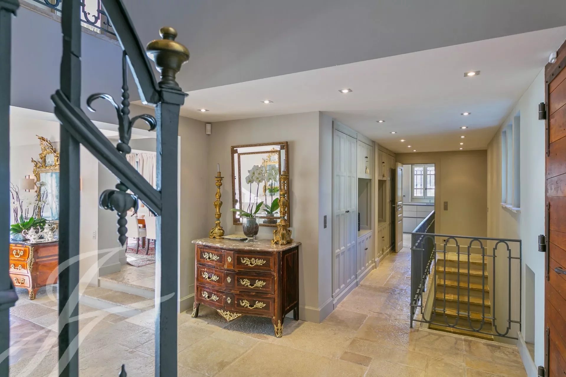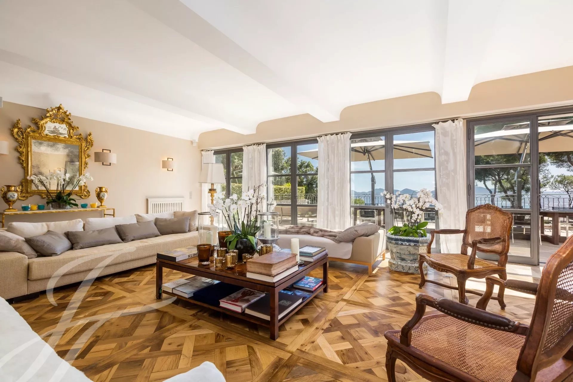 The villa has been recently renovated, is fully air-conditioned, and offers breathtaking views of the bay of Cannes. With a southwest exposure, the villa spans roughly 500 square meters and includes: