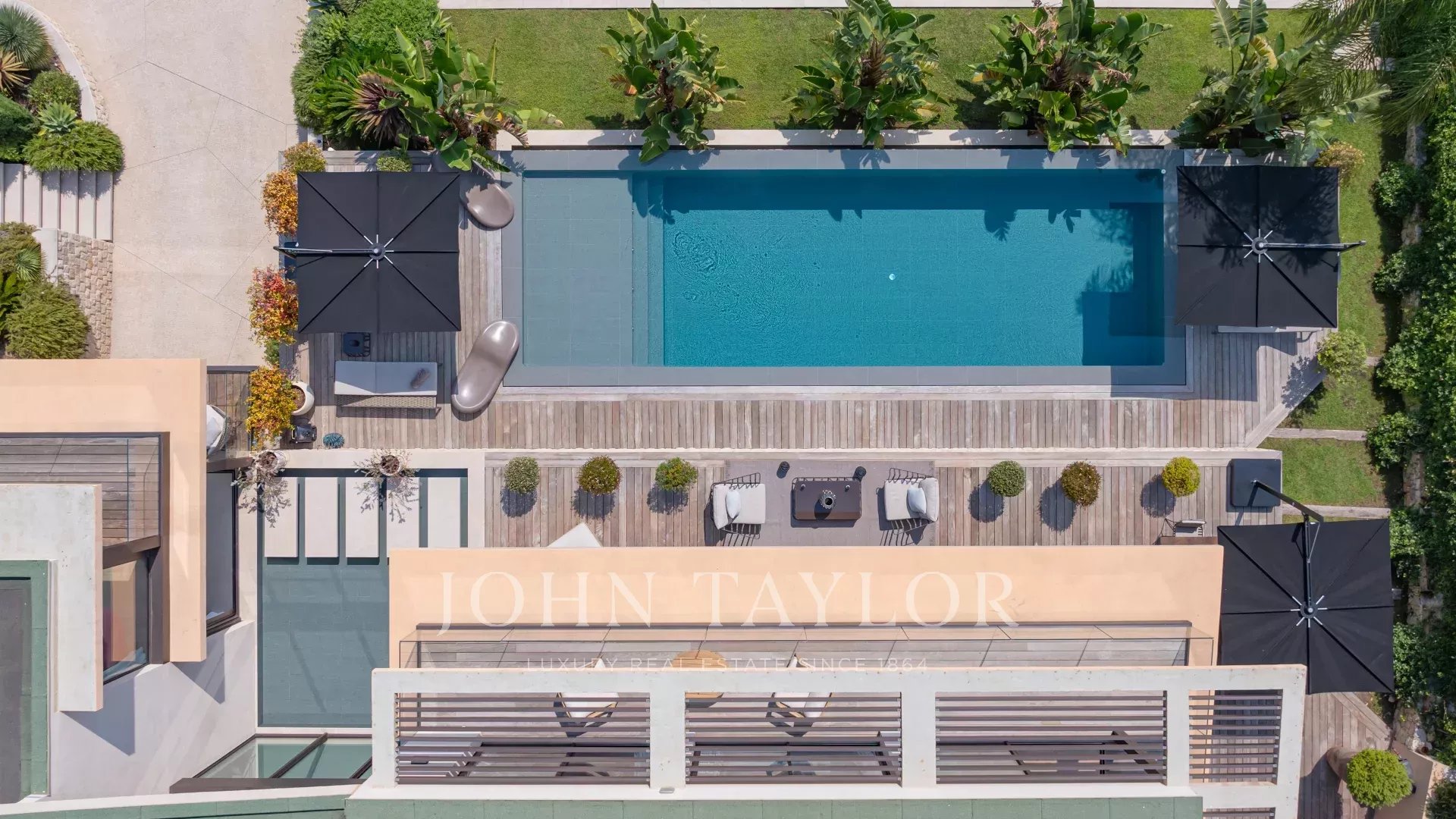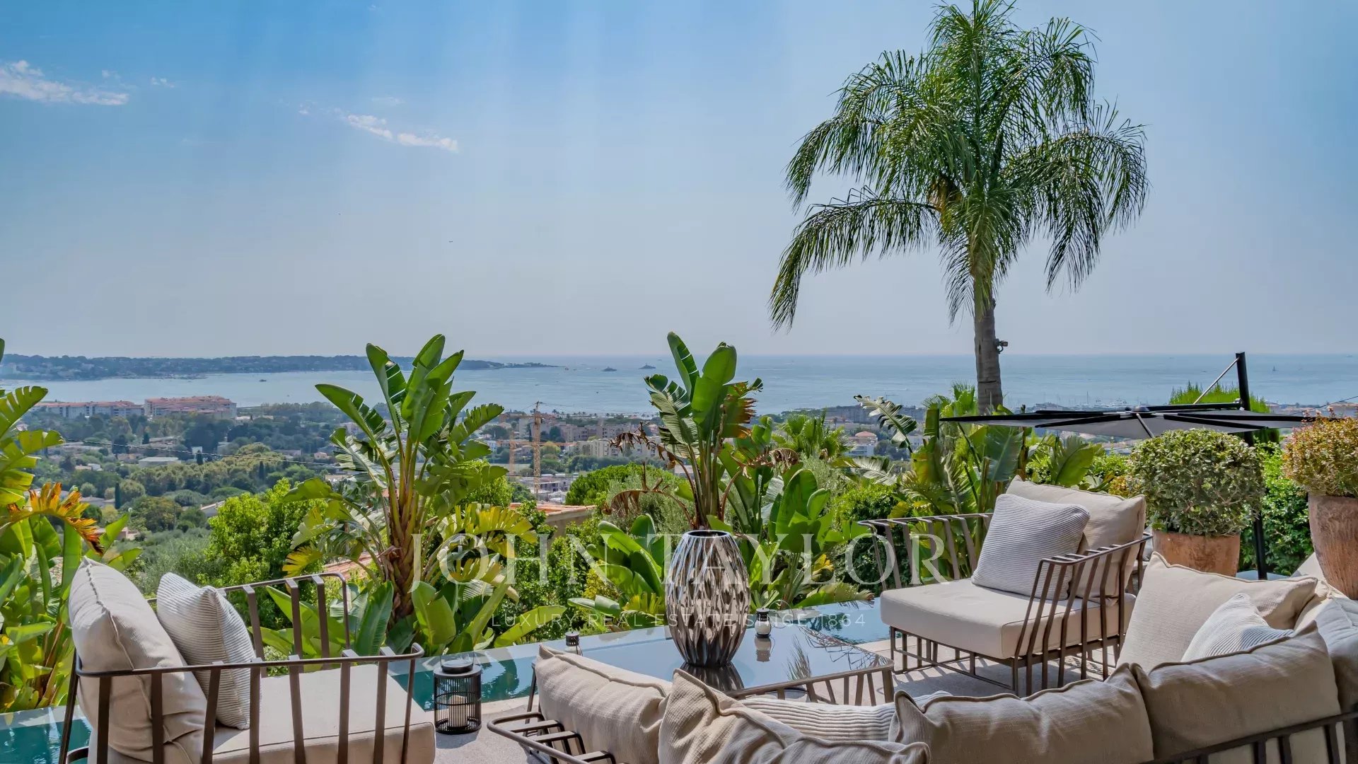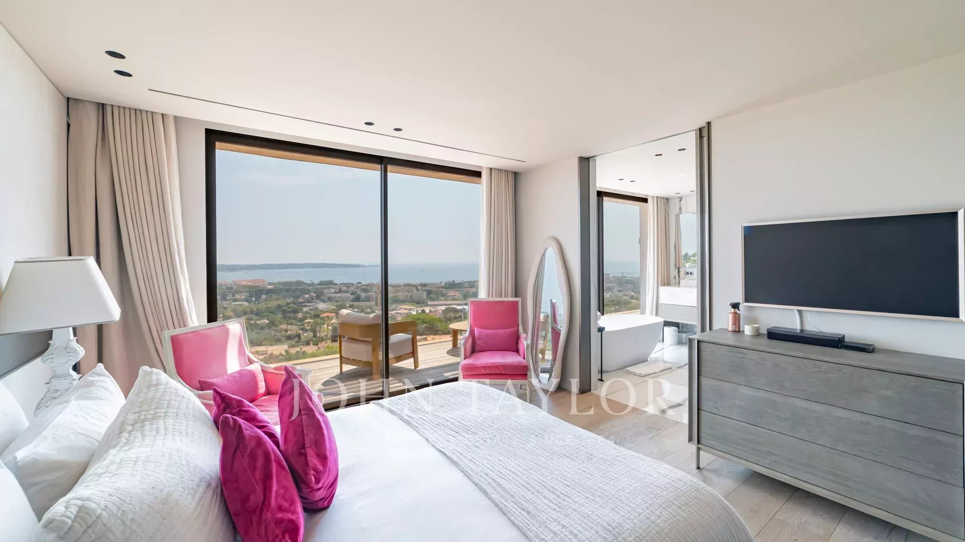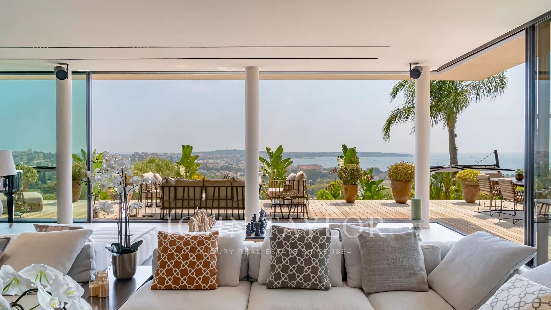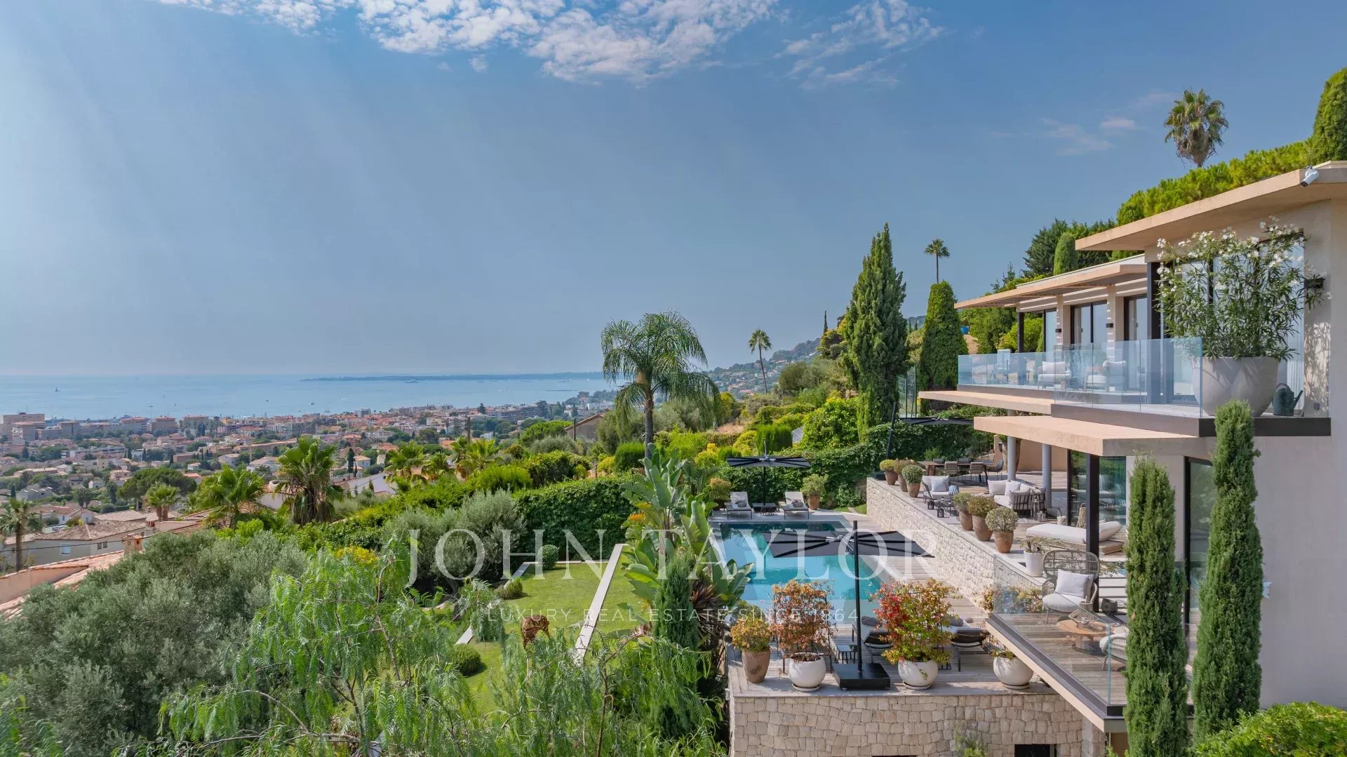 Ideally located in Golfe Juan, this new architect-designed house offers panoramic views of the sea and Cap d'Antibes.