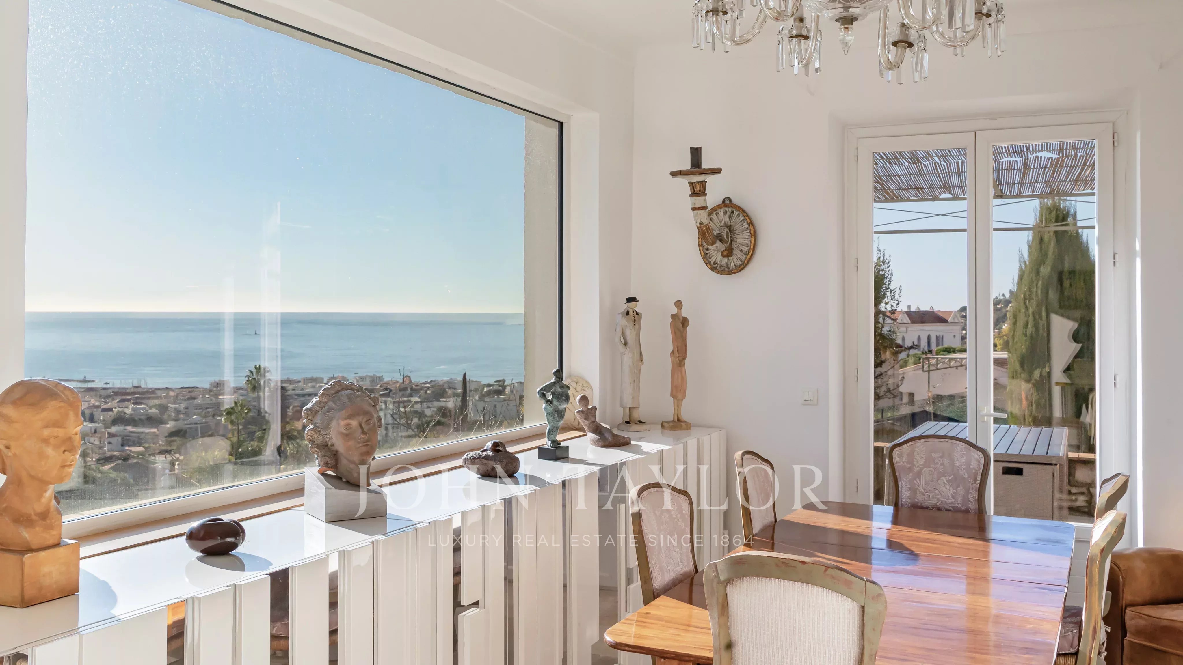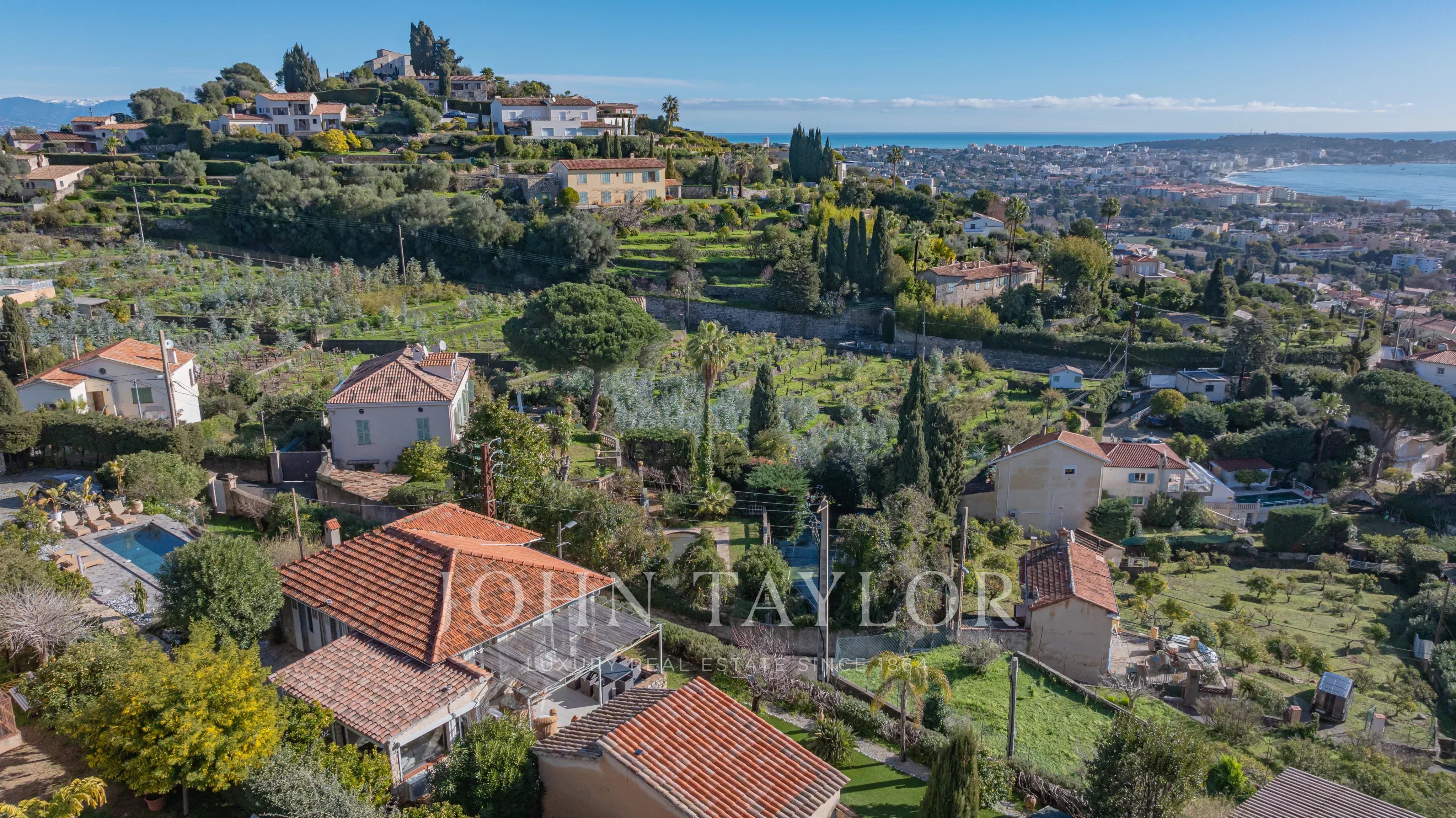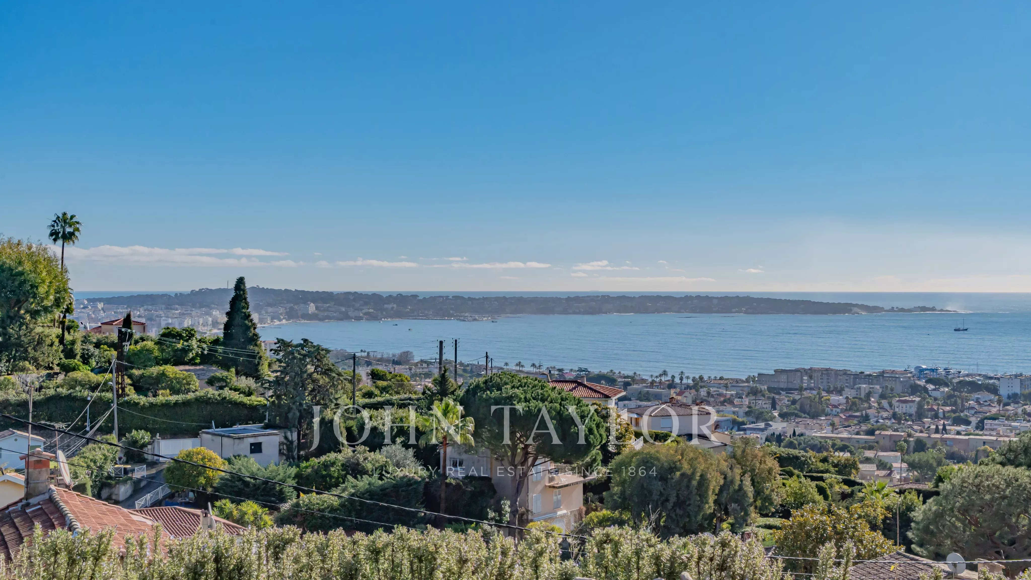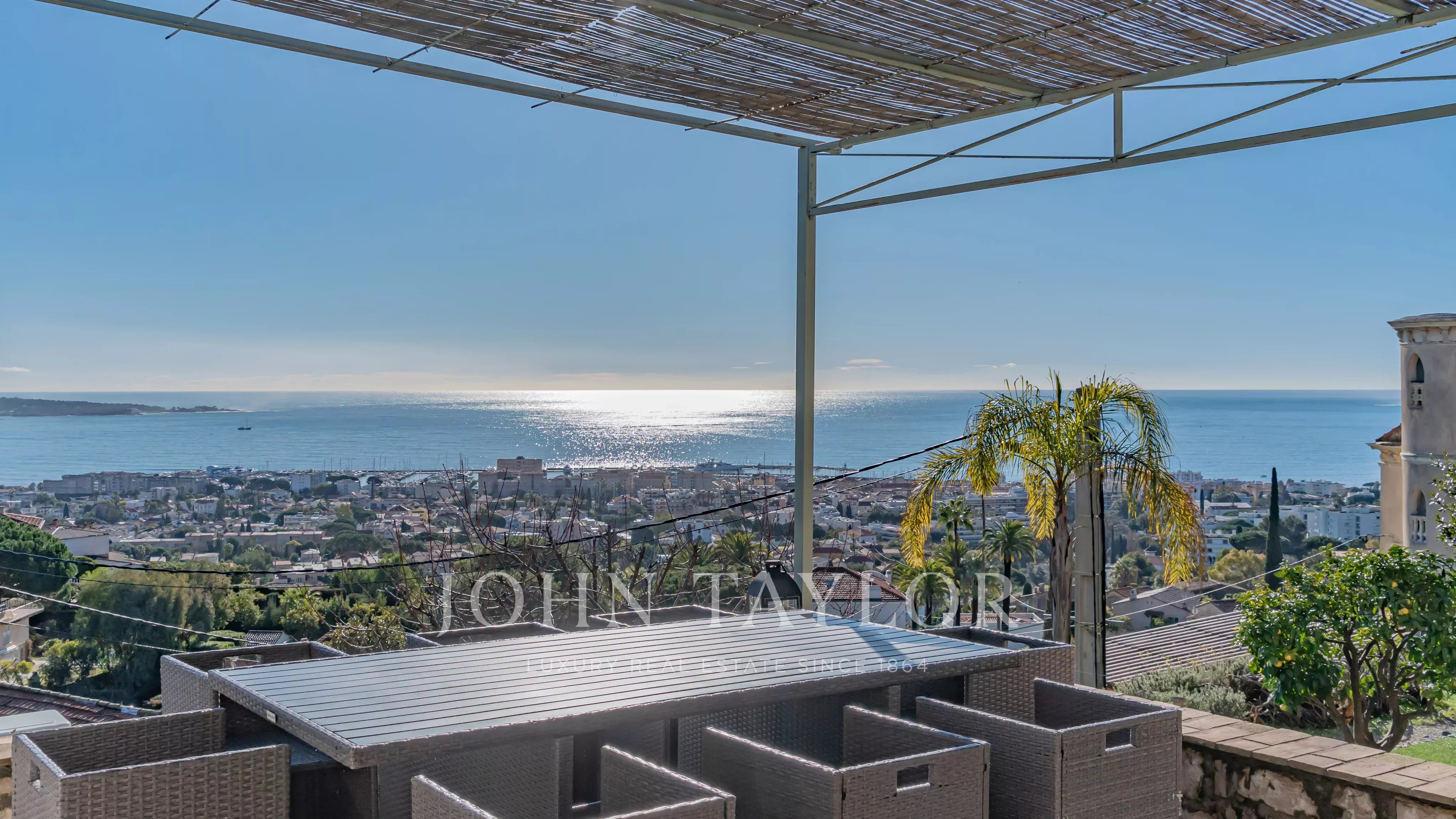 In Golfe-Juan, close to the village and the sea, magnificent charming villa with enchanting sea views and beautiful pool.