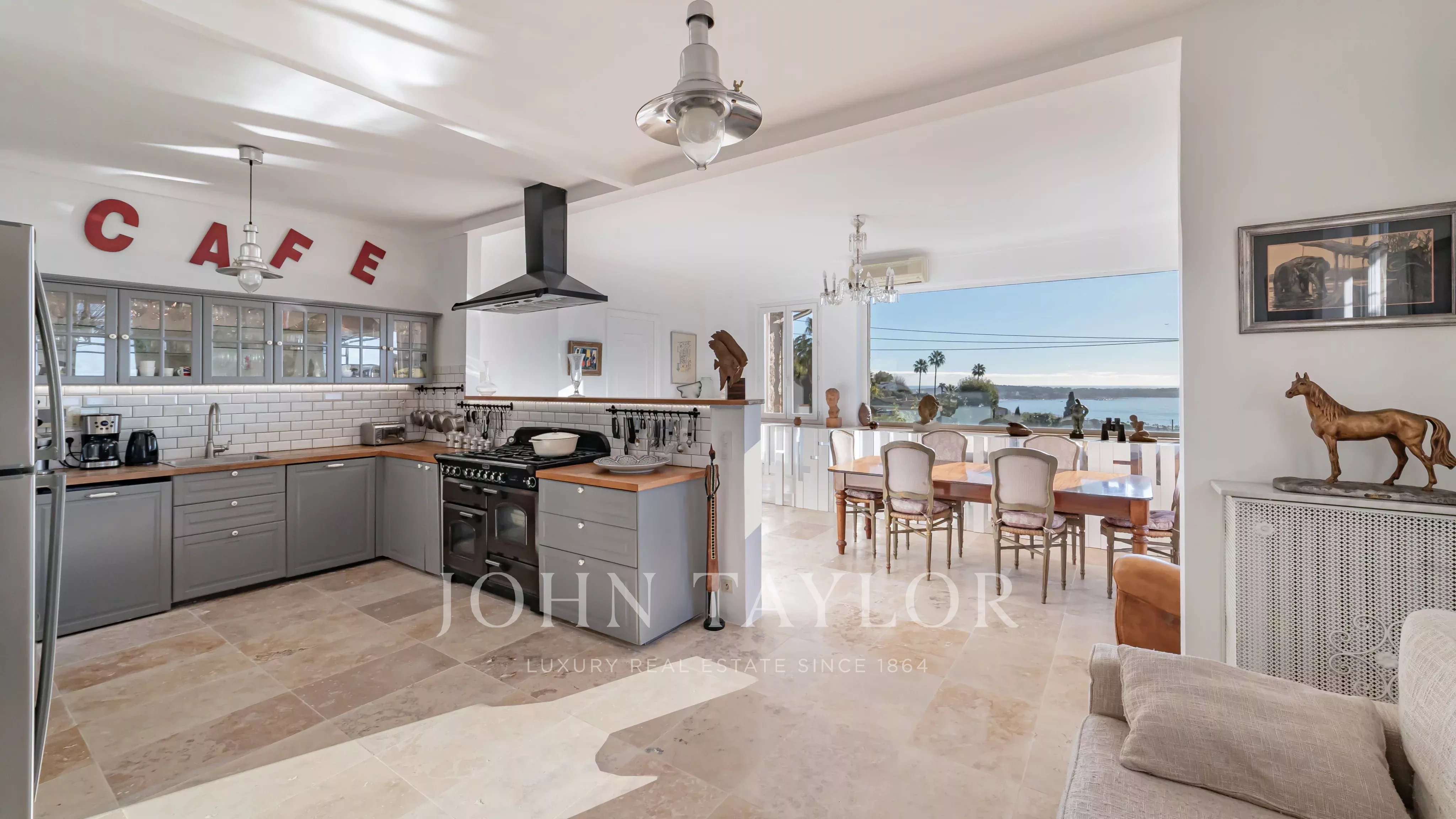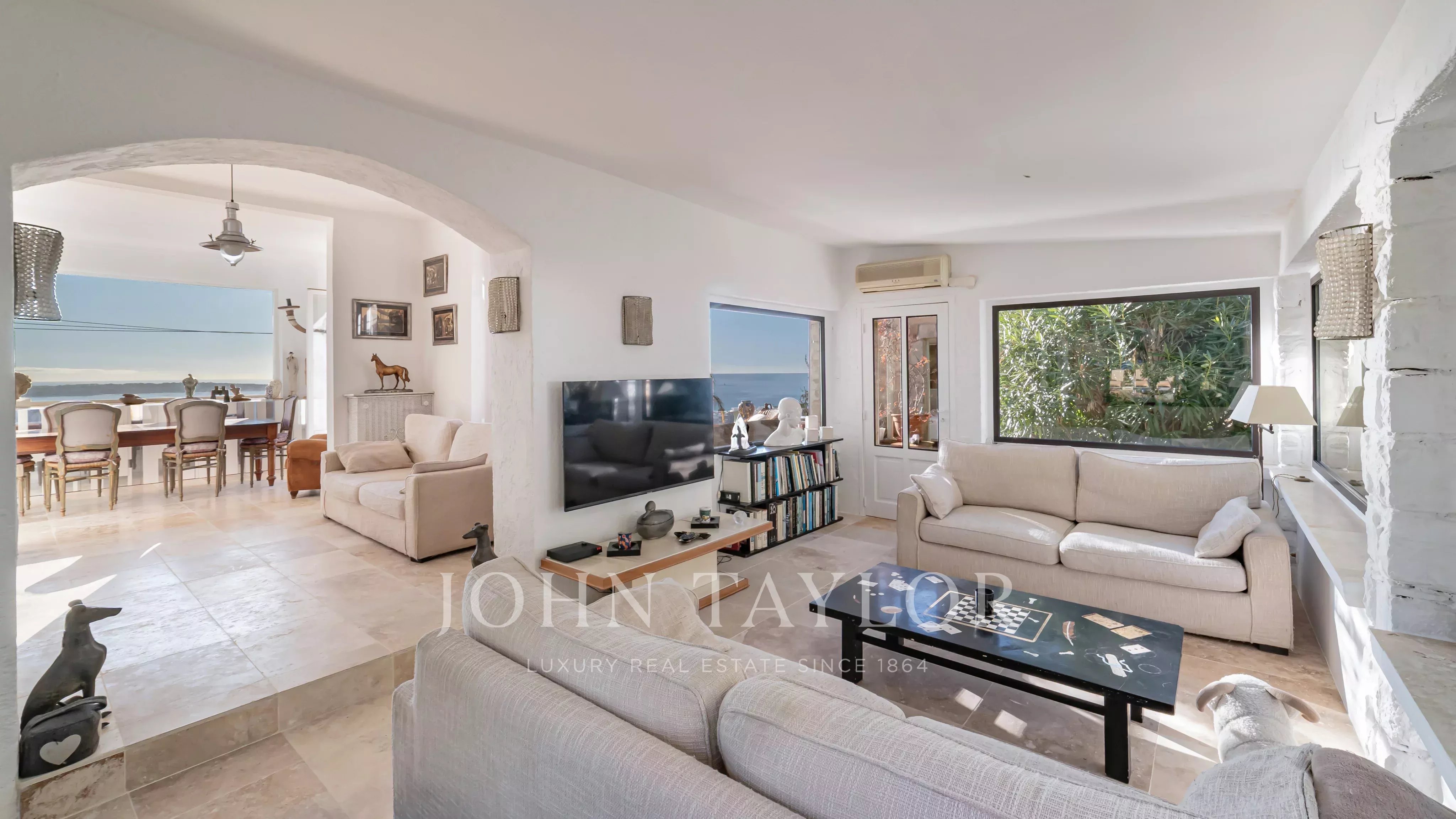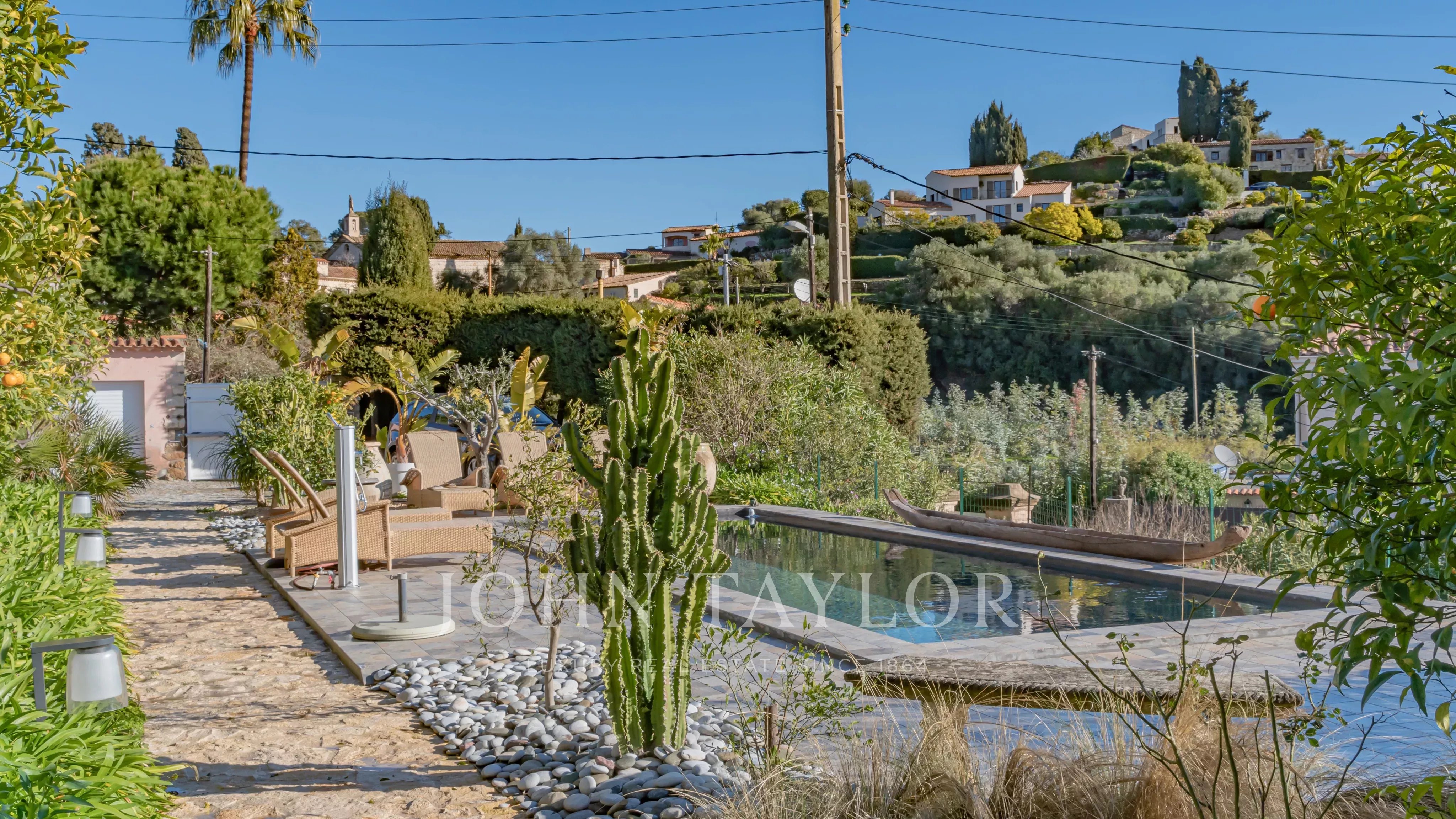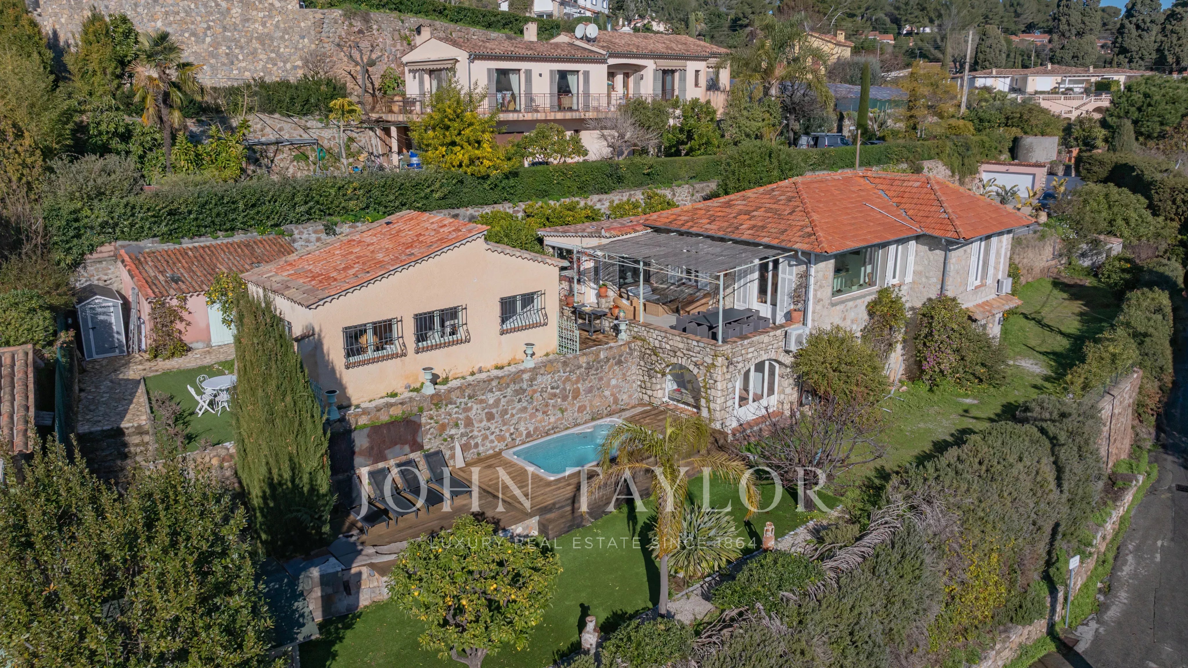 In Golfe-Juan, close to the village and the sea, magnificent charming villa with enchanting sea views and beautiful pool.