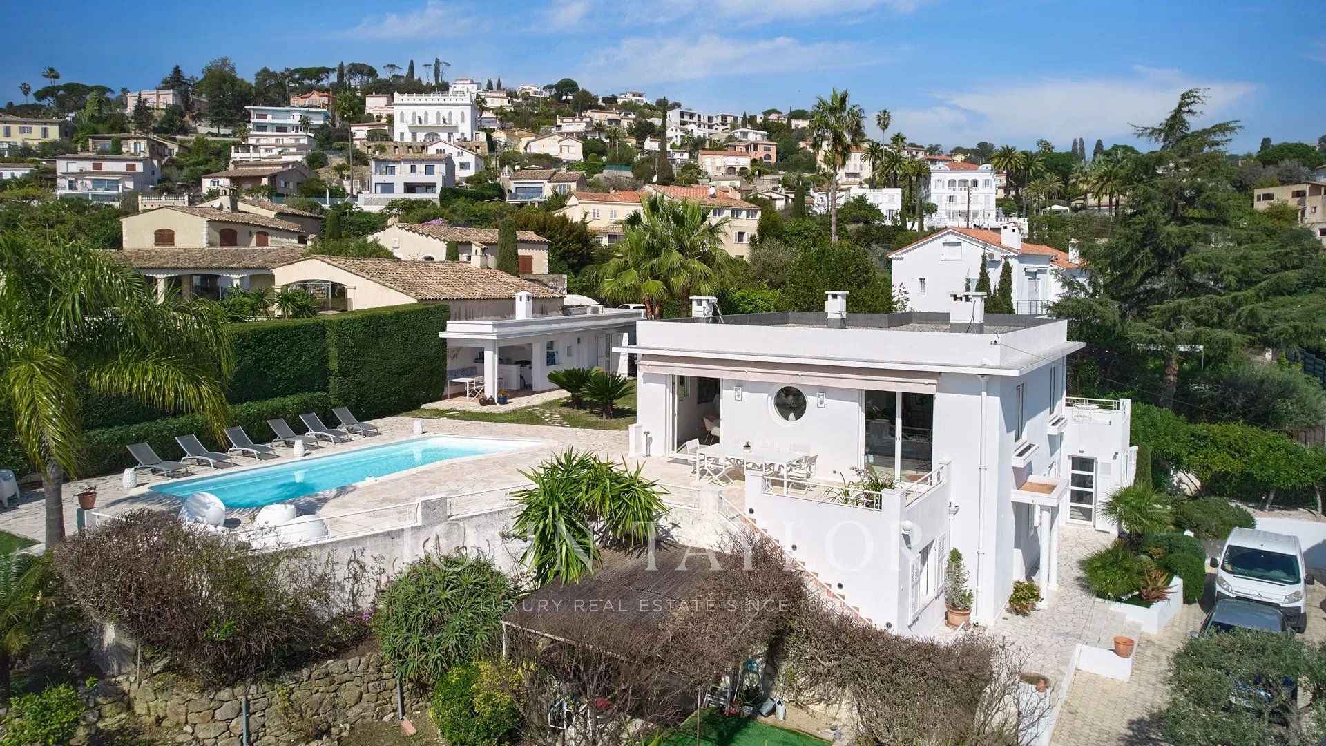 On the heights of Golfe-Juan, just 800 meters from the beaches, in the heart of a 990 m² garden, contemporary villa of about 174 m² of living space benefiting from a beautiful sea view.