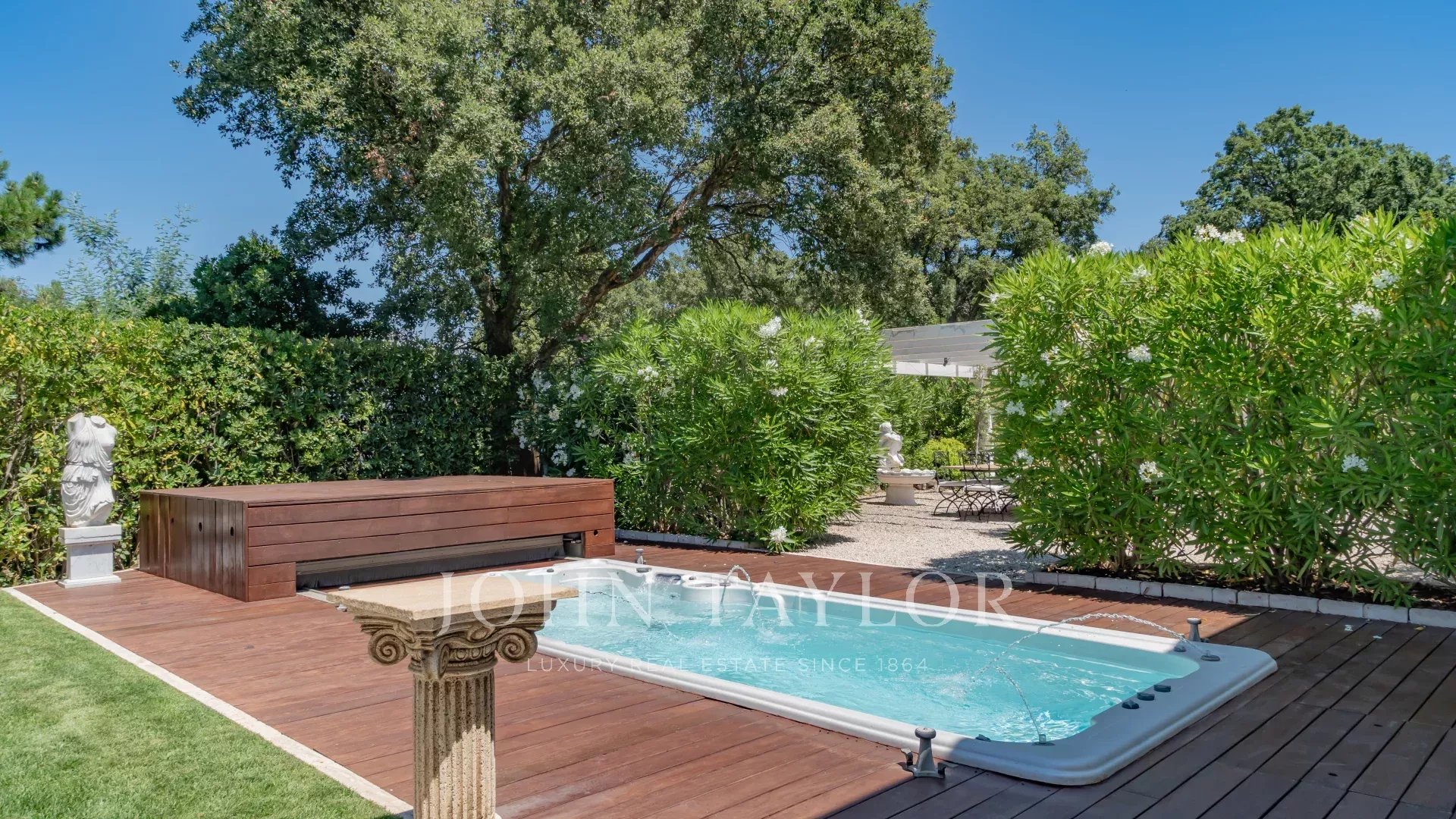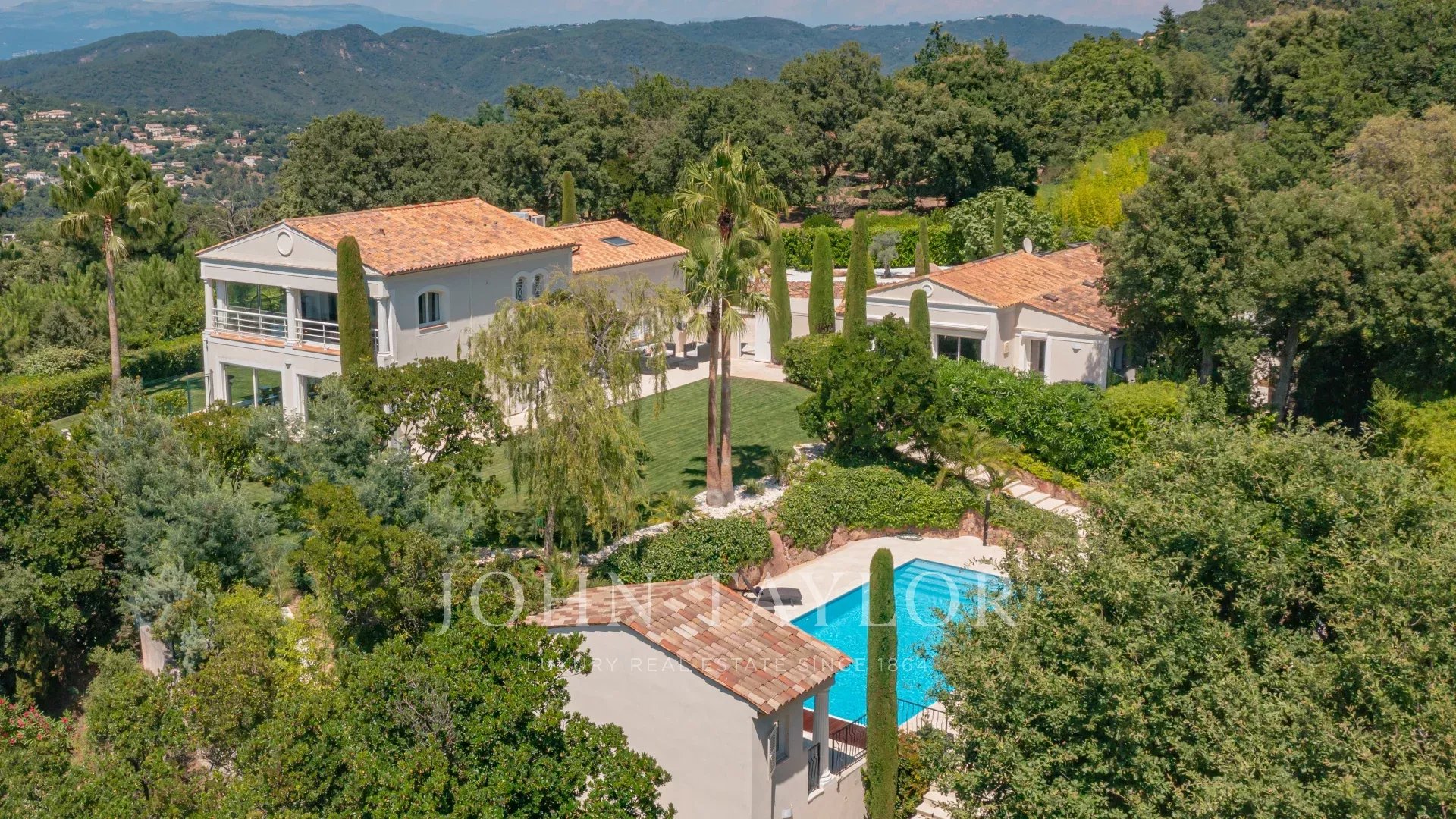 Located in the heart of the Esterel Massif in Saint Jean de Cannes, in a highly secure estate, this luxurious two-villa property offers a unique living environment.