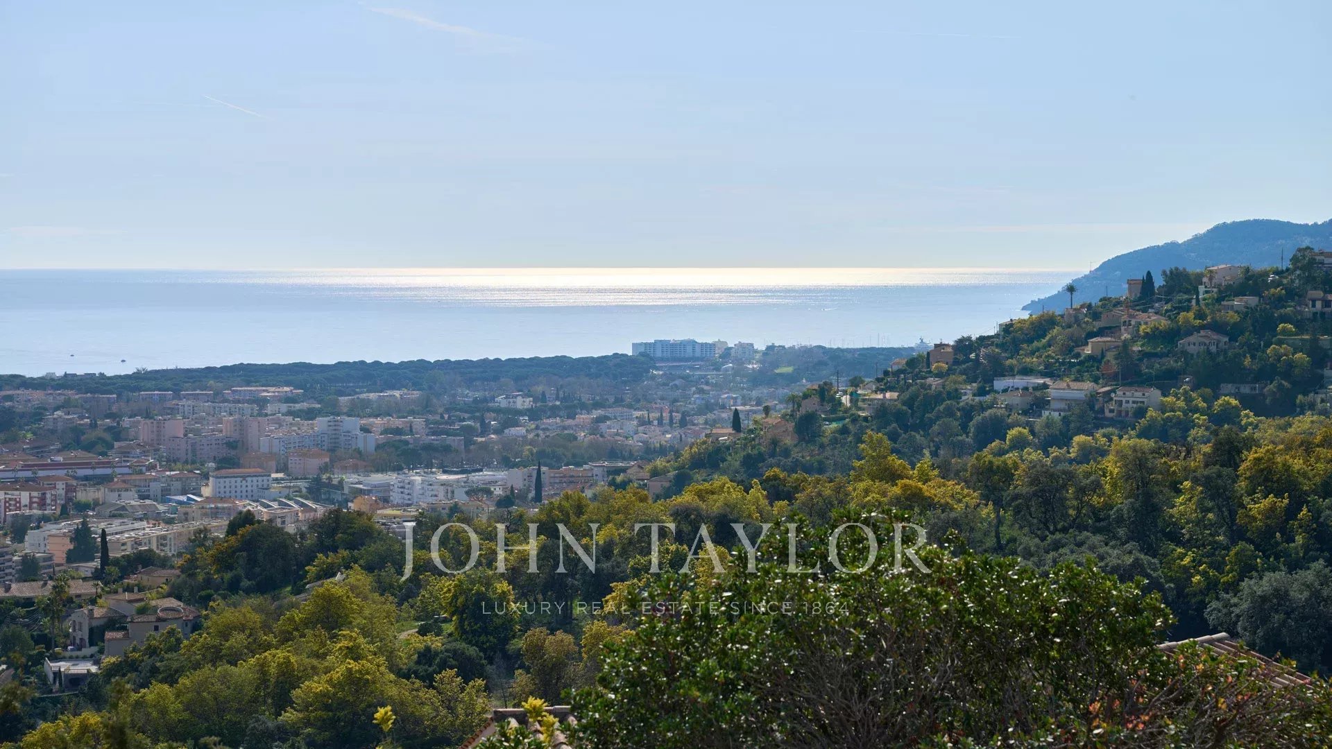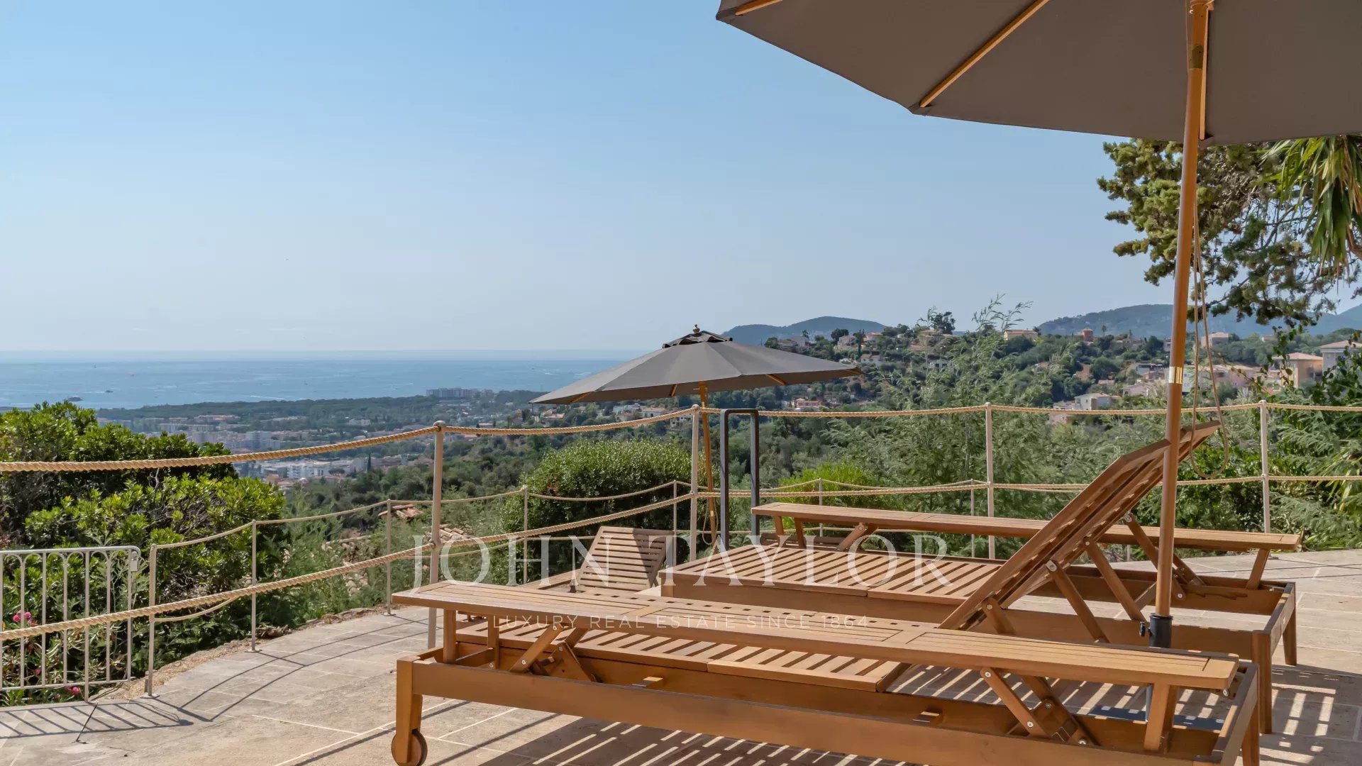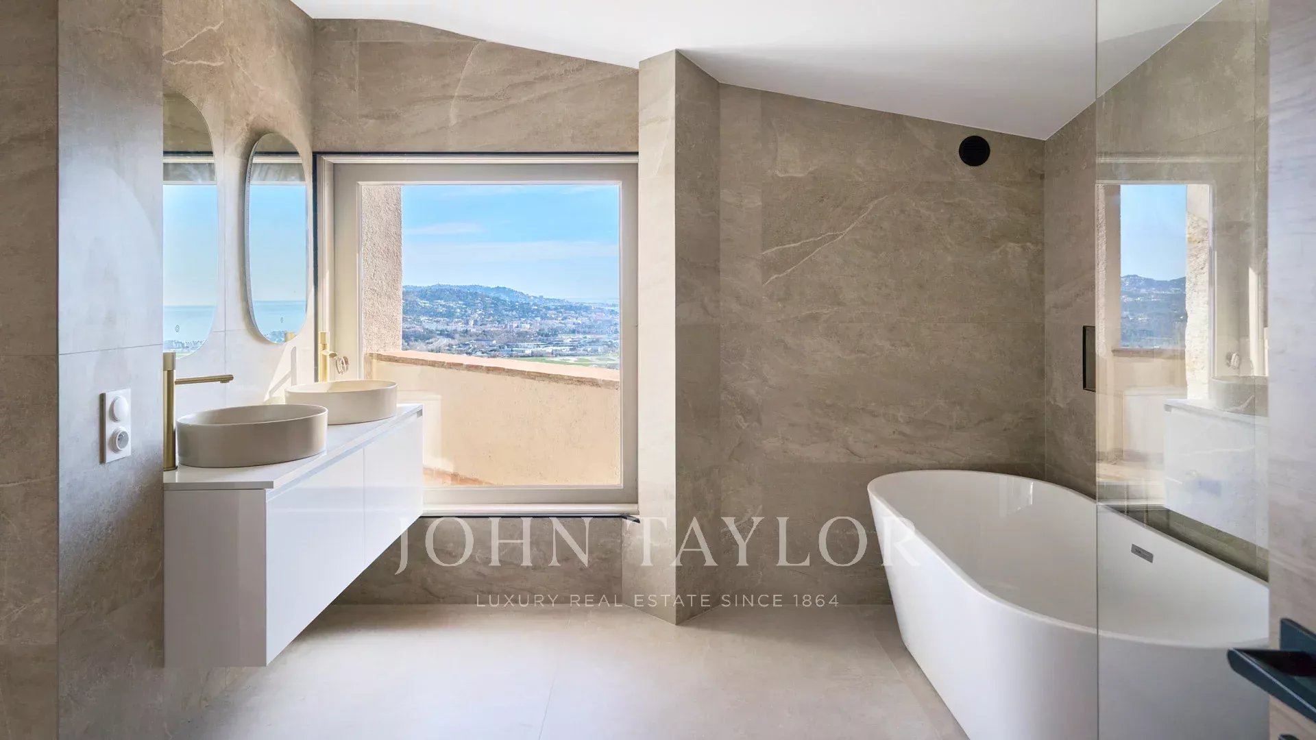 Situated on a hillside near the center of Mandelieu, with panoramic sea views, this beautiful Provencal-style villa has been fully renovated and offers generous volumes and convivial living spaces.