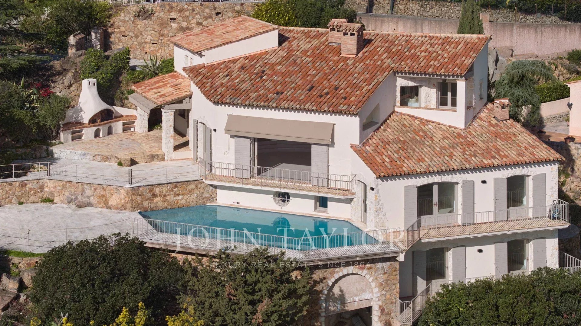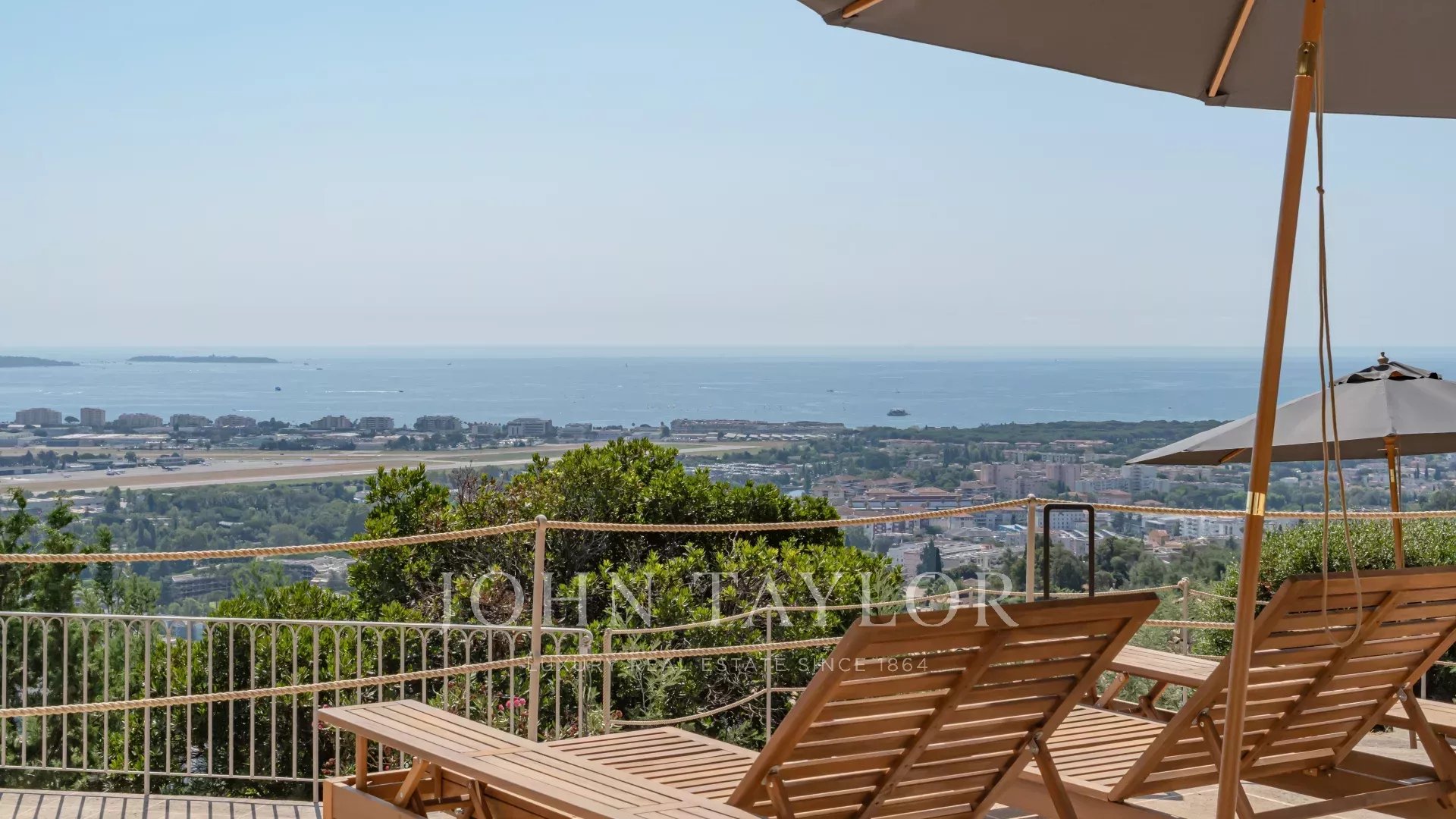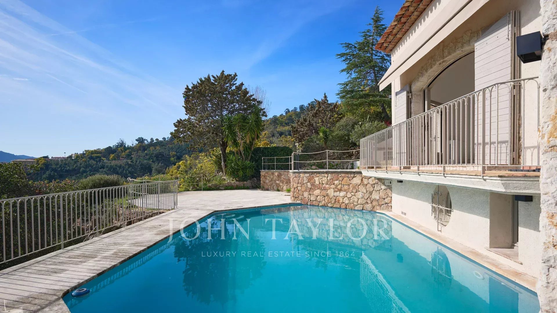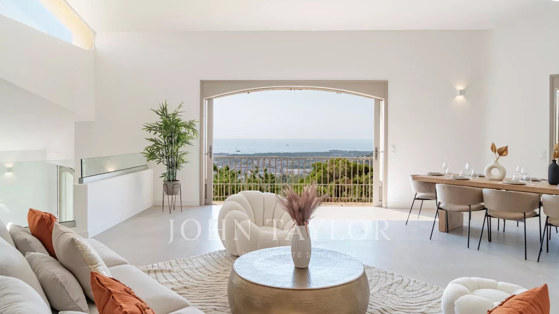 Situated on a hillside near the center of Mandelieu, with panoramic sea views, this beautiful Provencal-style villa has been fully renovated and offers generous volumes and convivial living spaces.