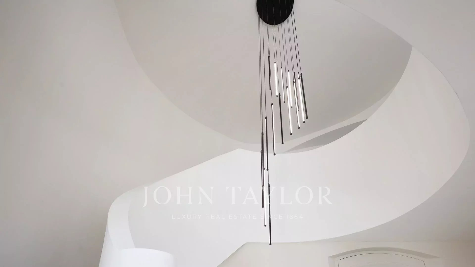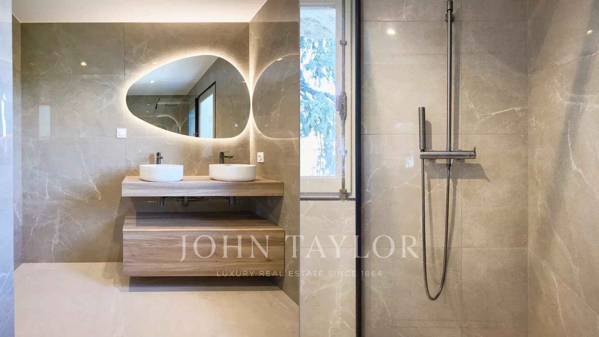 With 301 sqm of living space on 2147 sqm of land, it comprises on the first floor: entrance hall, bright 120 sqm living room, open-plan kitchen, office, guest toilet, living room. Second floor: master bedroom with terrace, dressing room and bathroom, WC. Garden level: en suite bedroom with shower room, WC and games room, two bedrooms sharing a shower room with WC.