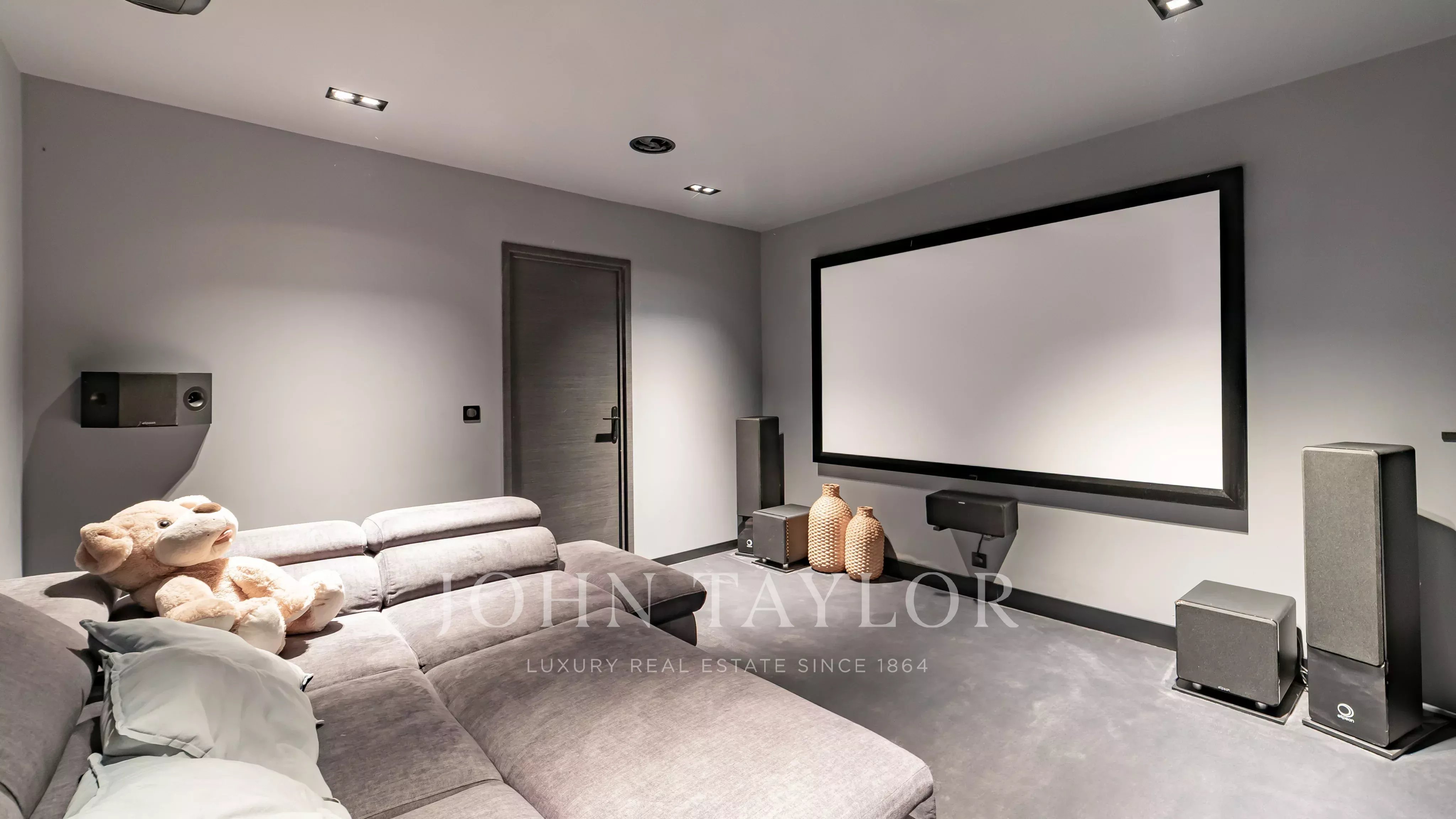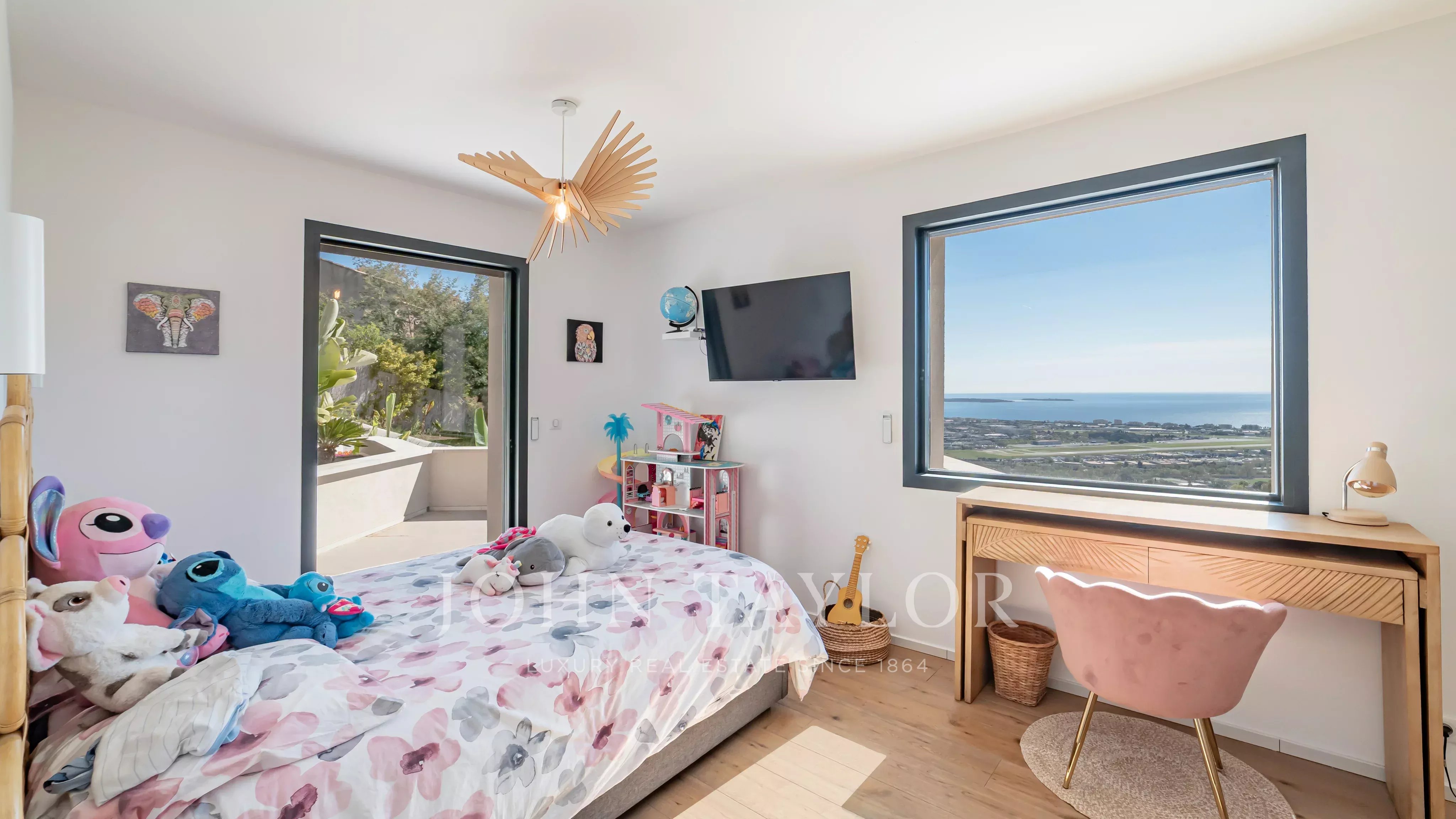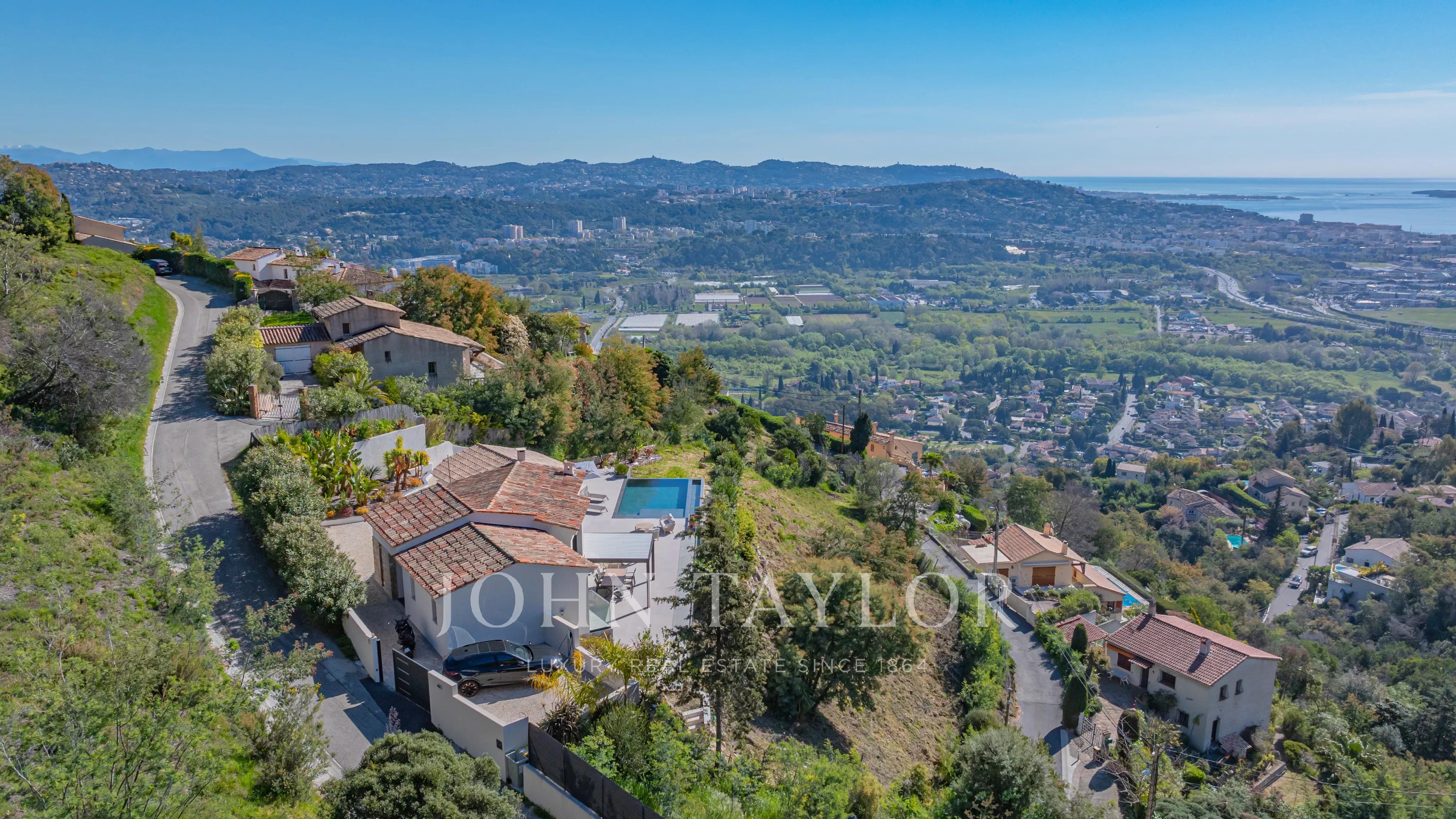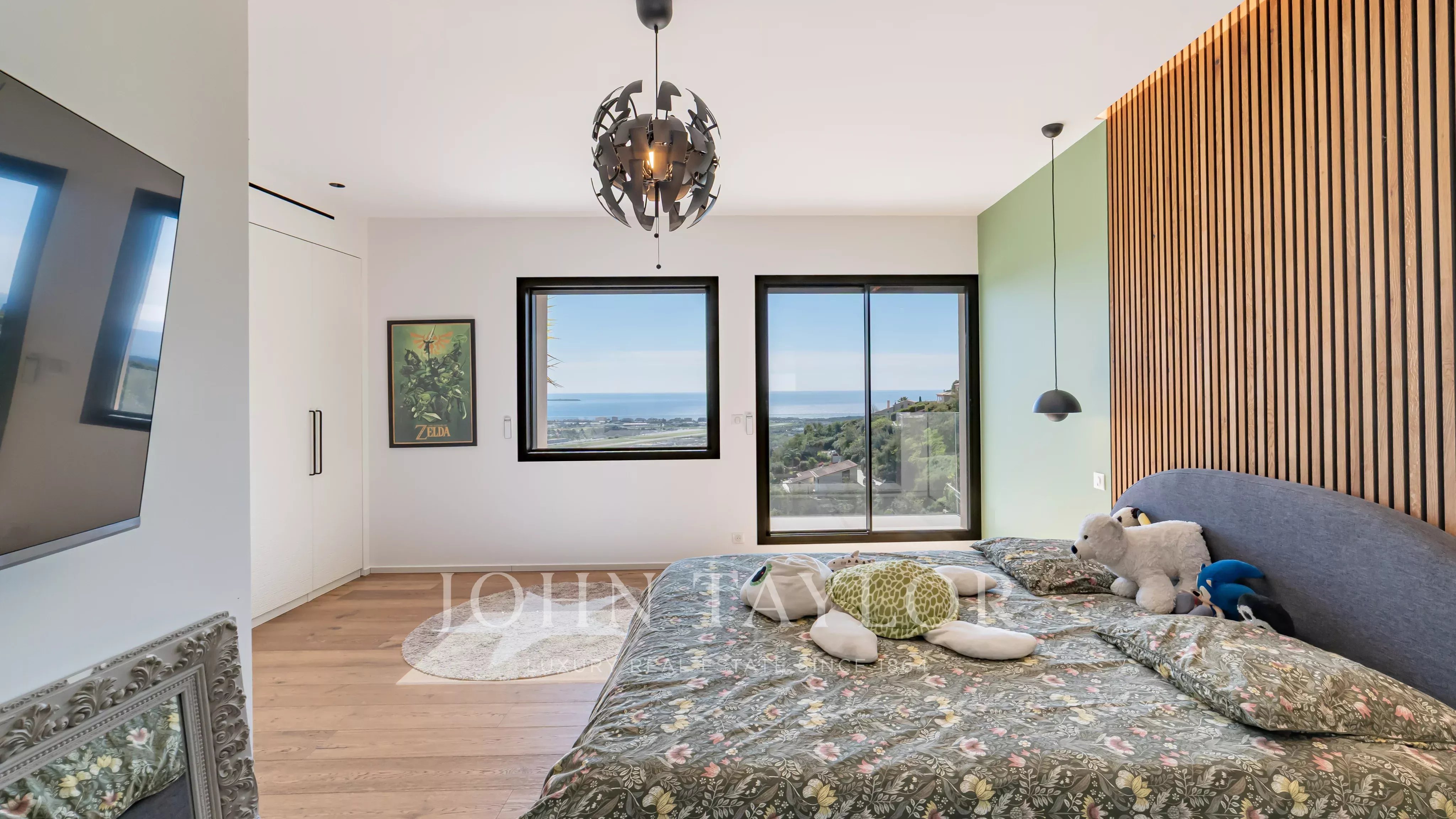 The villa enjoys spectacular sea views, very spacious terraces, and a heated tiled infinity pool.