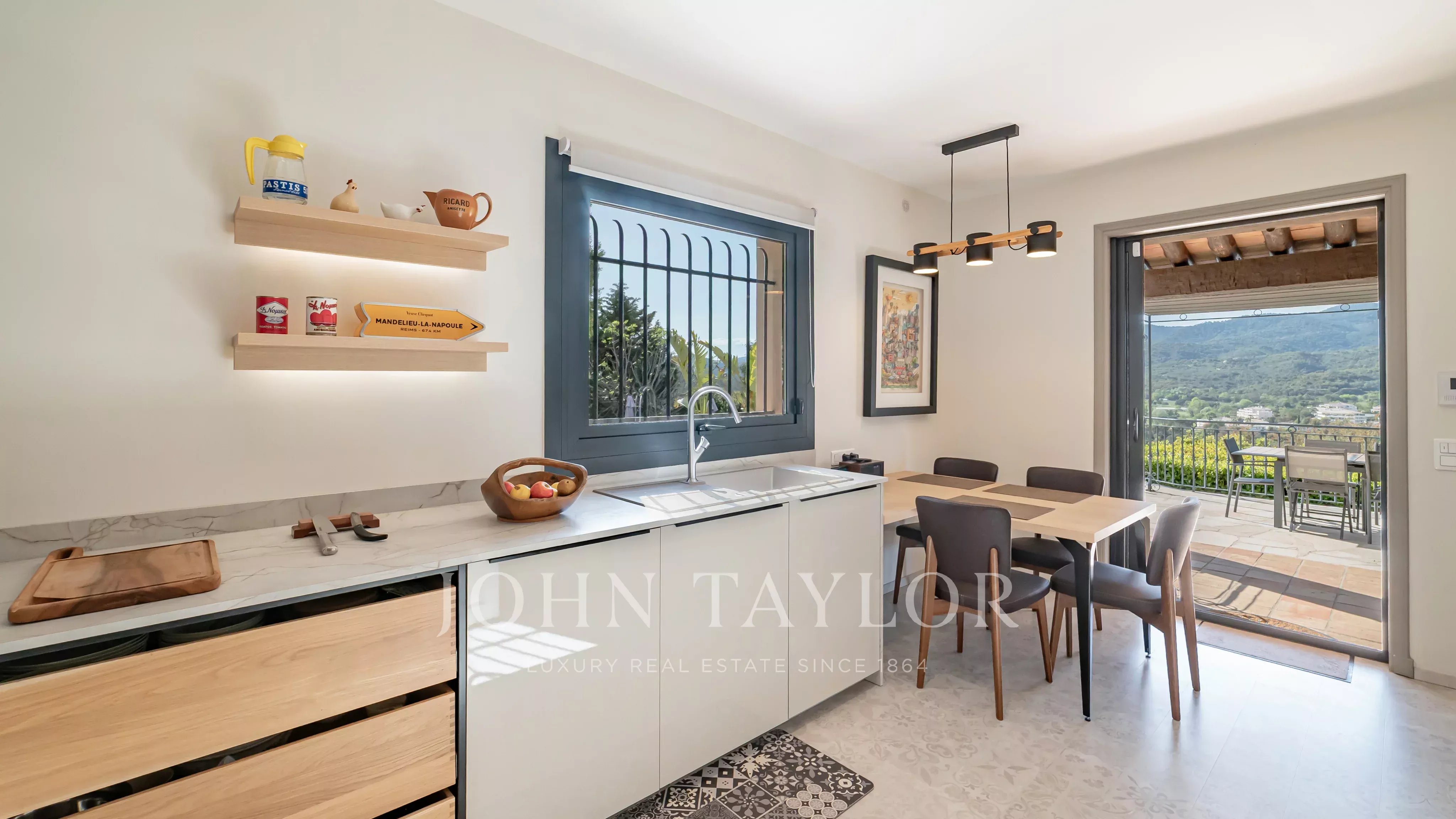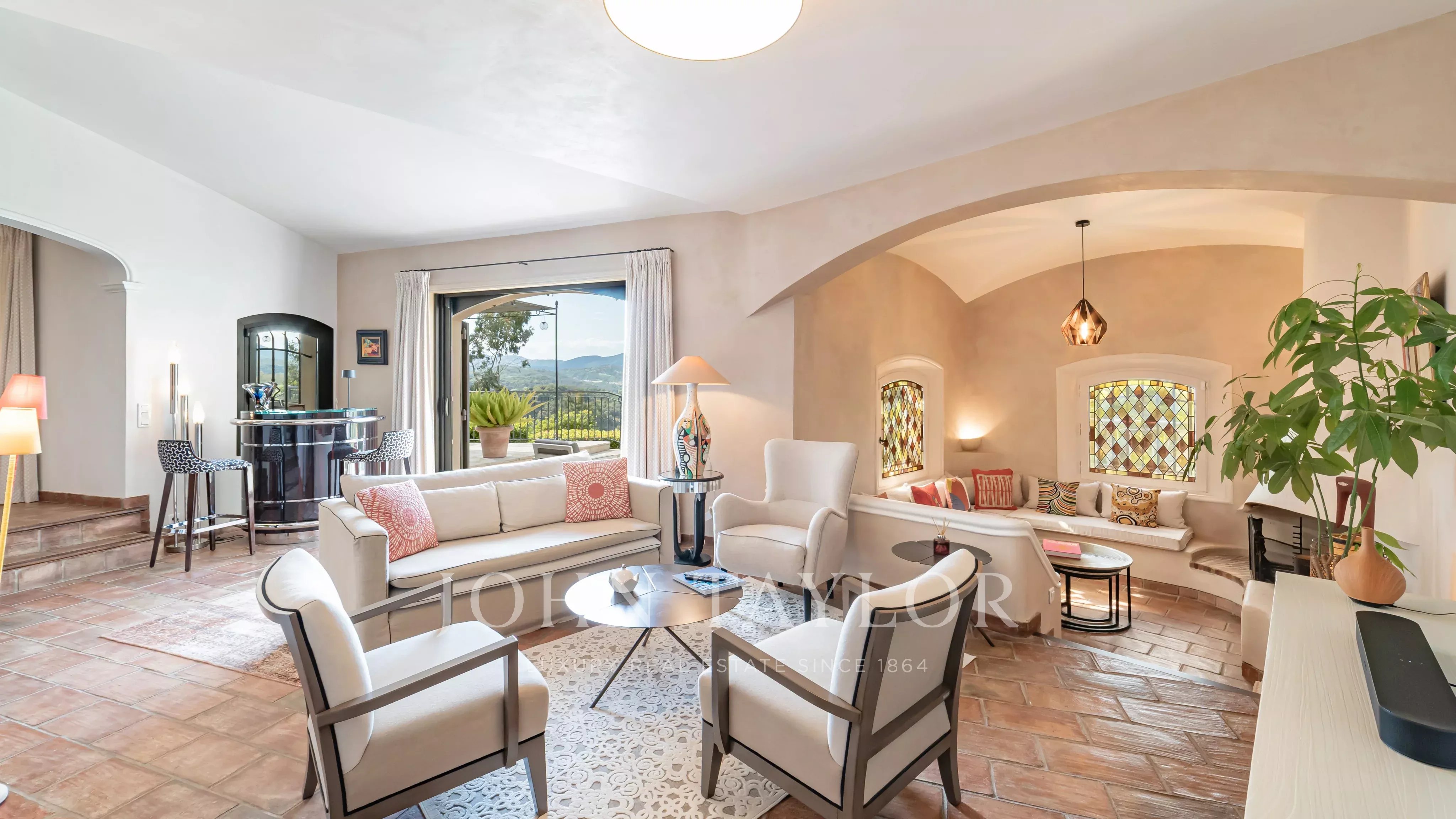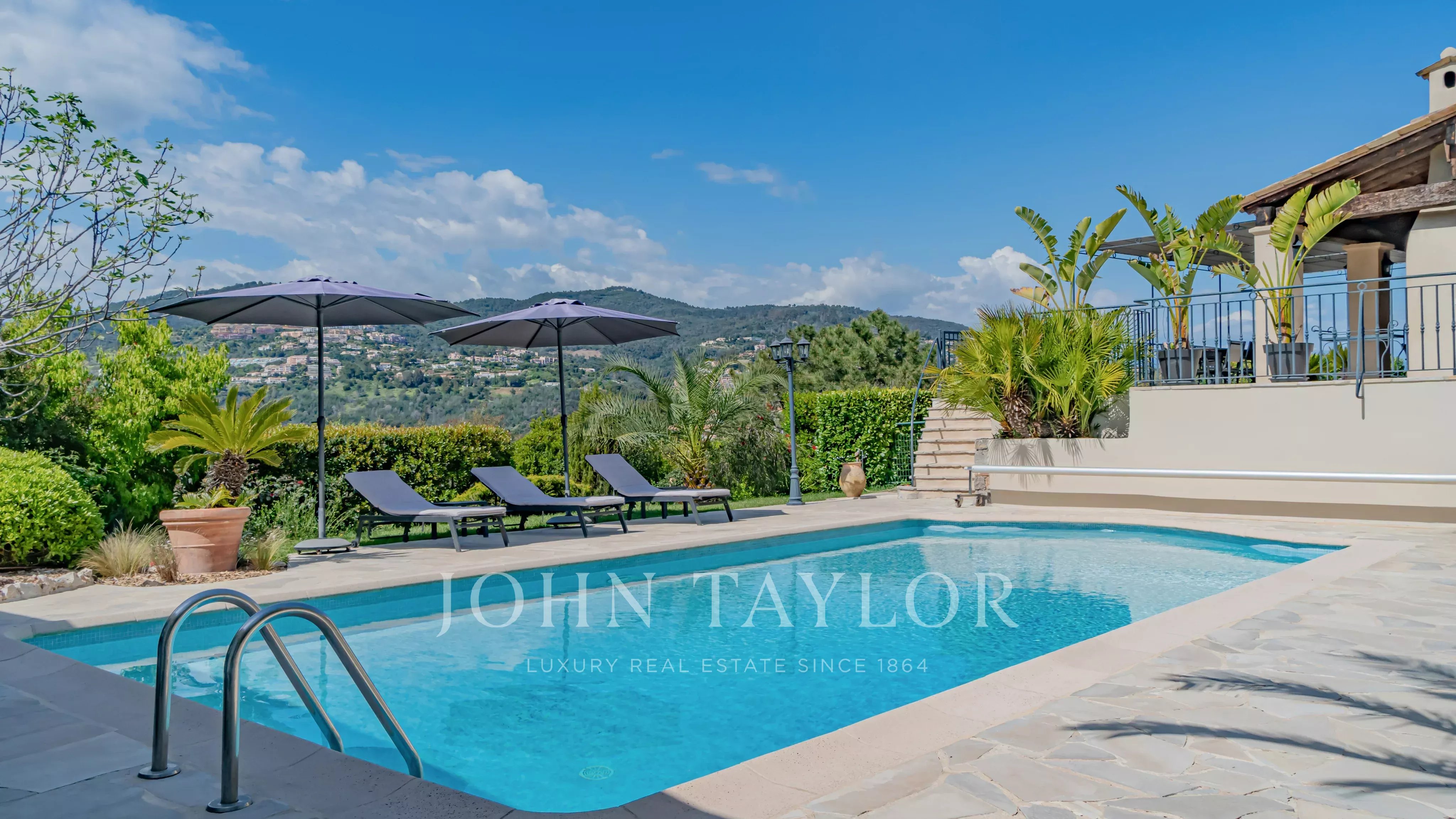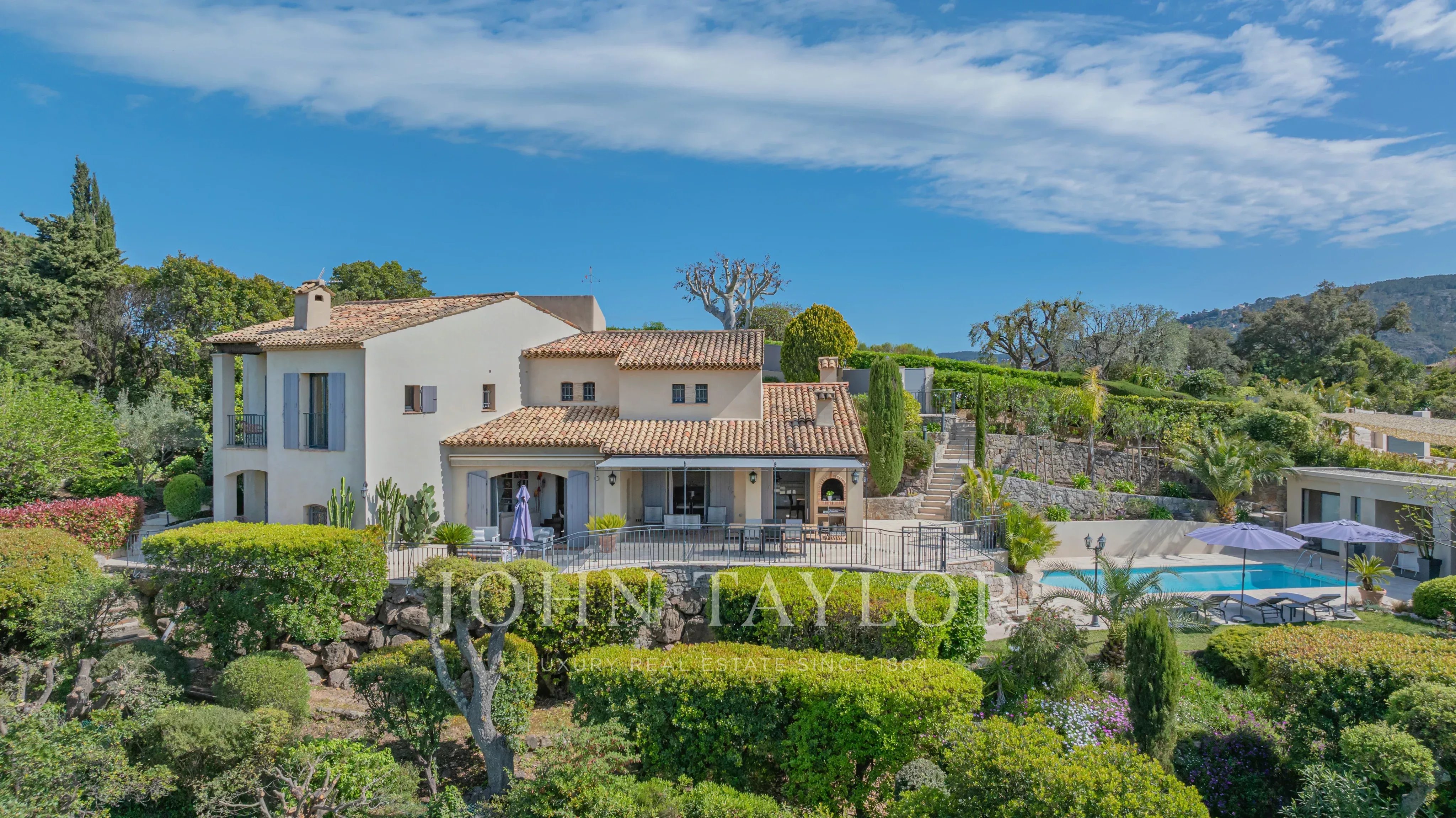 Nestled in a lush green setting, sheltered from view, within a sought-after private estate and in absolute peace and quiet, this elegant fully renovated Provençal property enjoys a spectacular view over the Estérel hills and the Mercantour.
