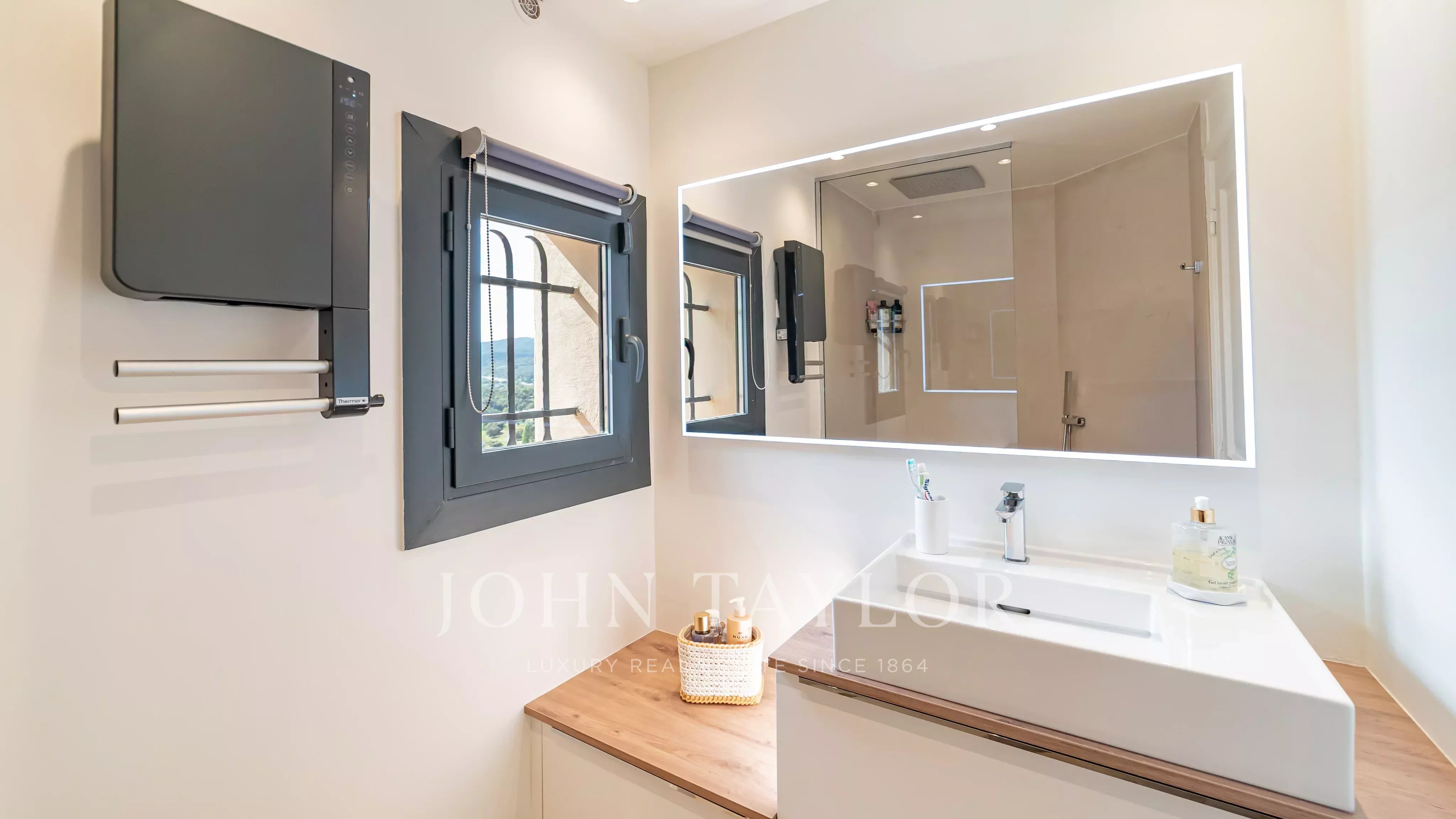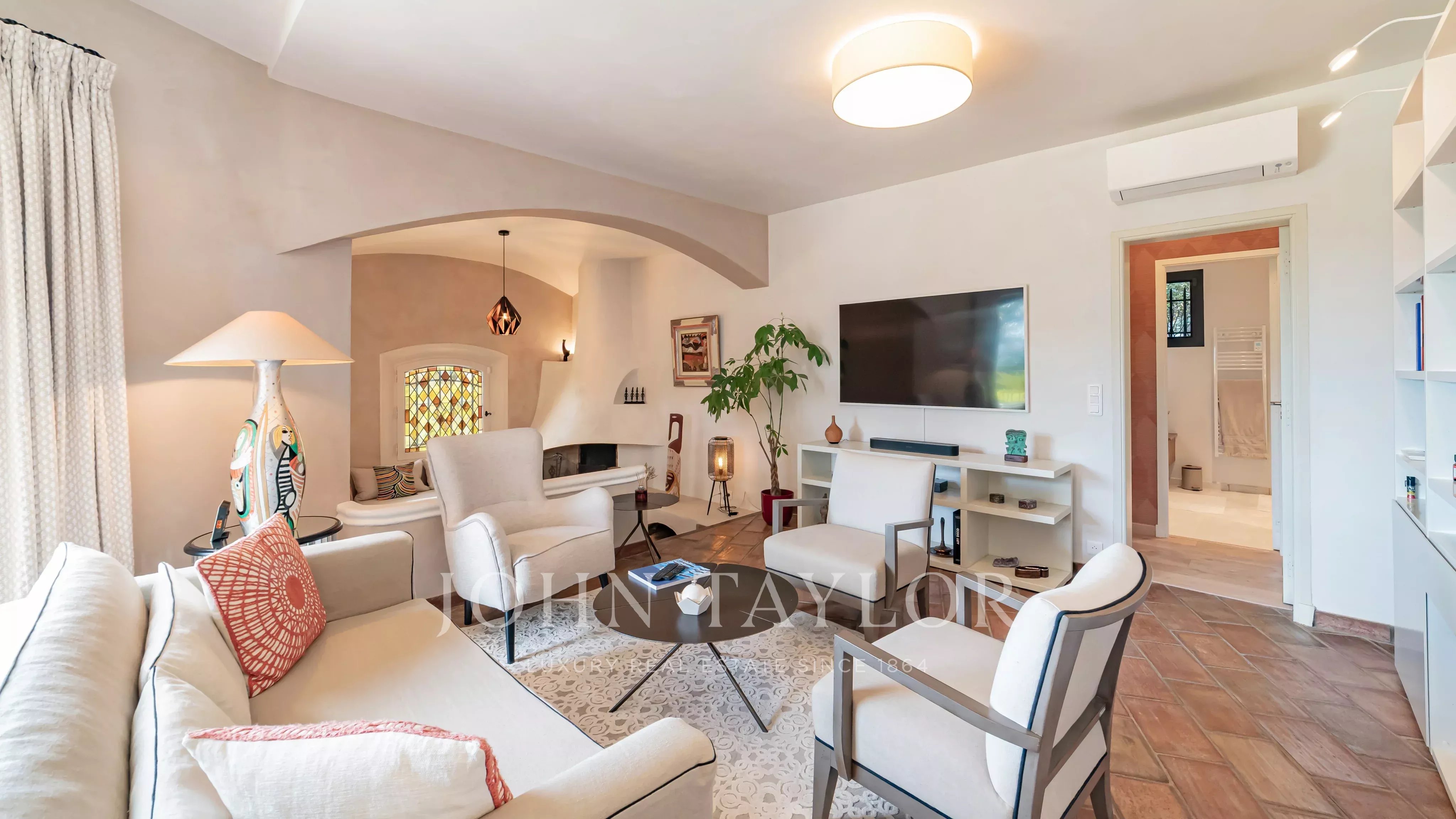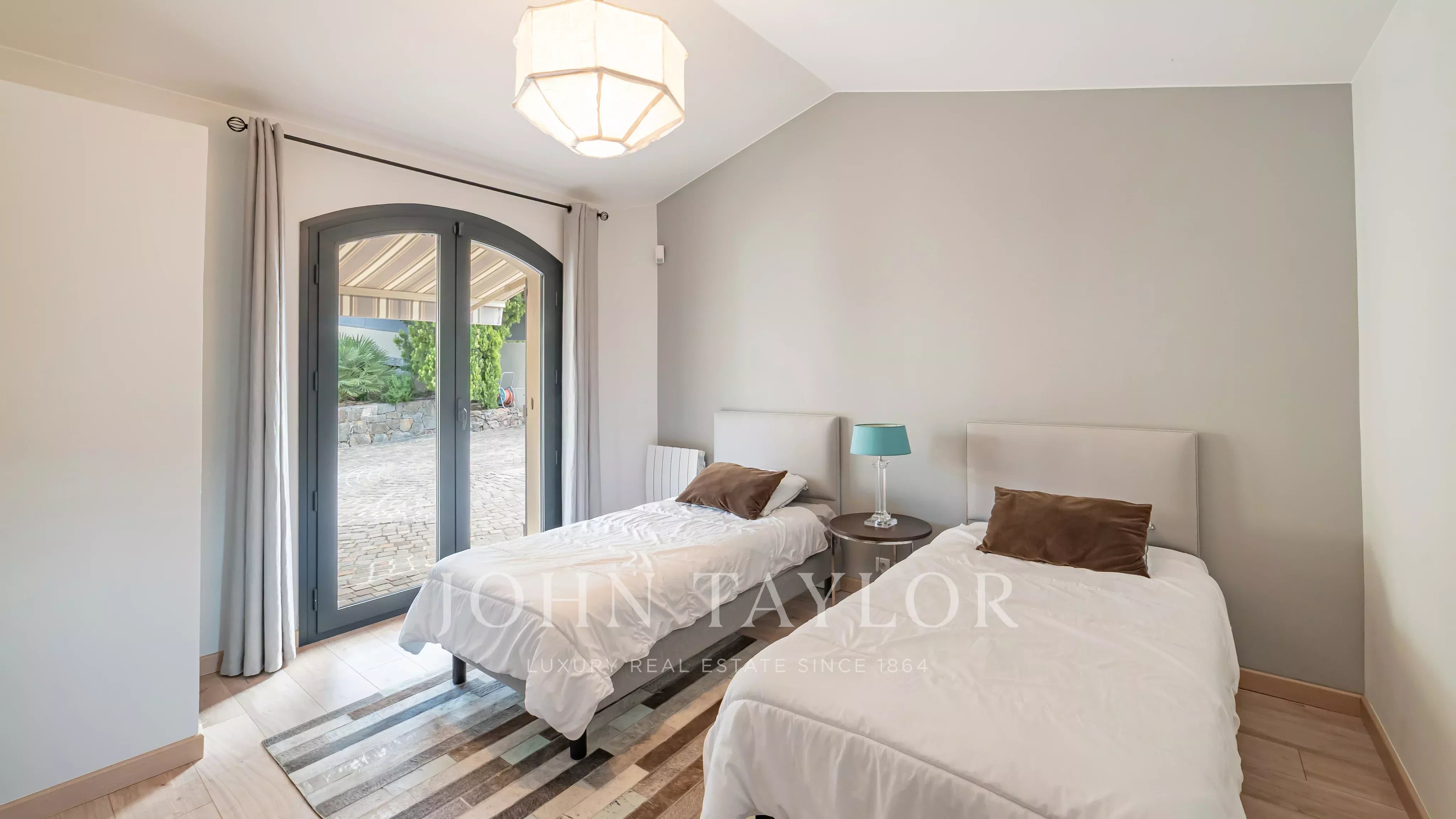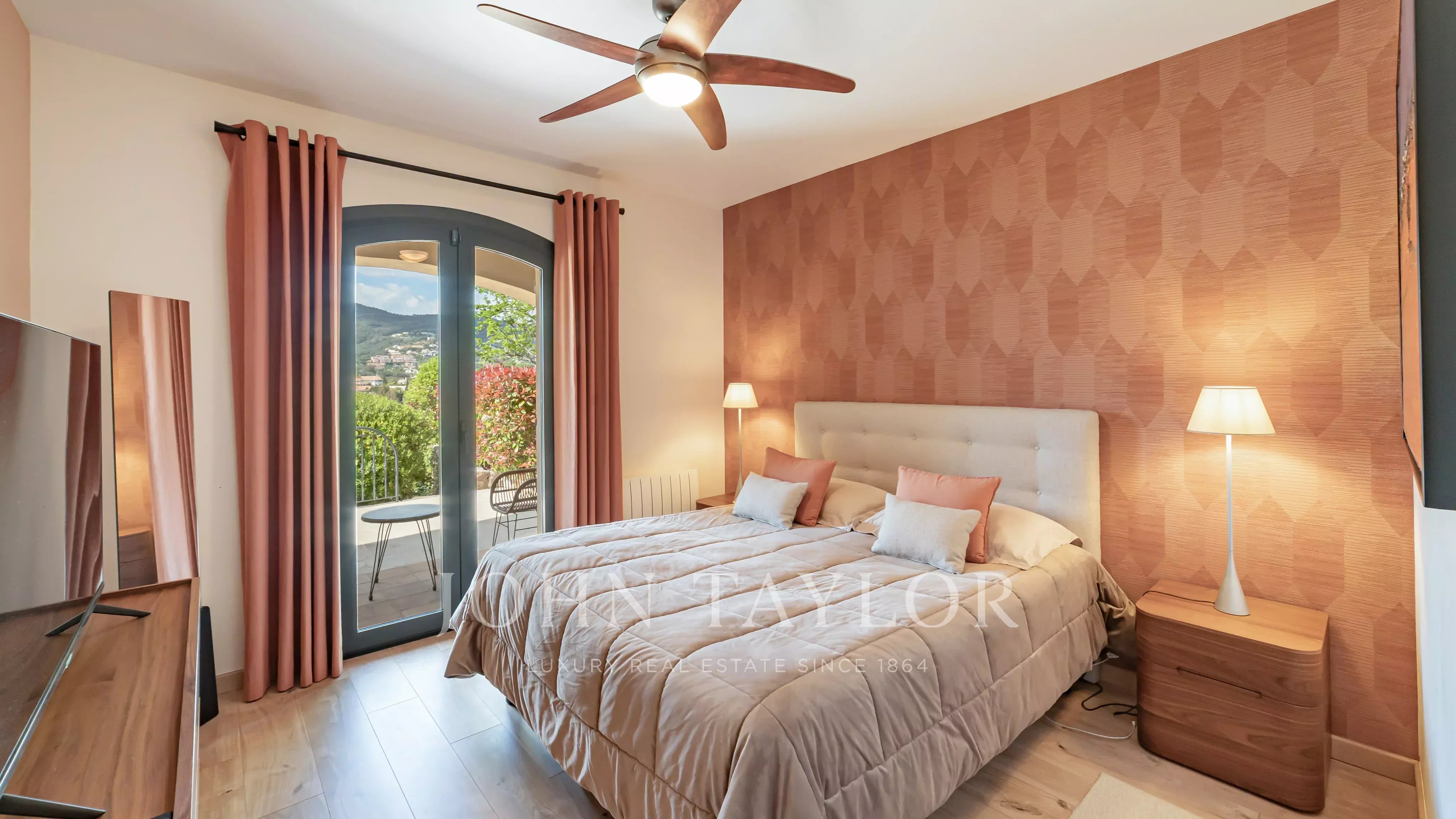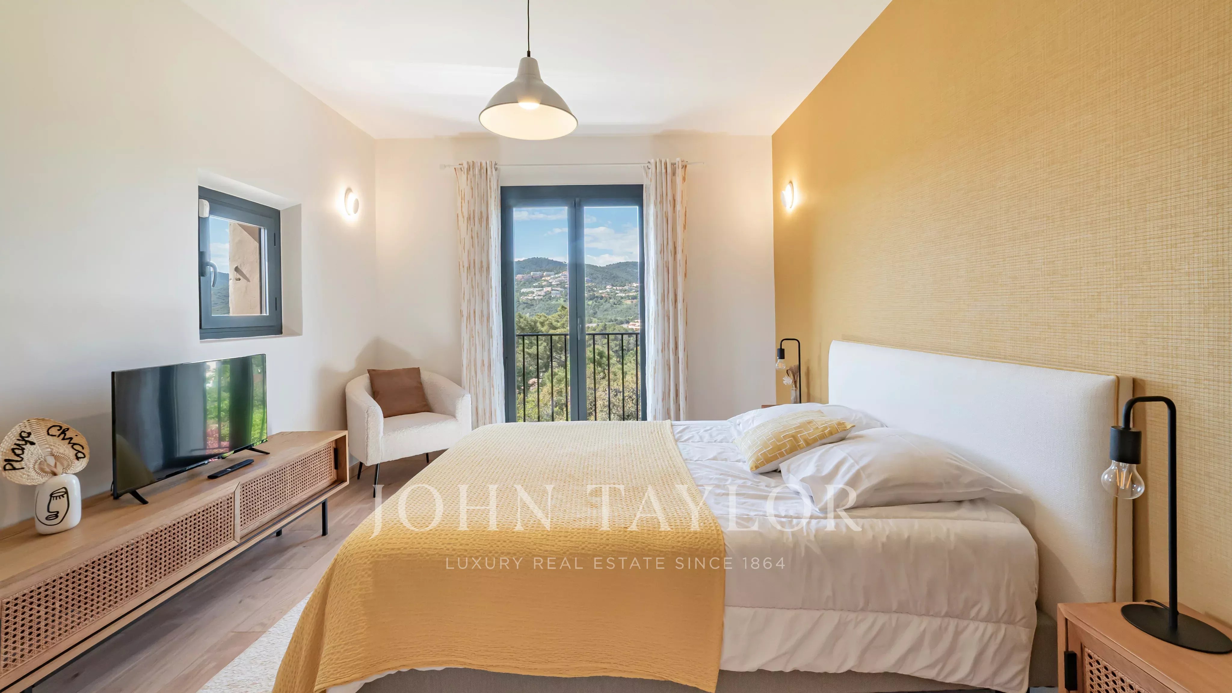 Nestled in a lush green setting, sheltered from view, within a sought-after private estate and in absolute peace and quiet, this elegant fully renovated Provençal property enjoys a spectacular view over the Estérel hills and the Mercantour.
