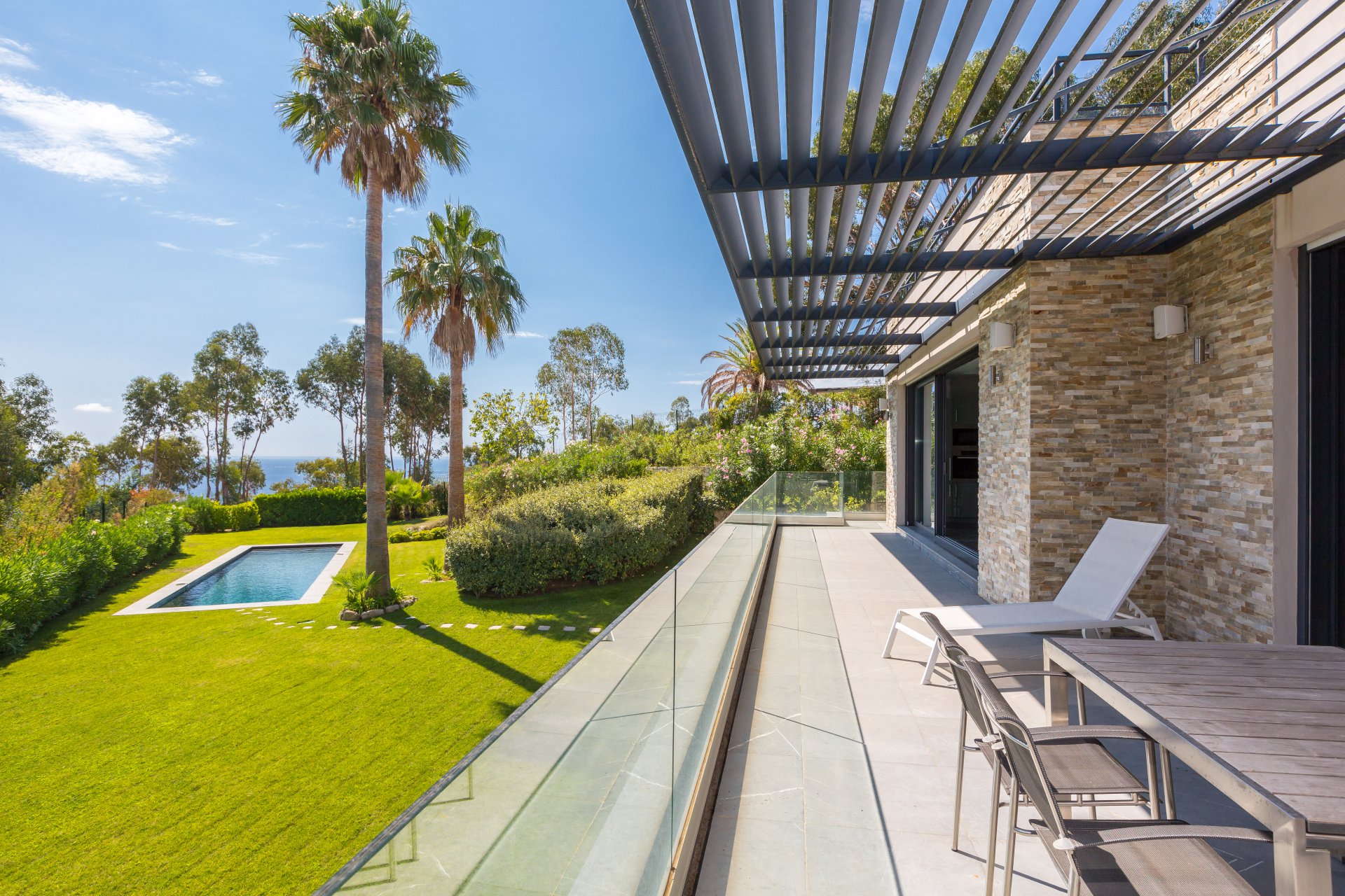 Exclusive - In the heart of a green setting, this superb contemporary villa offers panoramic sea views stretching all the way to Cap d'Antibes.