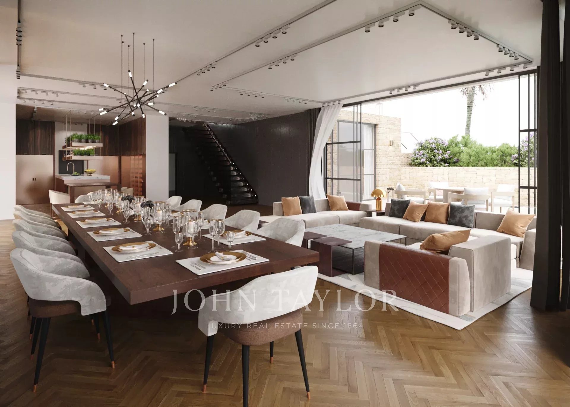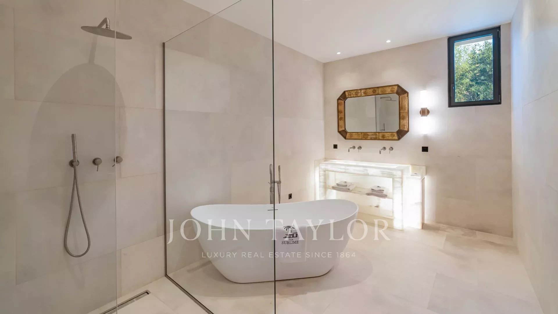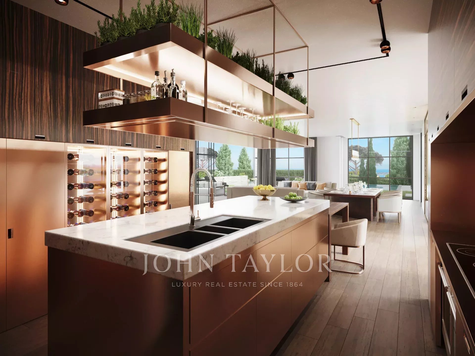 The villa is surrounded by a magnificent Mediterranean landscaped garden featuring an infinity pool, Jacuzzi and pool house.