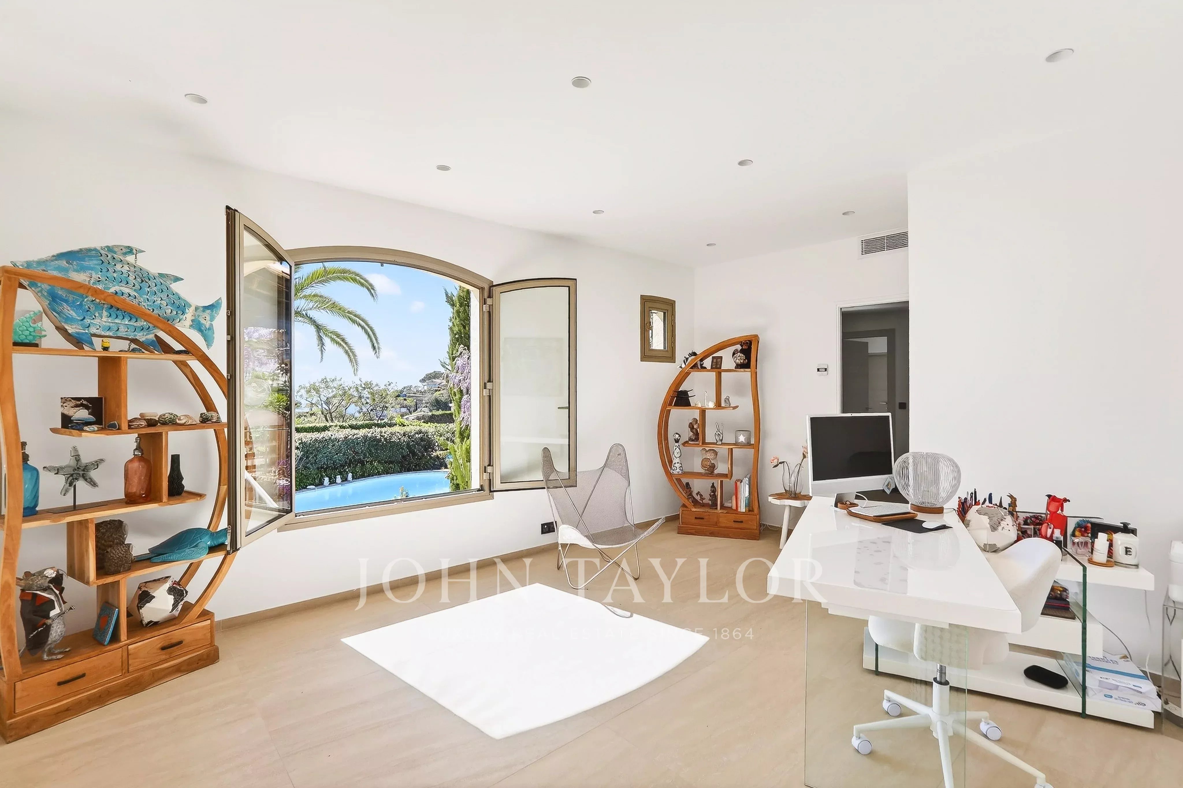 Ideally located in the Super Cannes area, this lovely villa offers spacious reception rooms and a beautiful view of the sea and Cap d'Antibes.