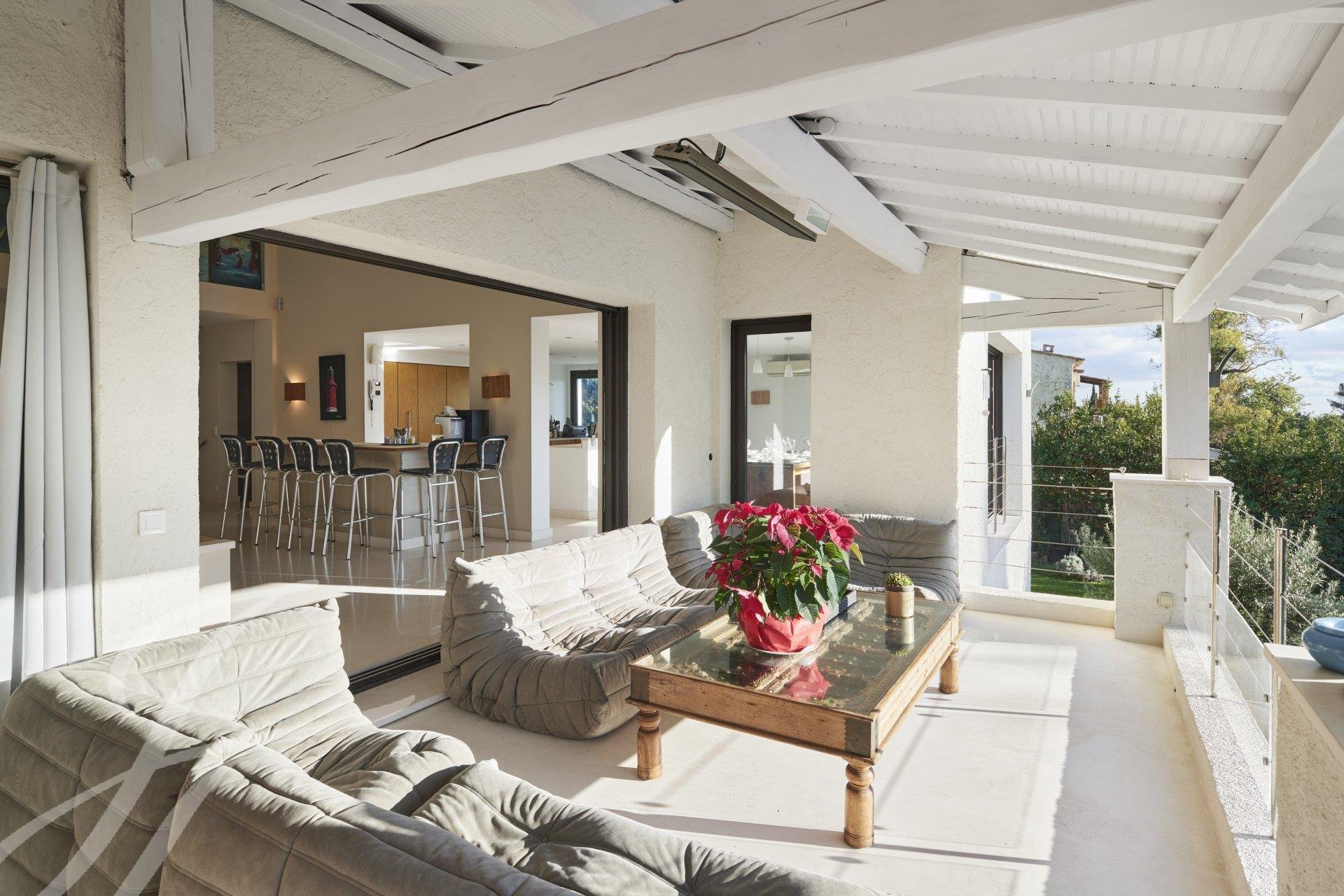 Located in a dominant and quiet position, just 10 minutes walk from the beautiful beaches and from restaurants. This house has been beautifully renovated to a high standard, with no other works to do. Only 20 minutes from Nice airport and 10 min from Cannes.