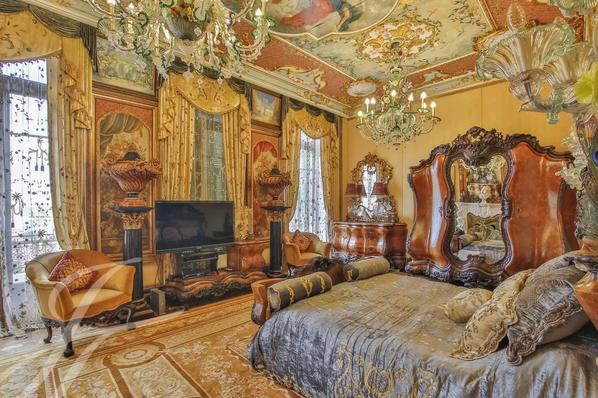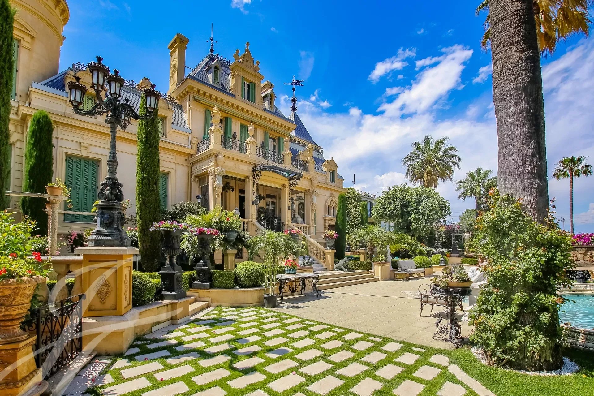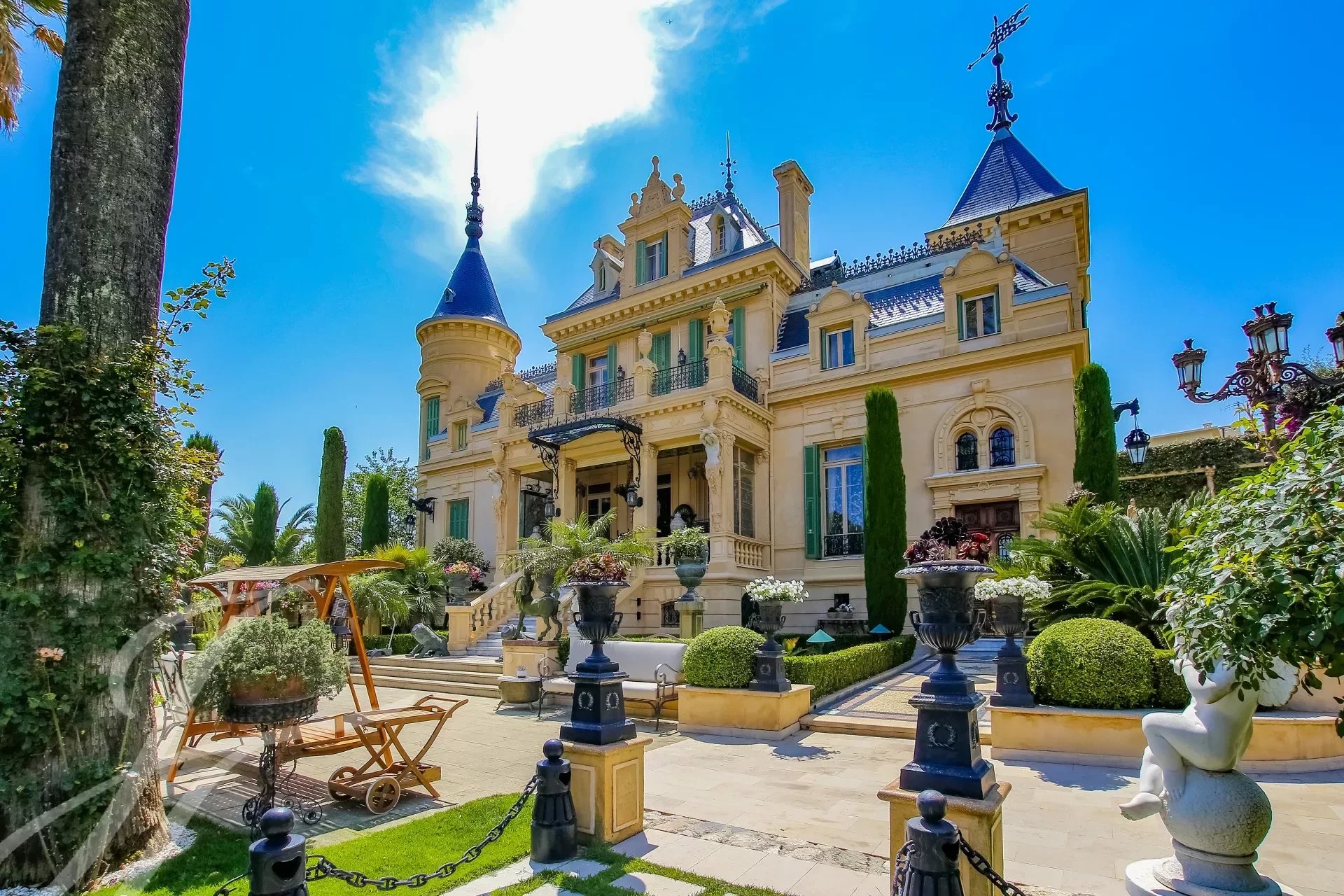 Built in 1865, it was inhabited by a prince from the Colonna family — one of the most illustrious dynasties of Rome, which has given an pope to the Church and an admiral to the Battle of Lepanto. It was he who transformed this bastide into an Italian rococo-inspired castle, surrounded by a 3.5-hectare park planted with nine species of rare palms and a giant cypress.