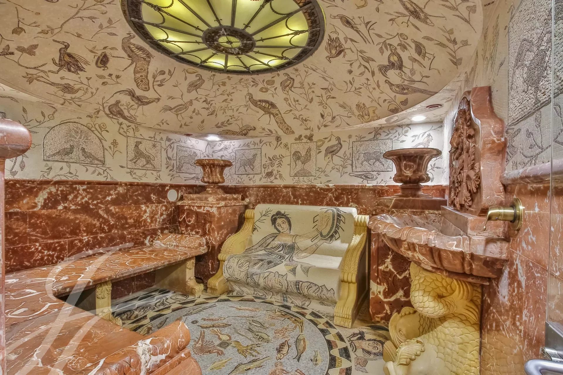 3,270 sqm of beautifully wooded park. A large pool with a spacious terrace. A view stretching from the sea to the sky — open, breathtaking, unforgettable. Nine species of rare palms. A giant cypress. A beautifully landscaped garden with flower beds and an elegant fountain.