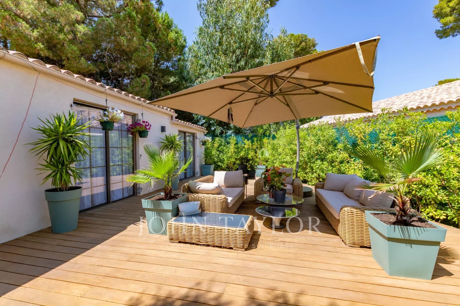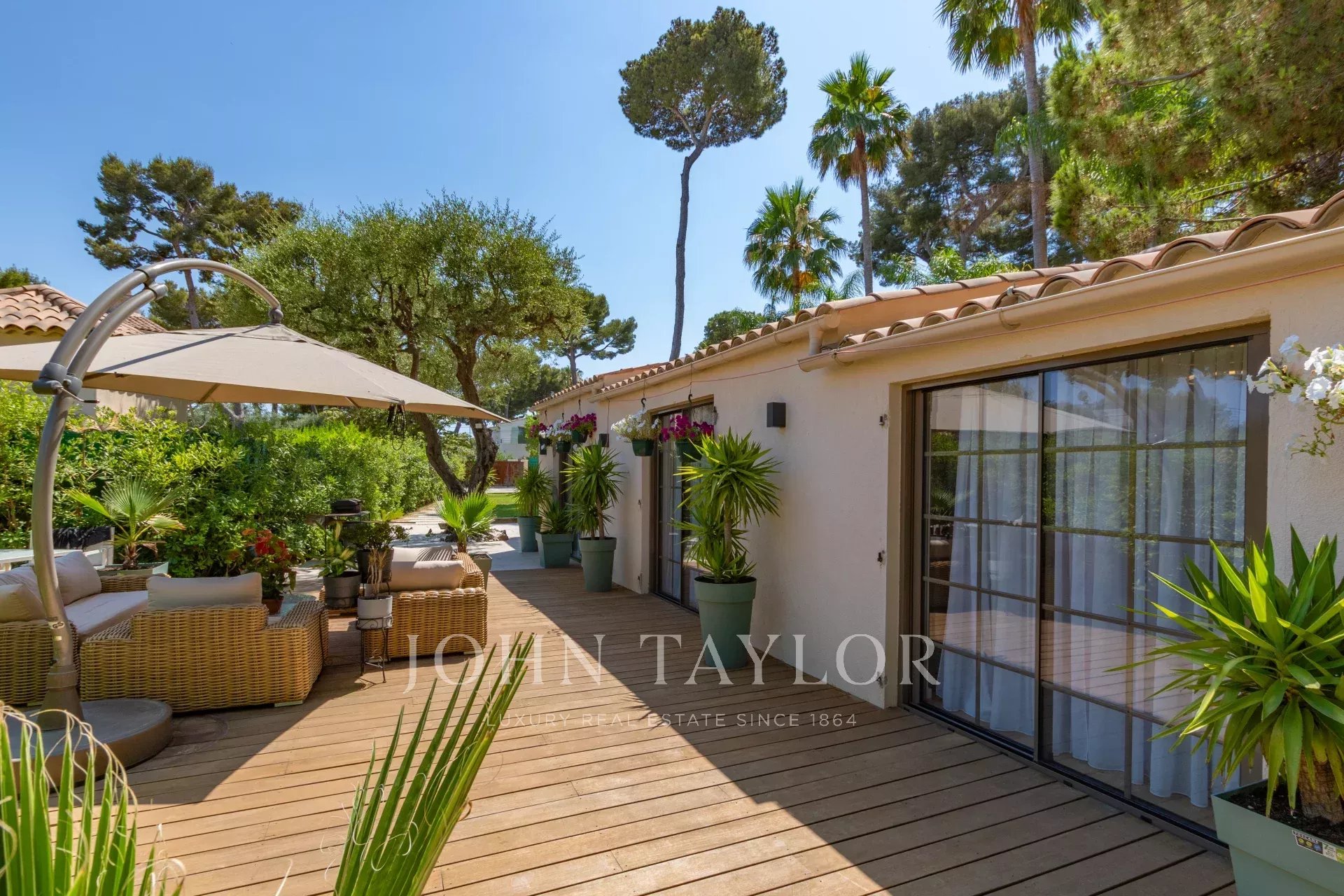 In the heart of Cap d'Antibes, attractive new single-storey villa with 80 sqm living space on a 649 sqm flat plot with swimming pool/bassin permit.