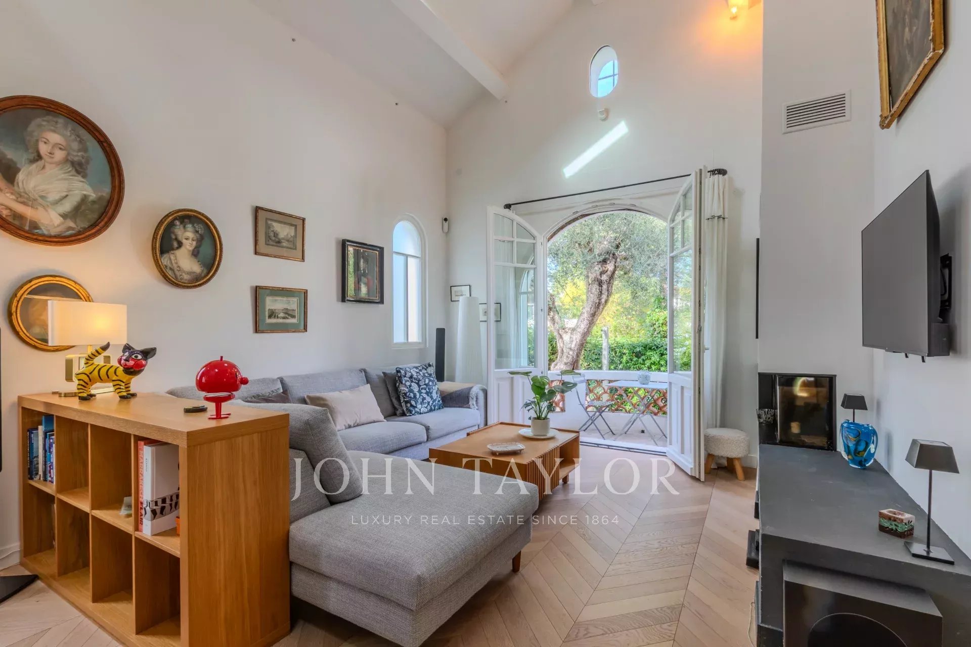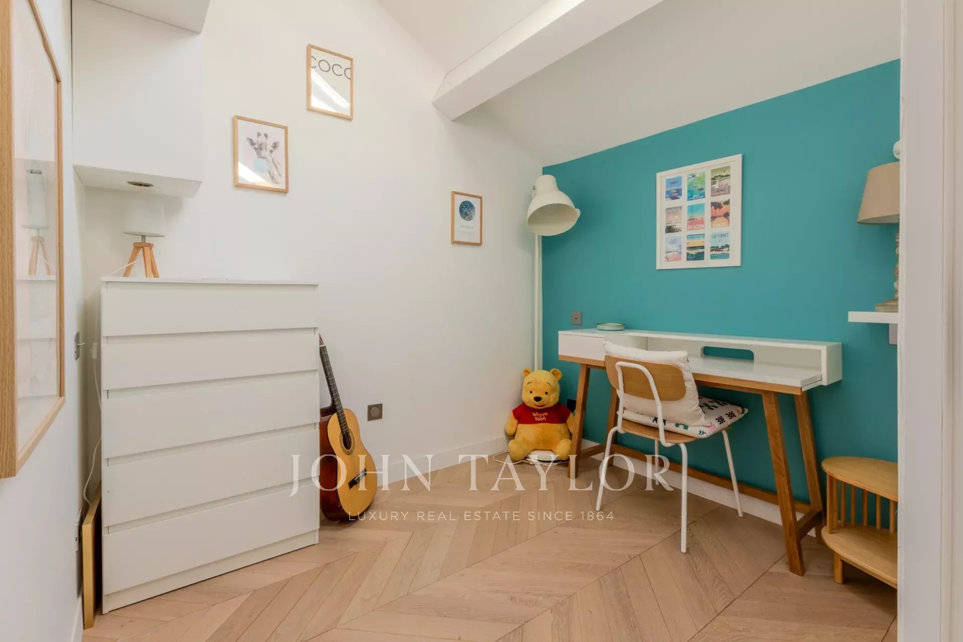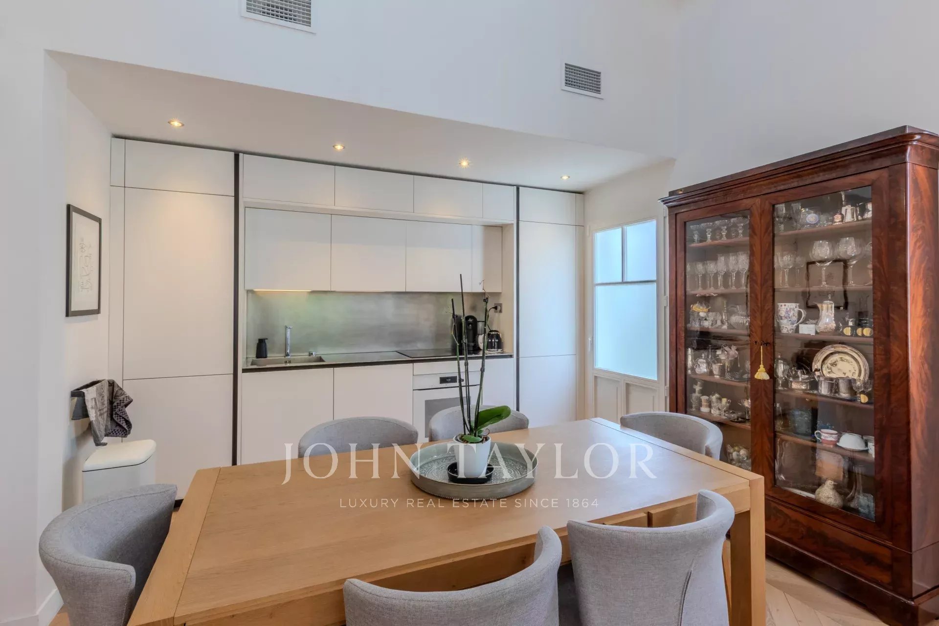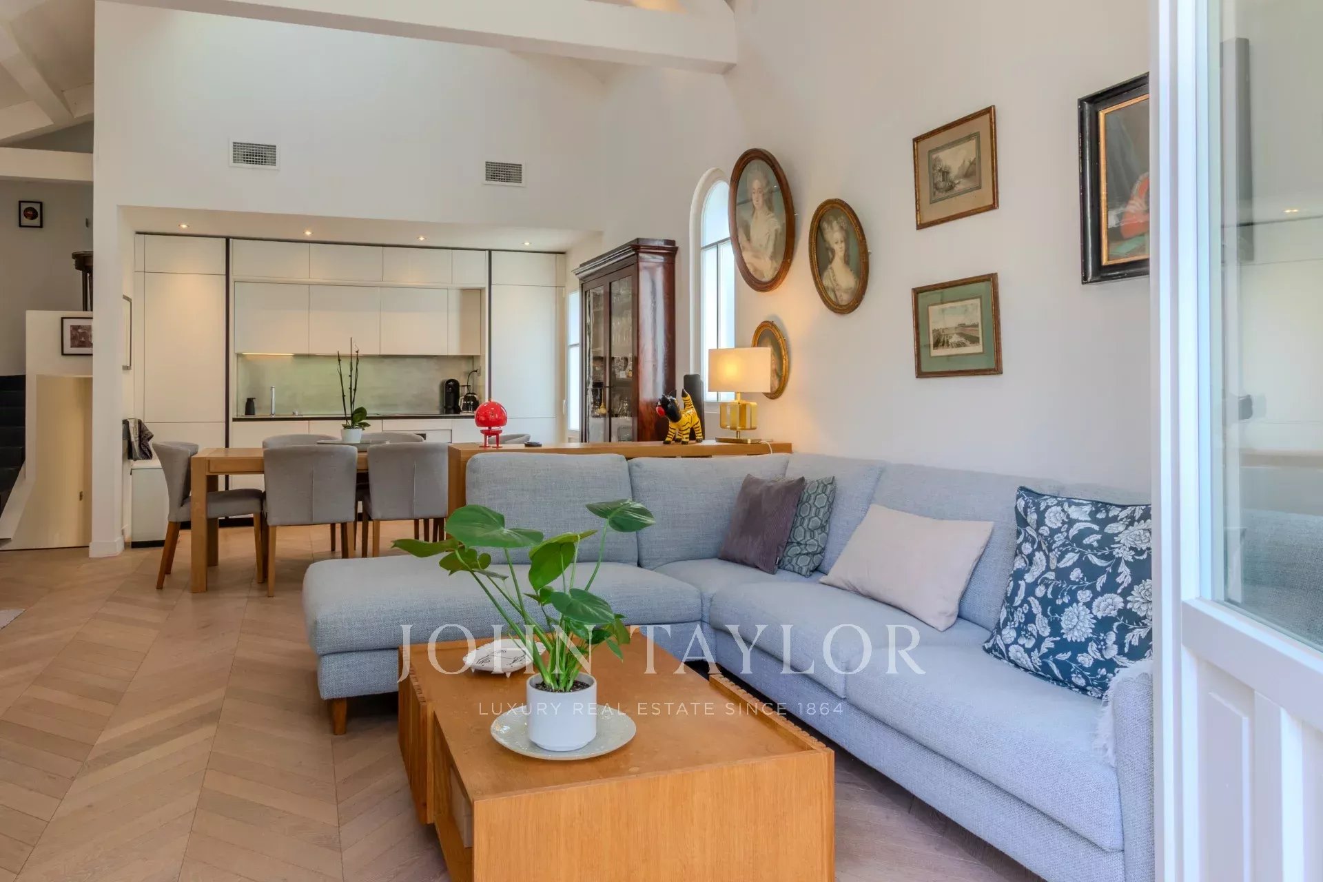 Recently renovated to a high standard. Solid Hungarian point parquet flooring, underfloor heating, and cathedral beams.