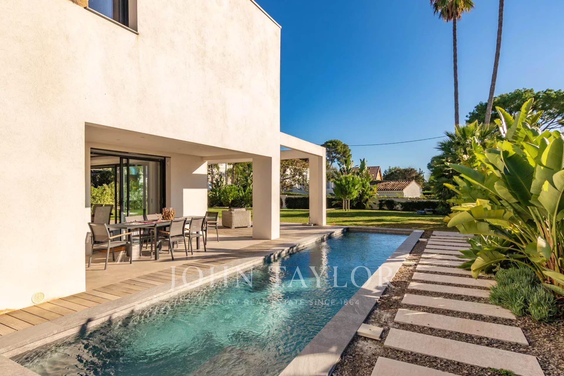 New contemporary villa to be completed in 2023. Ideally located in Cap d'Antibes, 300m from La Garoupe beach and 150m from shops.