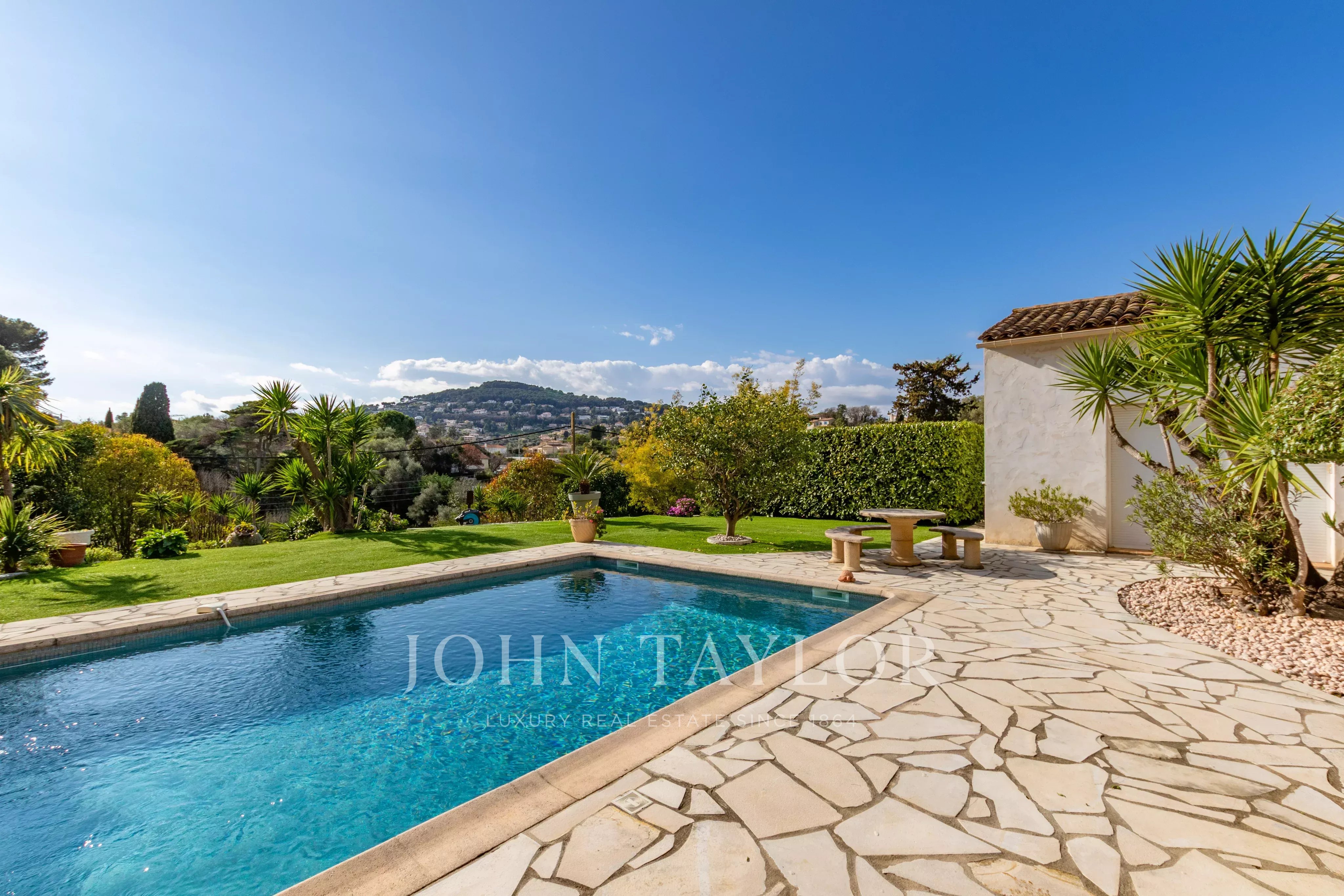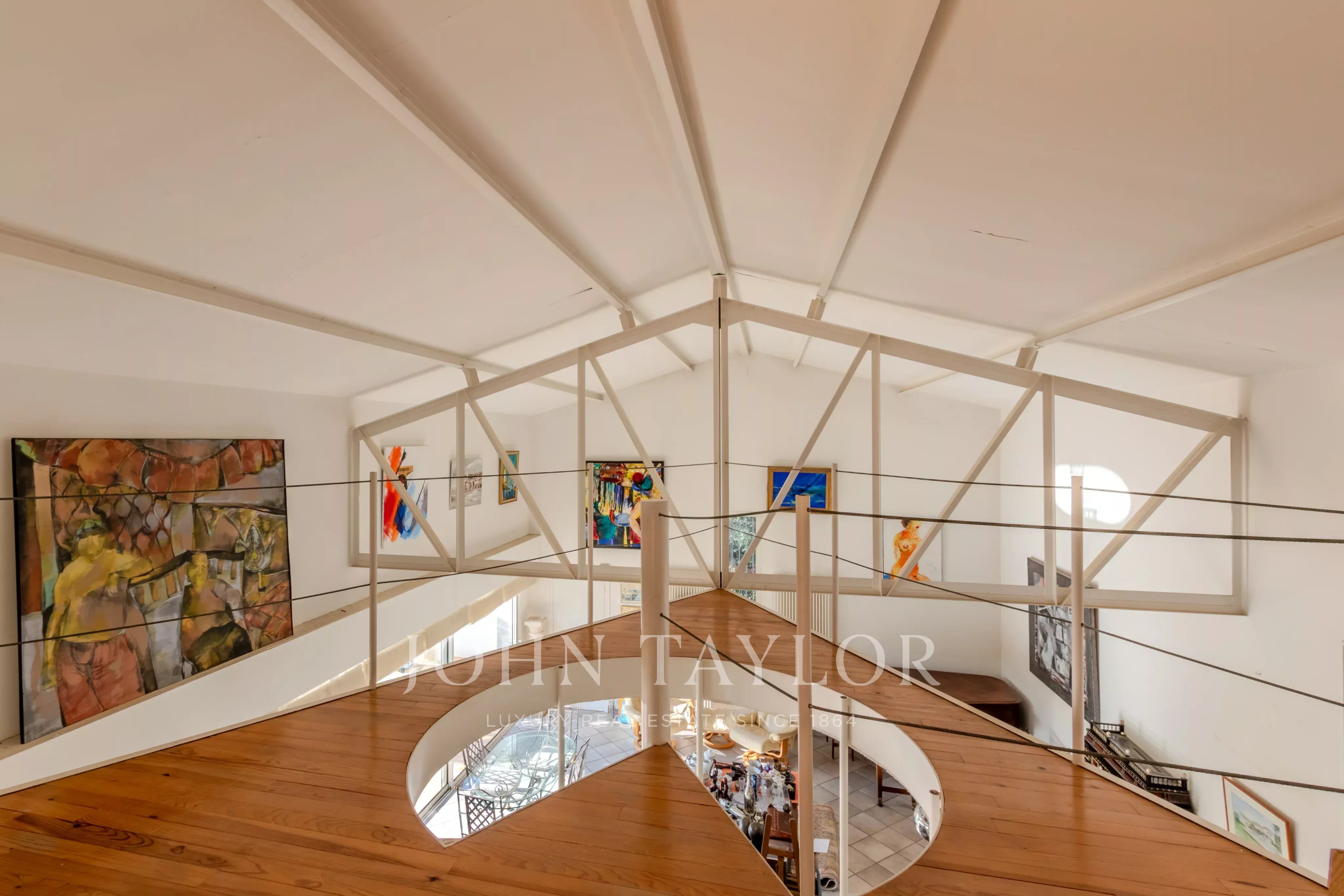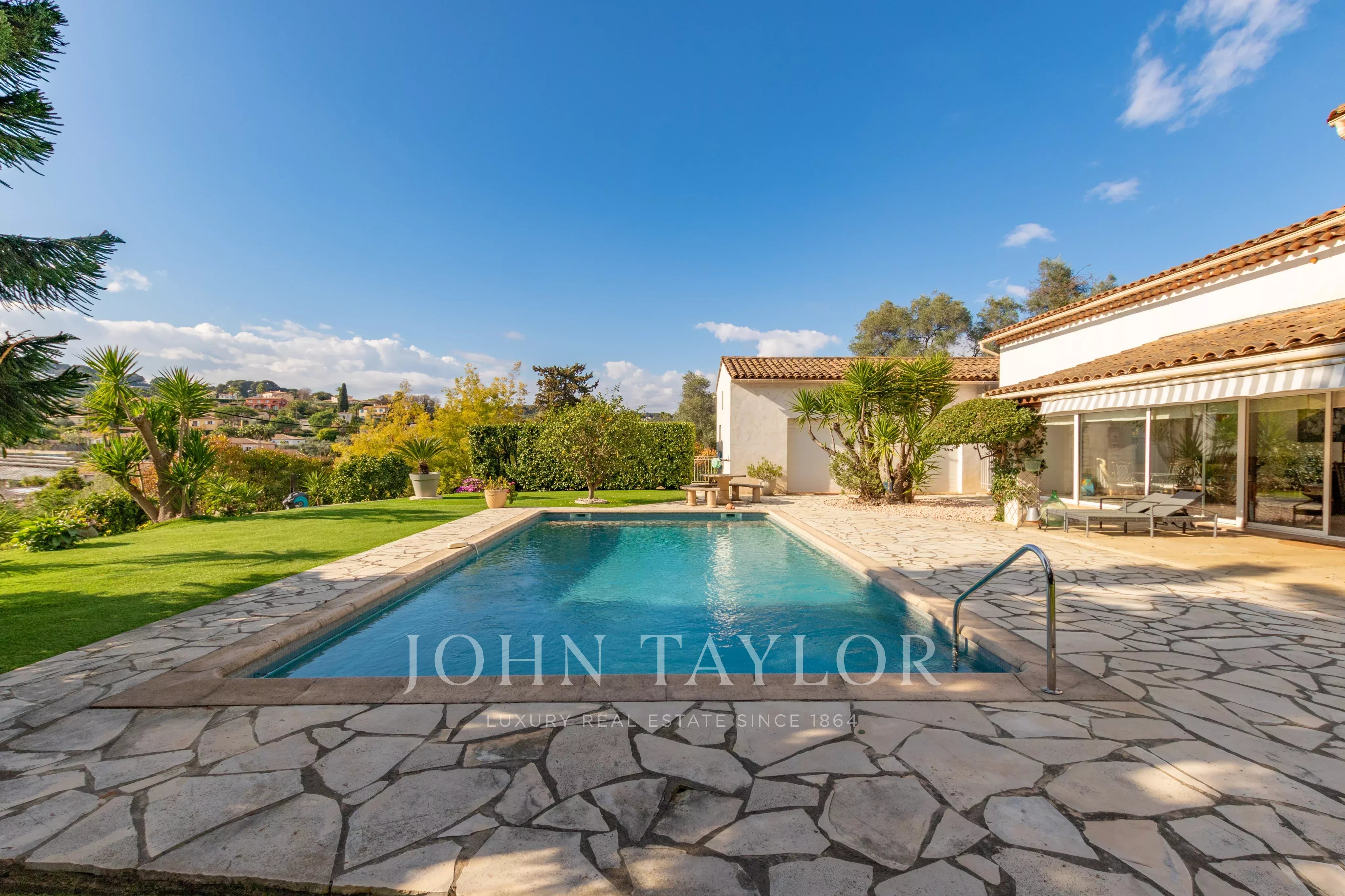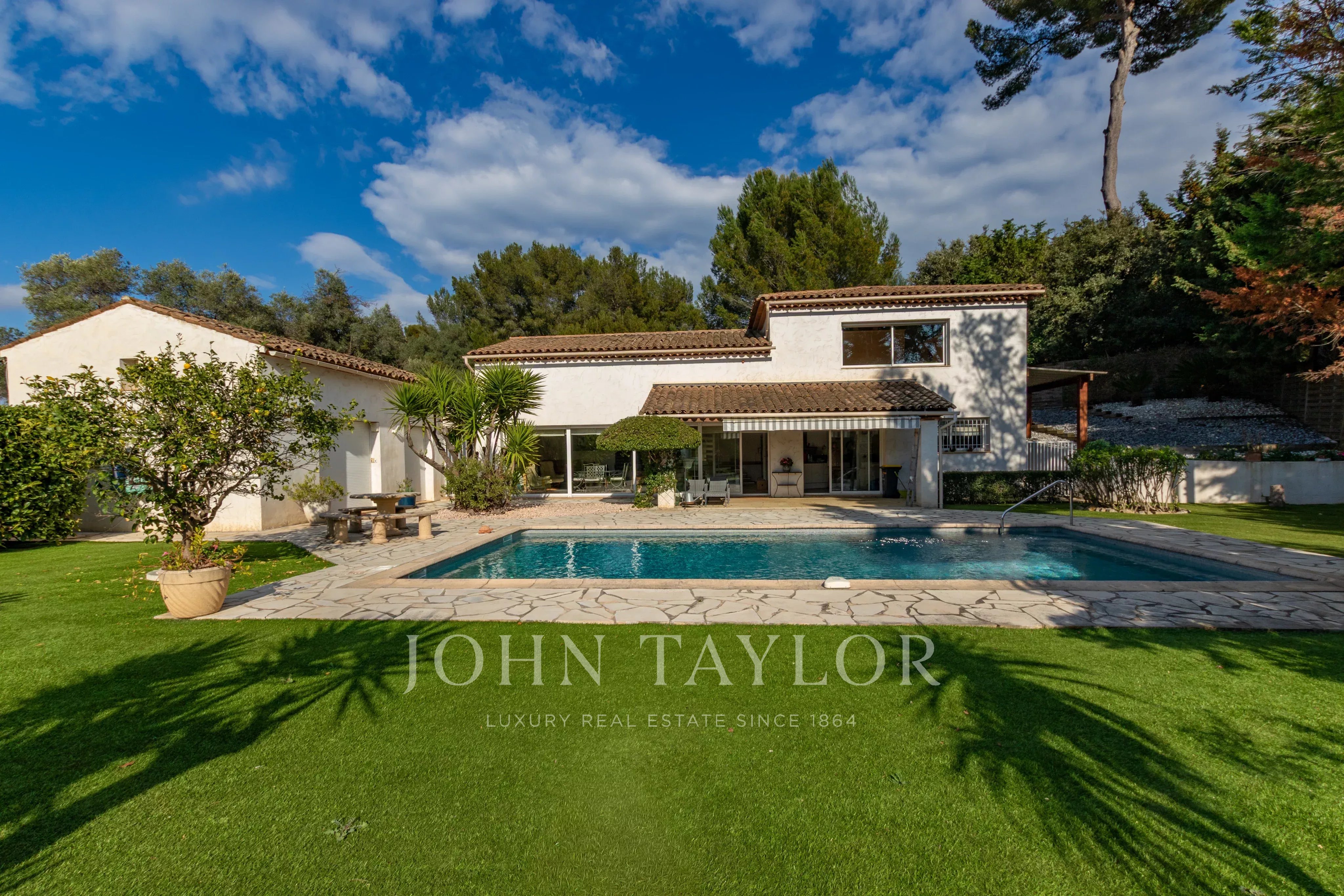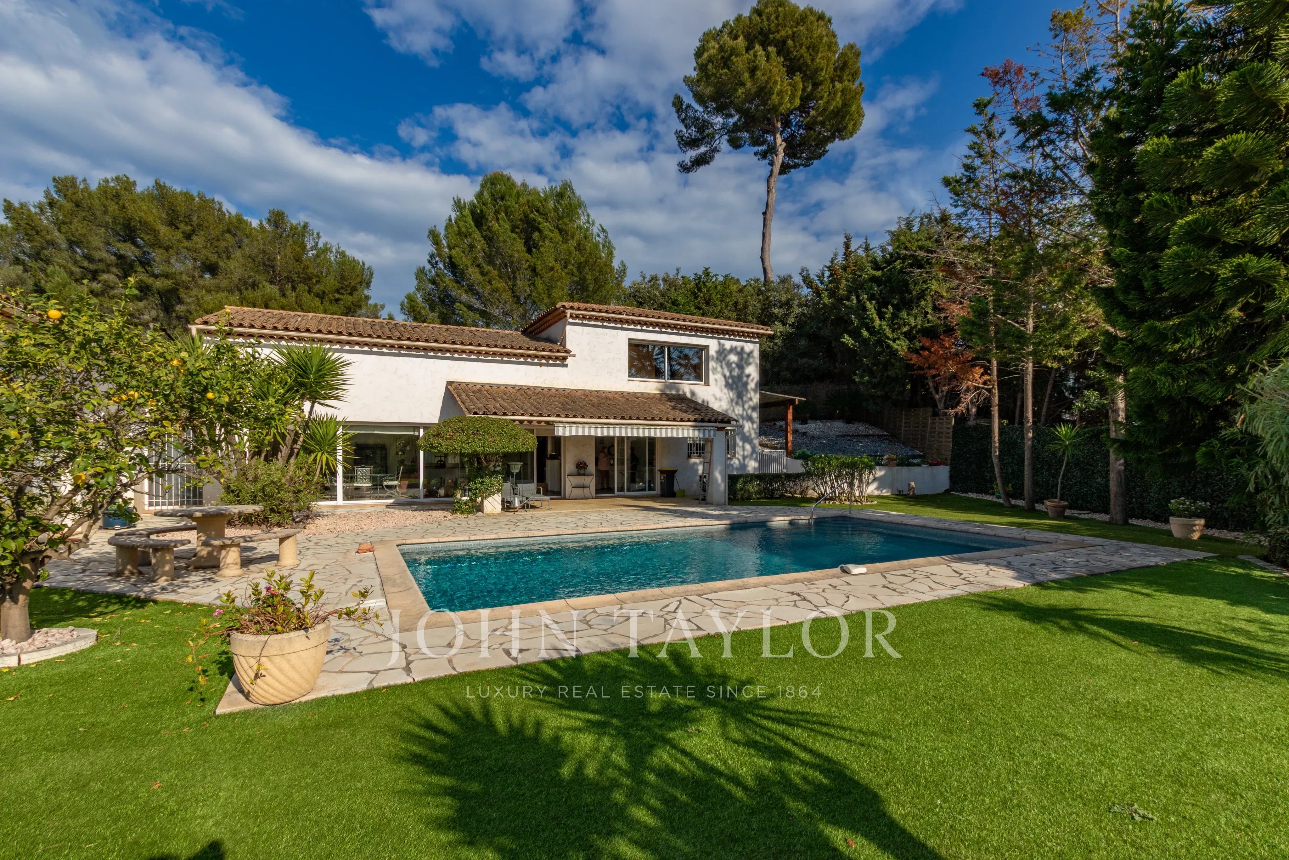 Nestled in a lush and peaceful setting in Antibes, this villa is charming for its generous volumes and light-filled living spaces. The large living room opens generously onto a functional open-plan kitchen totaling 83m², complemented by a laundry room with a gas boiler. Large bay windows offer breathtaking views of the pool and garden, inviting you to enjoy the Mediterranean climate all year round.
