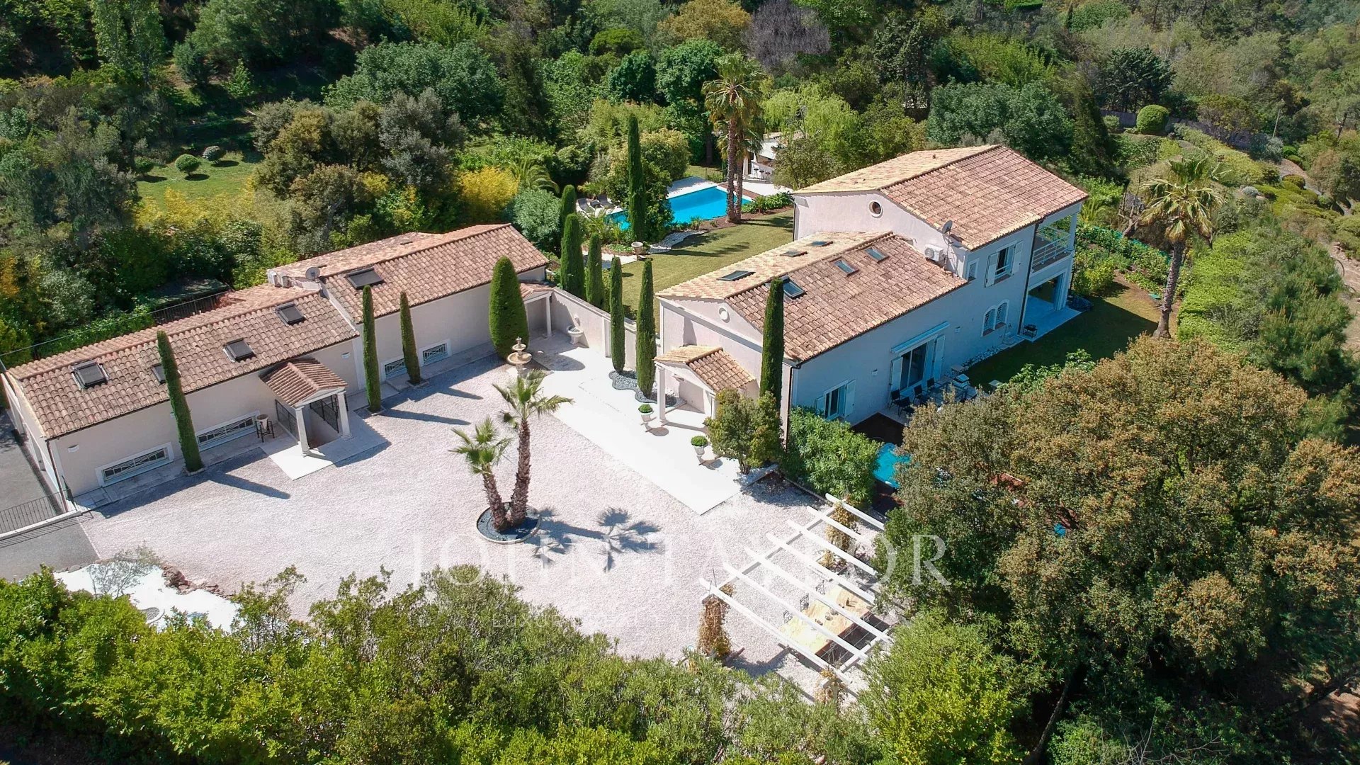 Located in the heart of the Esterel Massif in Saint Jean de Cannes, in a highly secure estate, this luxurious two-villa property offers a unique living environment.