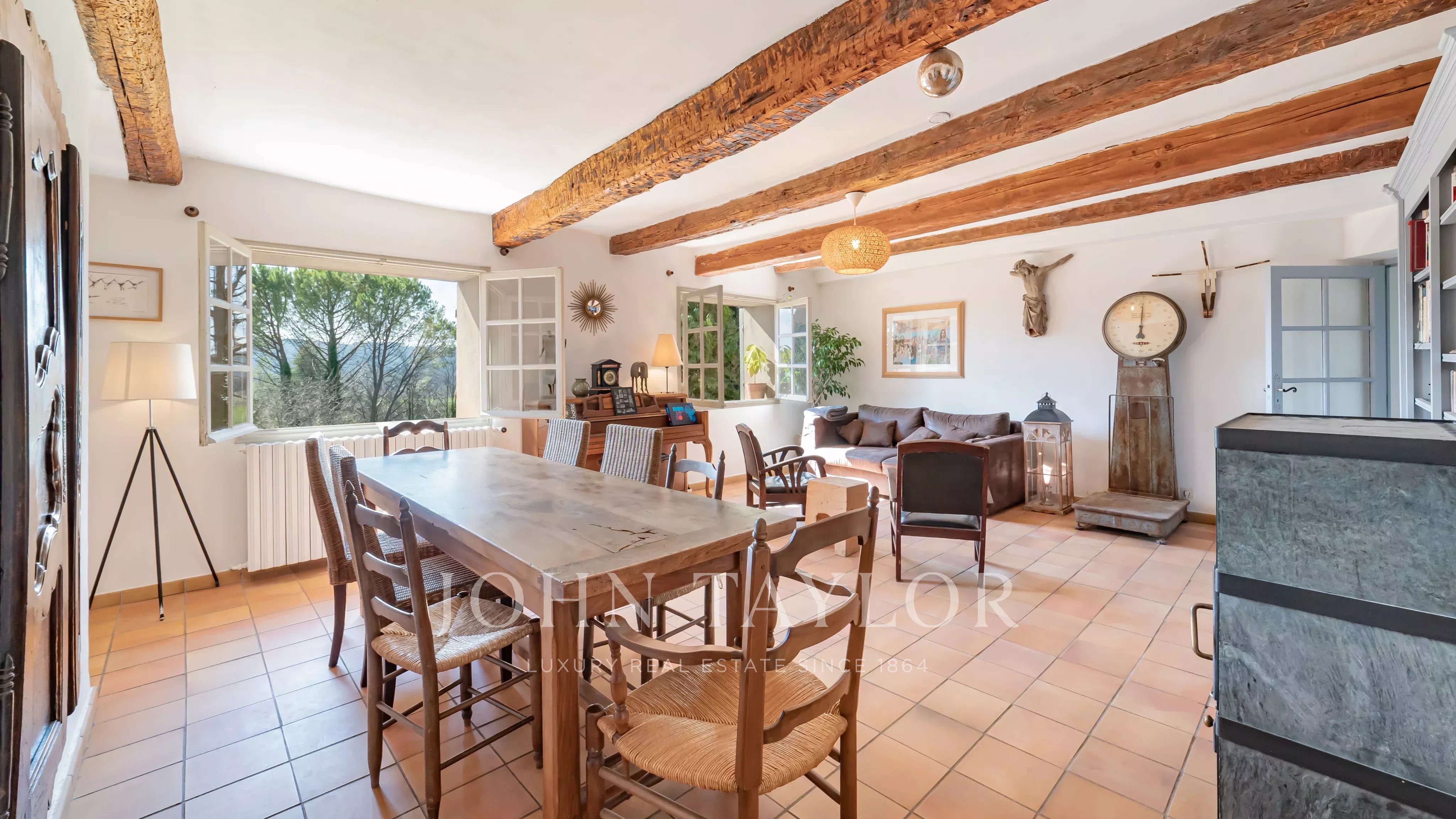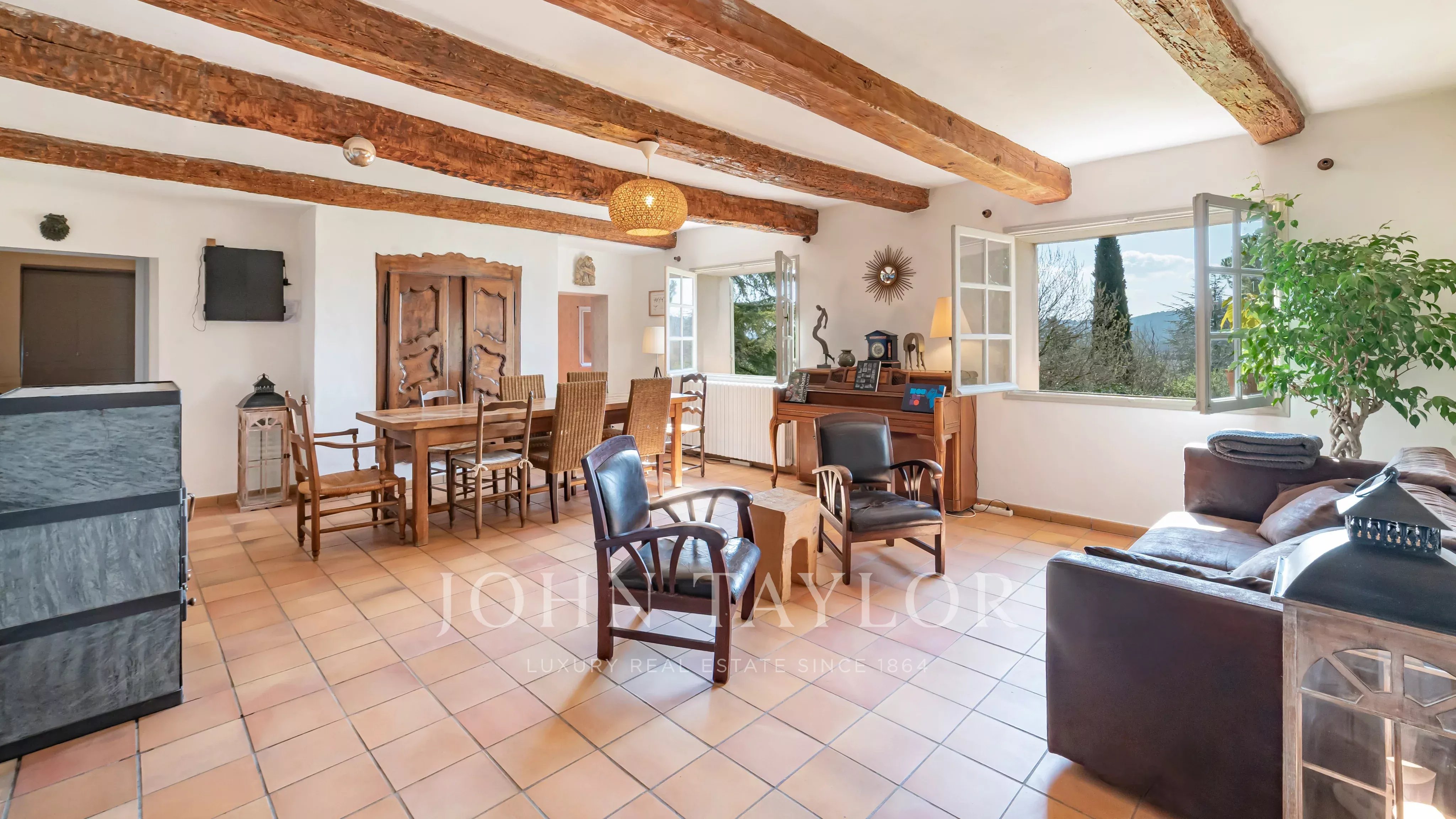 Located in a preserved natural environment, in the heart of the Tourrettes countryside and just a few minutes from the prestigious Terre Blanche golf course, this character property extends over a domain of approximately 4.4 hectares and offers a rare living environment, combining charm, authenticity, and tranquility.