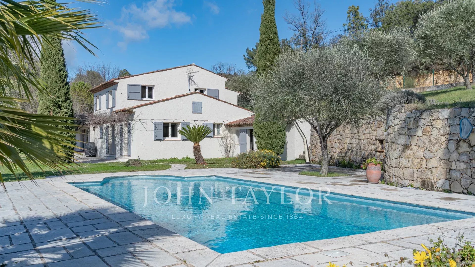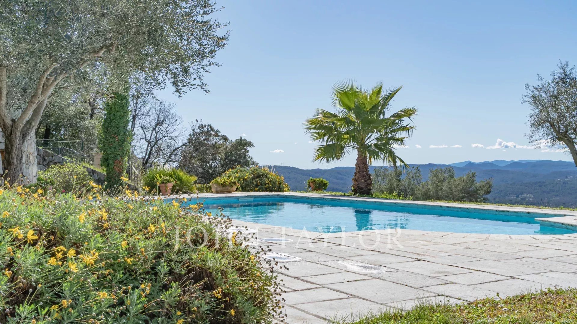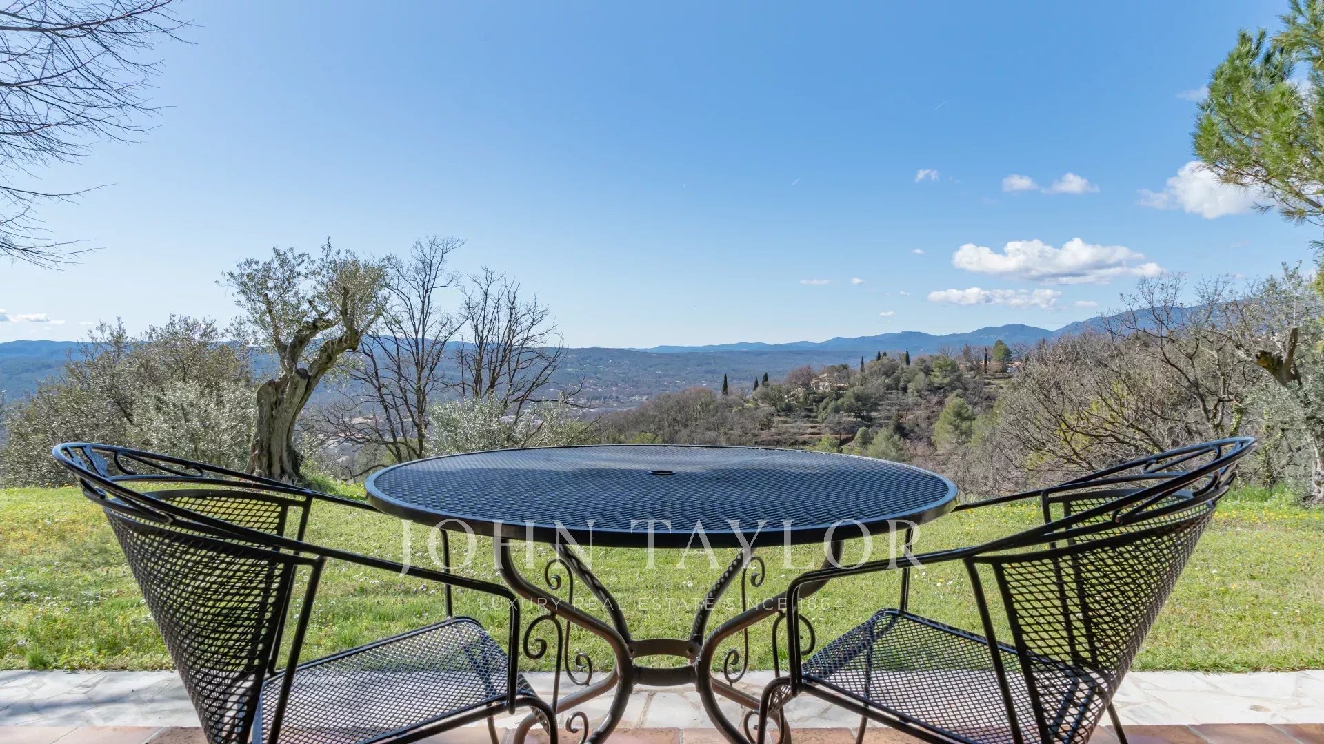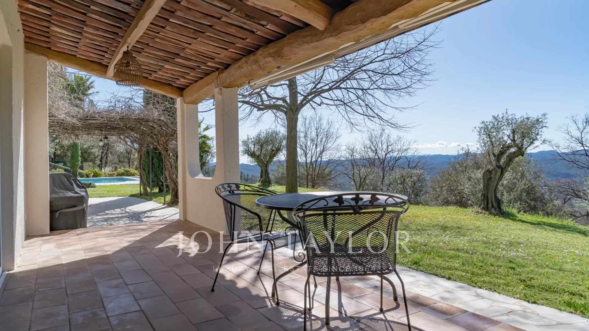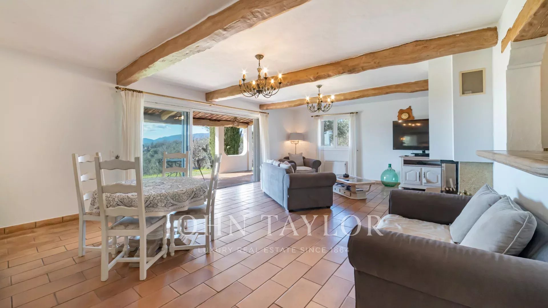 In a residential area, close to shops and the village of Montauroux, 210 sq.m villa set on 3600 sq.m grounds with swimming pool and olive trees, enjoying panoramic views over the Canton de Fayence.