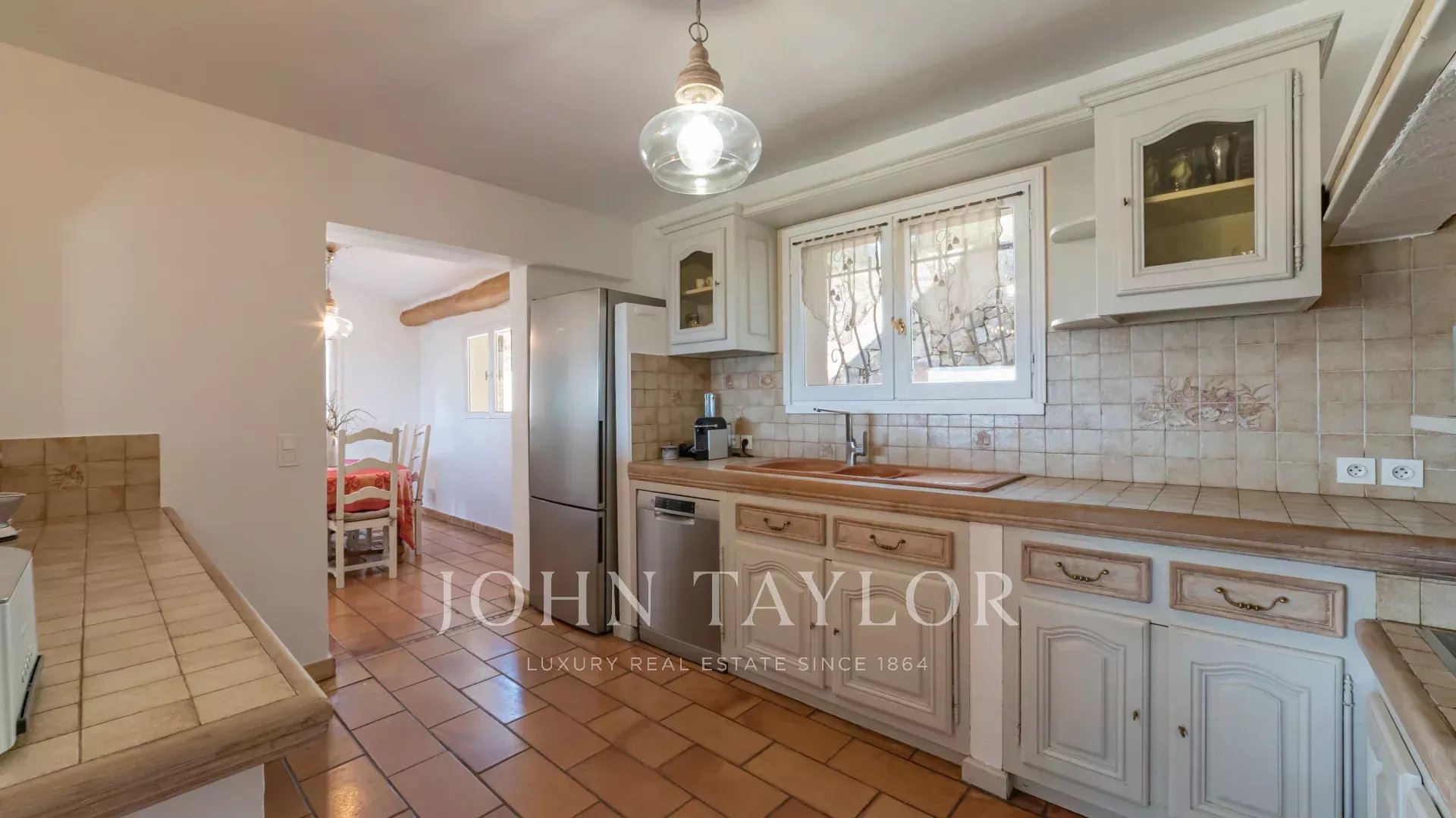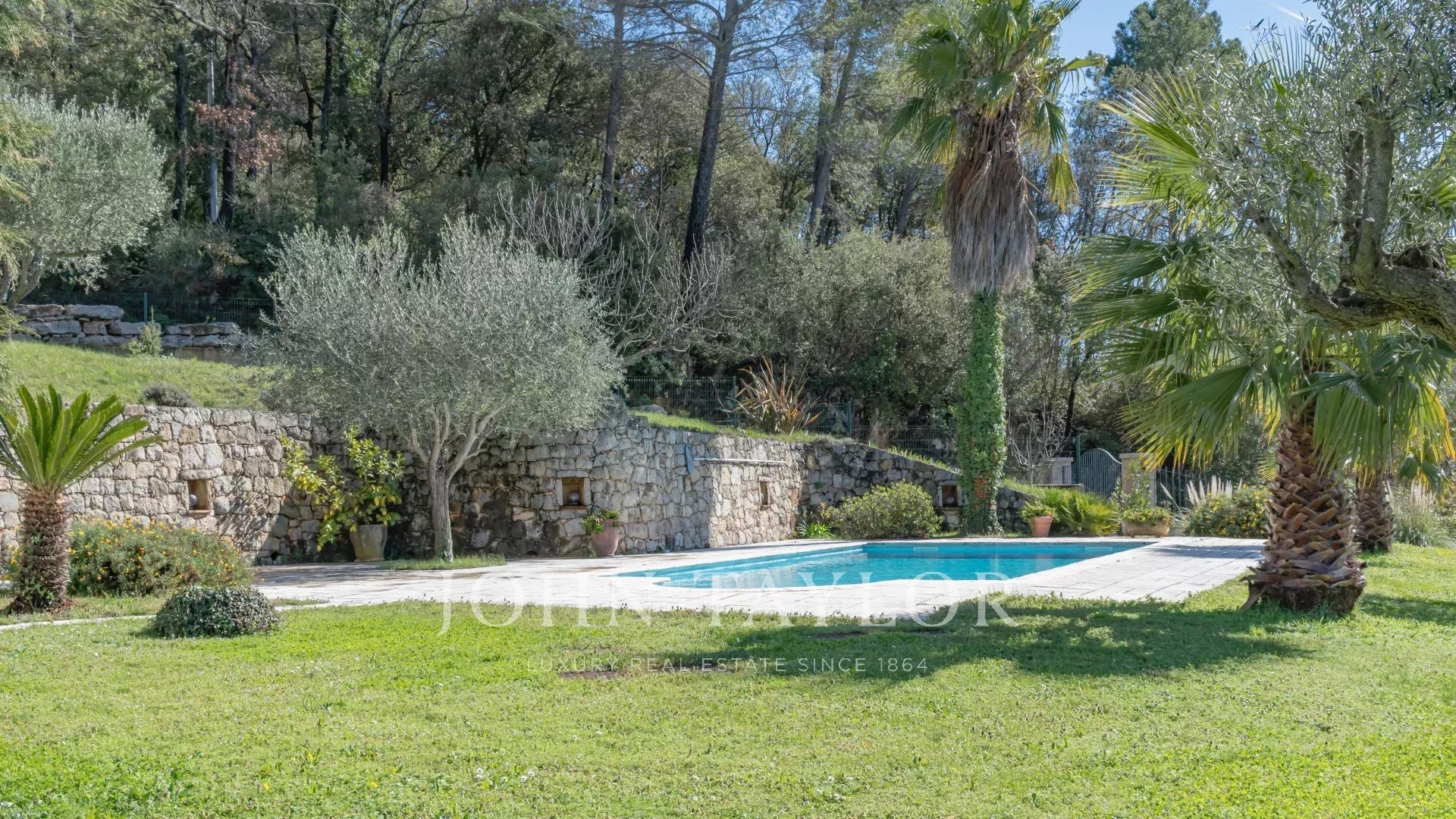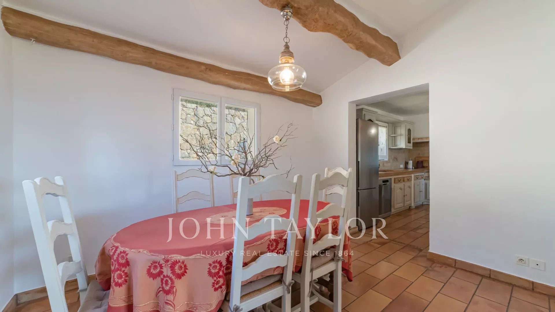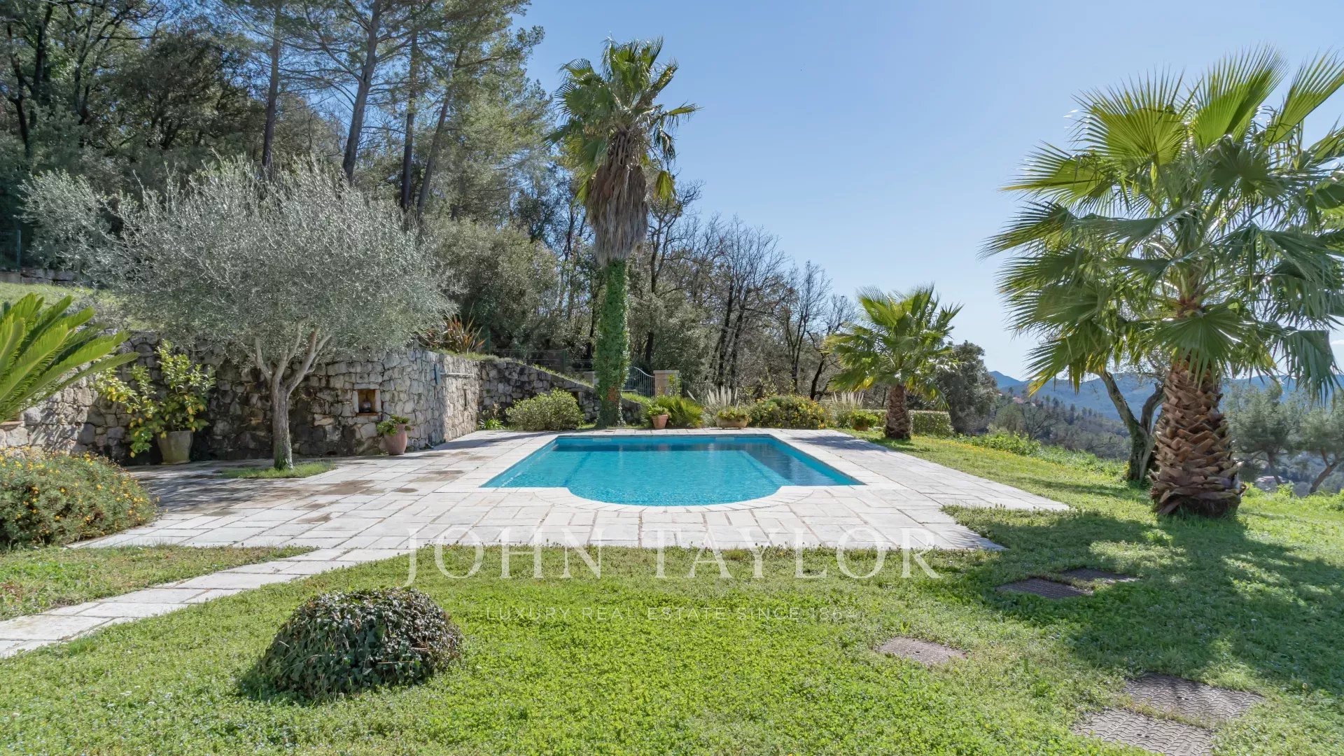 In a residential area, close to shops and the village of Montauroux, 210 sq.m villa set on 3600 sq.m grounds with swimming pool and olive trees, enjoying panoramic views over the Canton de Fayence.