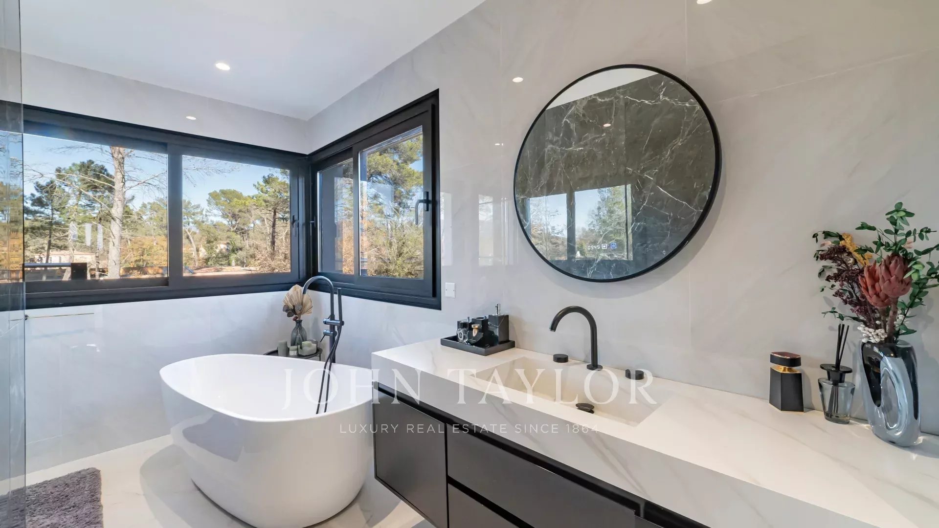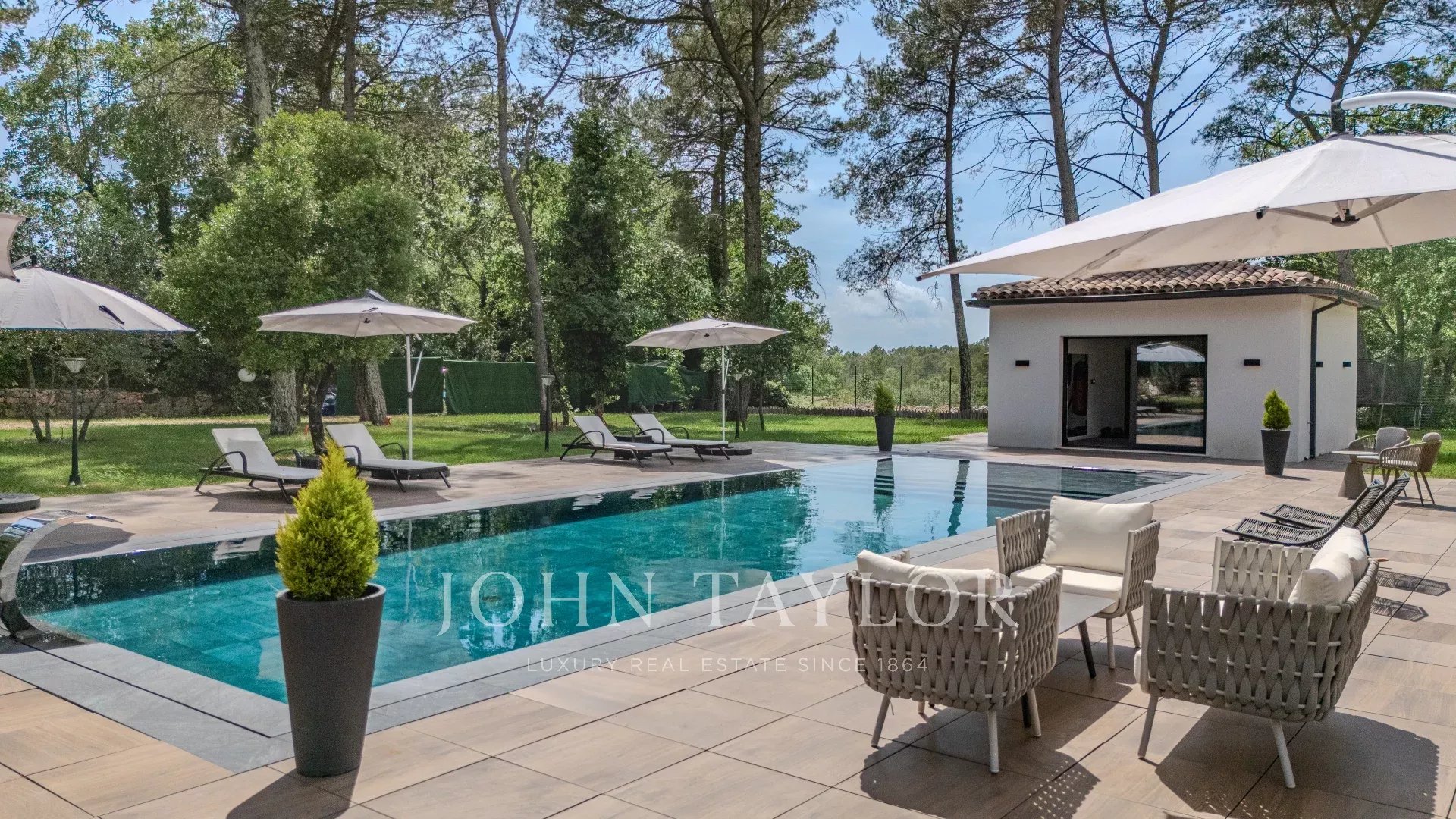 In a sought-after residential environment, in absolute calm and close to the prestigious Terre Blanche estate, discover this contemporary architect-designed villa built in 2023, with a total surface area of approx. 543 m², set on a 4,200 m² flat plot.