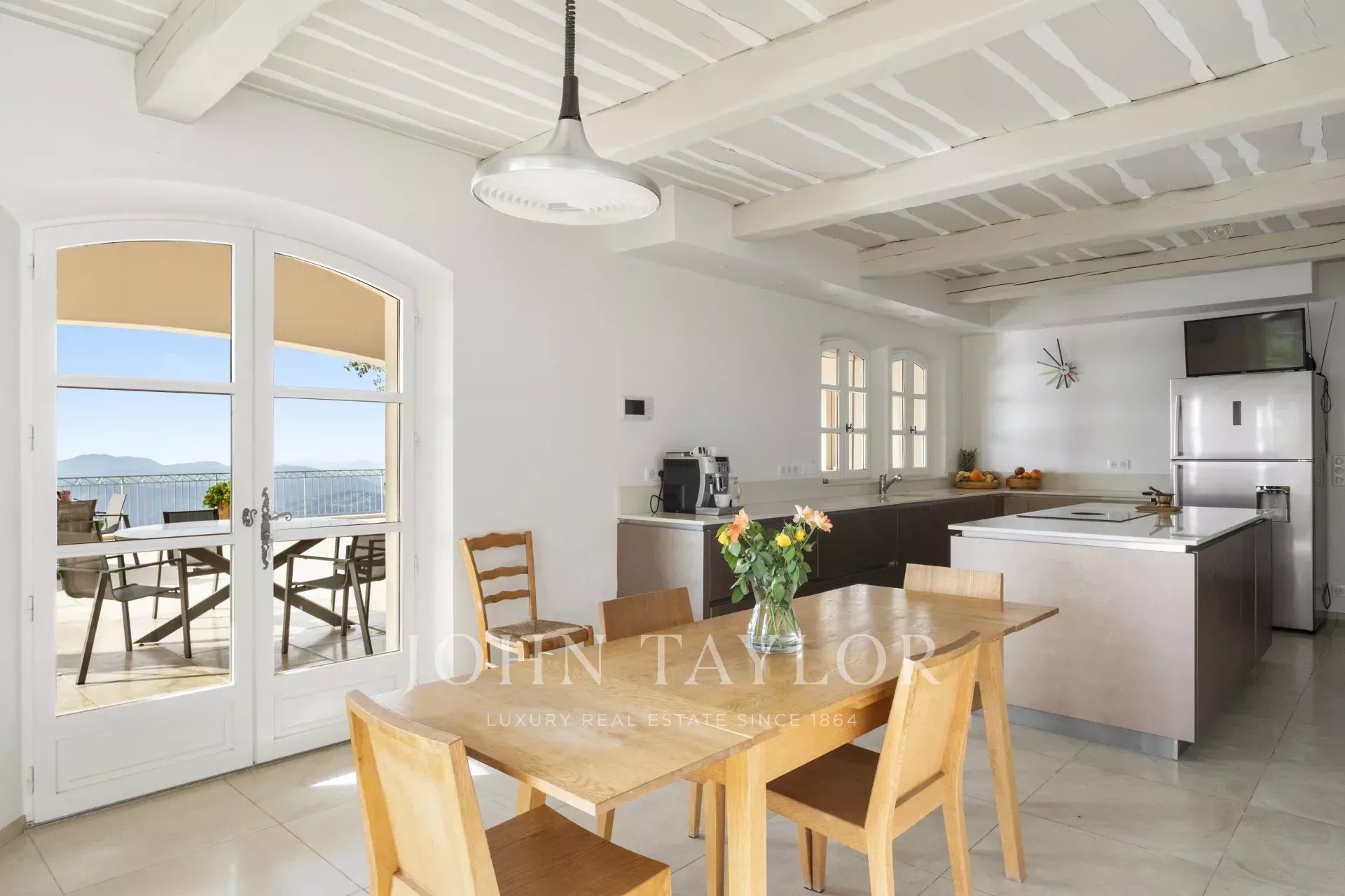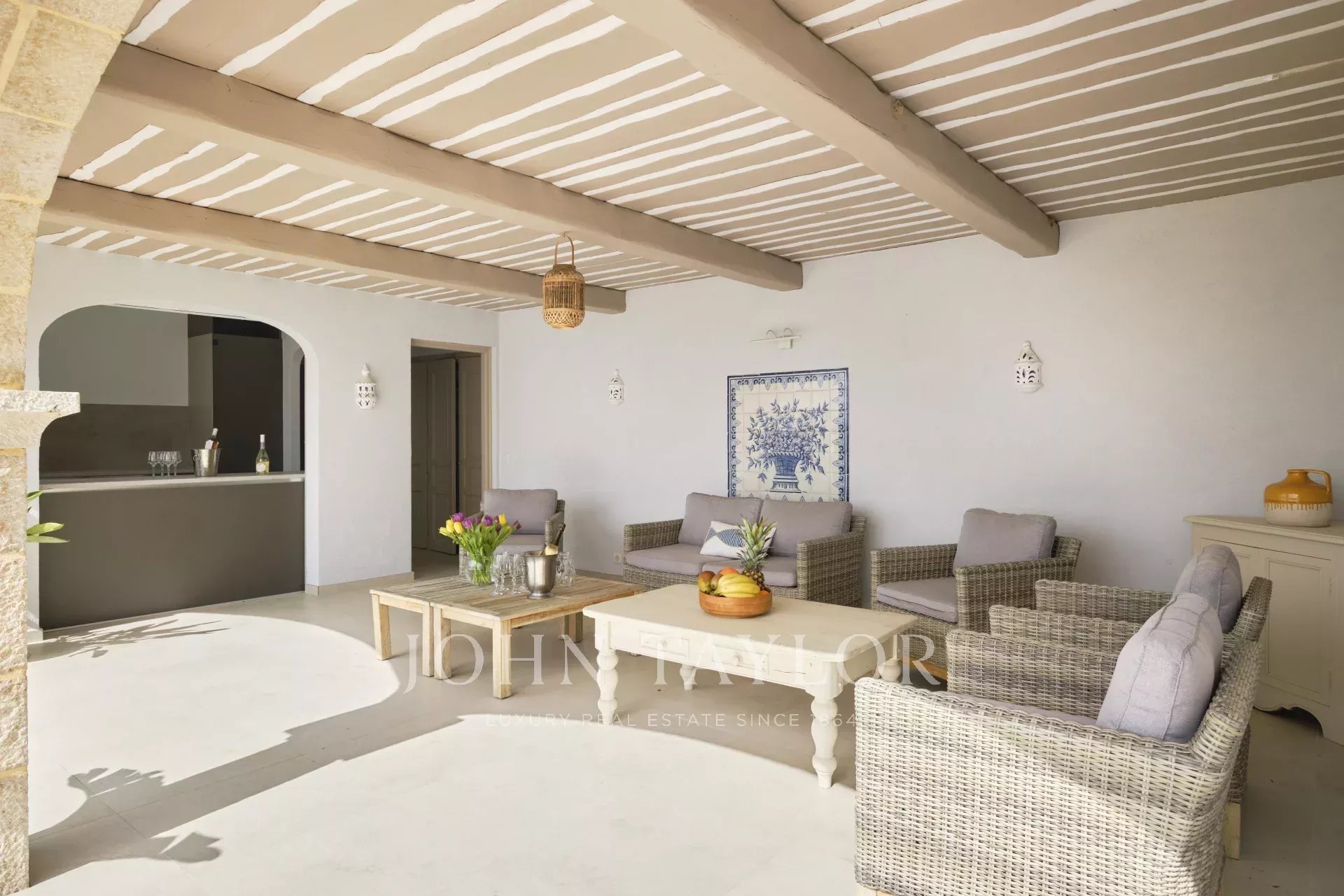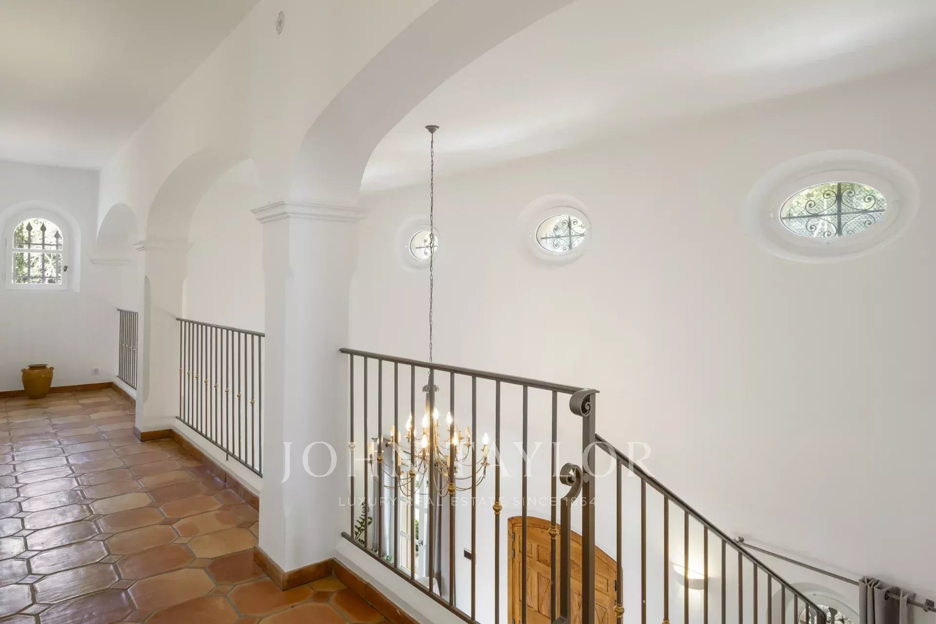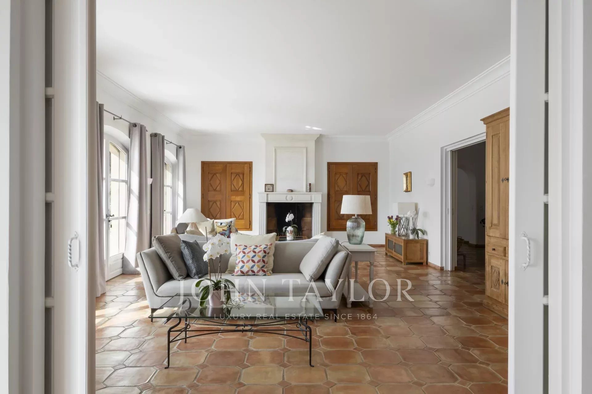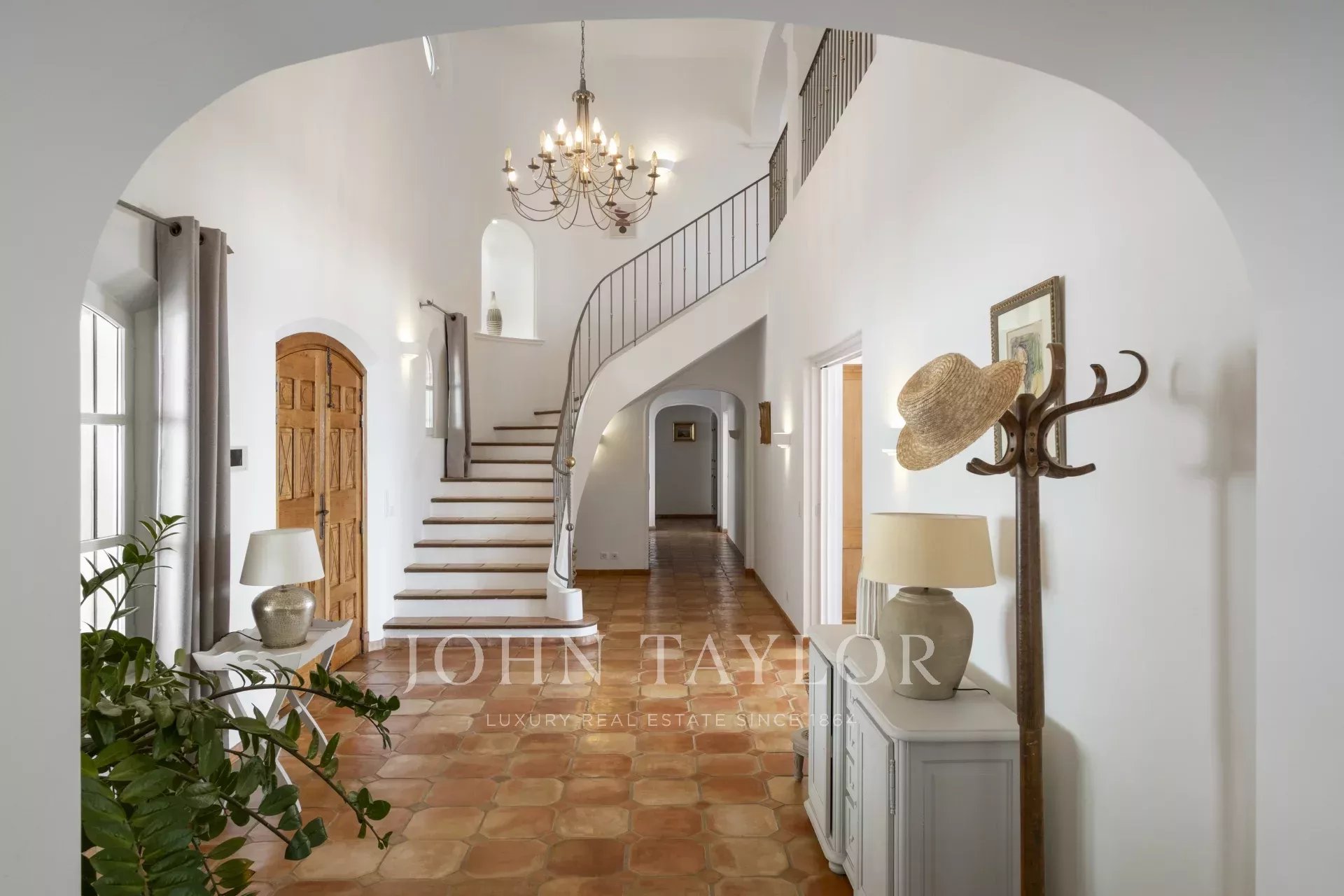 A superb entrance hall with a double-height ceiling leads to the vast living/dining room, with its elegant fireplace and large picture windows opening onto a huge terrace. The charming Provençal kitchen, with its large fireplace, provides a convivial space for family meals. On the same level, you will also find a study, two bedrooms, including a master suite with a pretty bathroom, dressing room and its own private terrace, as well as a laundry room, storeroom and cloakroom.