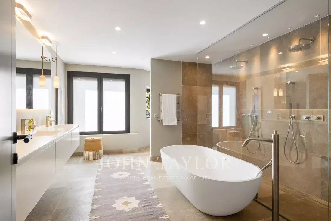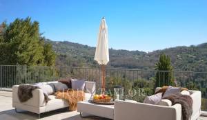 Nestled in the picturesque hills of the backcountry of Cannes, this recently renovated Provençal villa epitomises comfort, luxury, modernity and unrivalled quality, coupled with breathtaking panoramic views as far as the bay of Mandelieu.