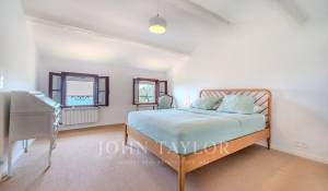 The ground floor comprises a cozy sitting room with fireplace, a dining room adjoining a traditional Provençal kitchen, a large bright living room with fireplace, a study, a bedroom or TV lounge, and guest toilets.