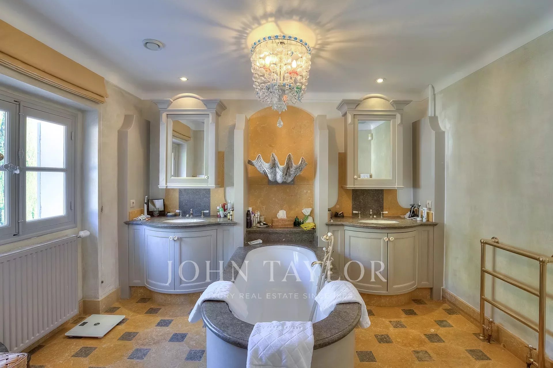 In a very quiet and most private setting, the elegance and refinement of a historic property in perfect condition, built in 1950 by Héléna Rubinstein with the renowned architect Louis Süe, comprising a main house of 491 sq.m living space, two guest houses, a caretaker's accommodation and a former sheepfold renovated throughout, amidst enchanting grounds of 31 523 sq.m.