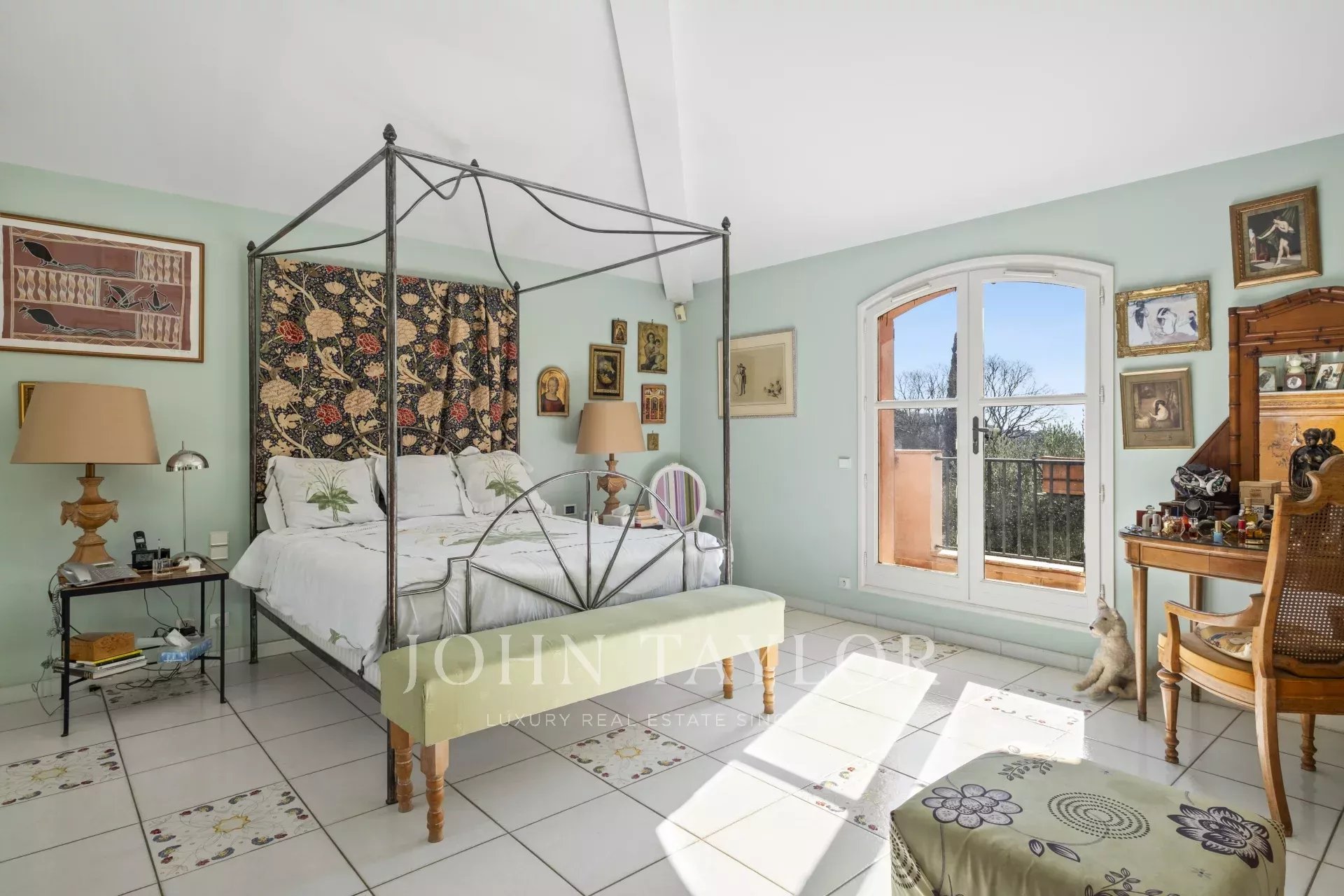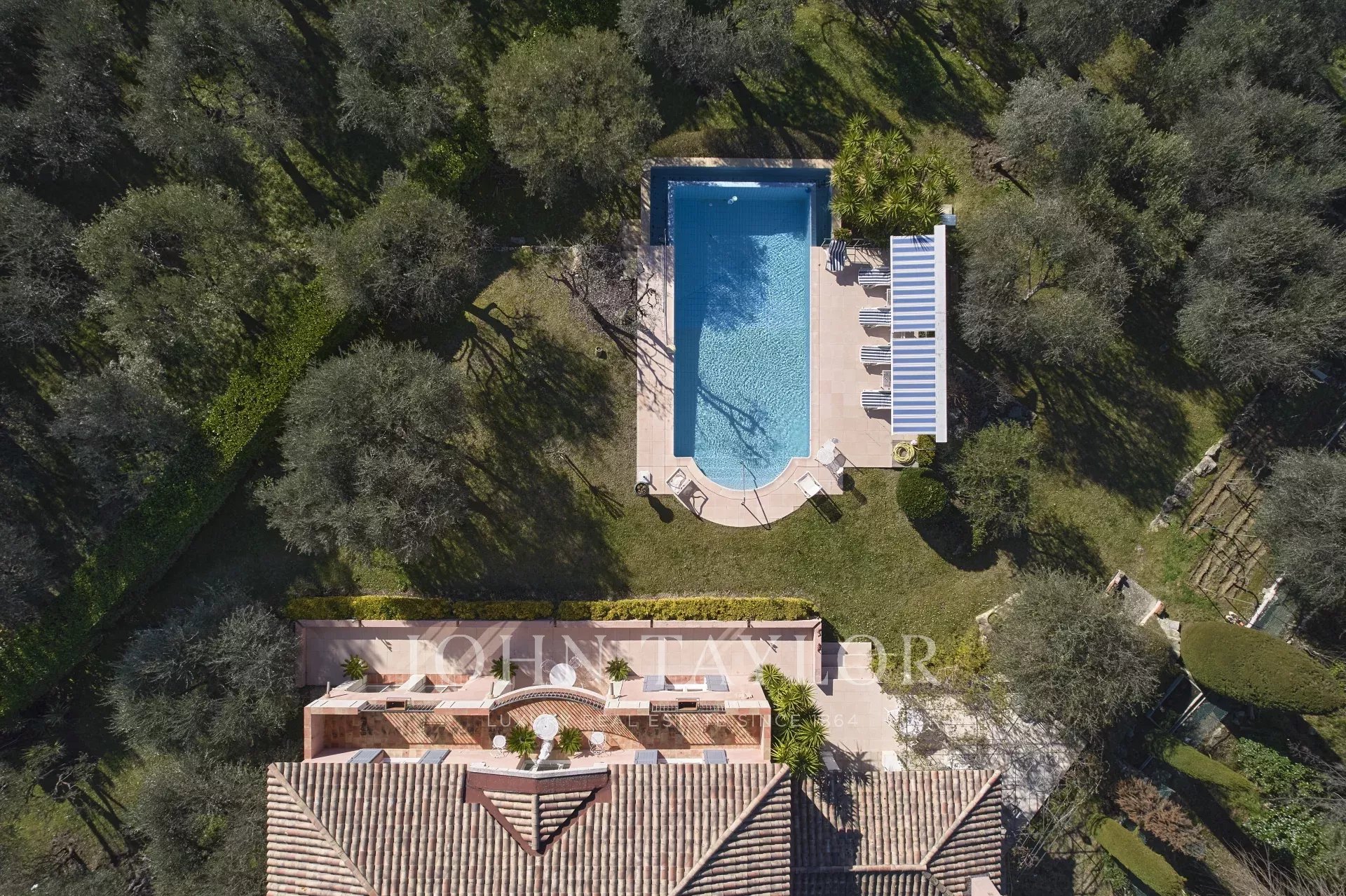 In the Cannois hinterland, this timelessly elegant villa in a peaceful setting with guest house will charm you with its 5,000 sq.m of beautifully landscaped grounds with a variety of Mediterranean trees, heated infinity pool and magnificent covered terrace with summer kitchen.
