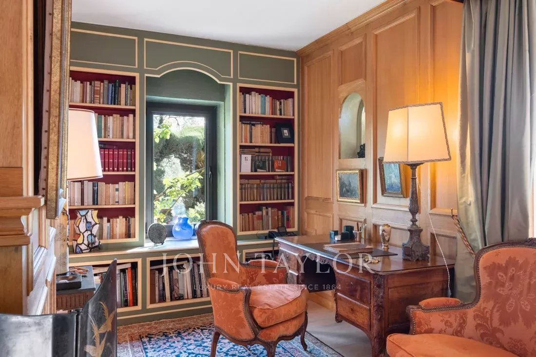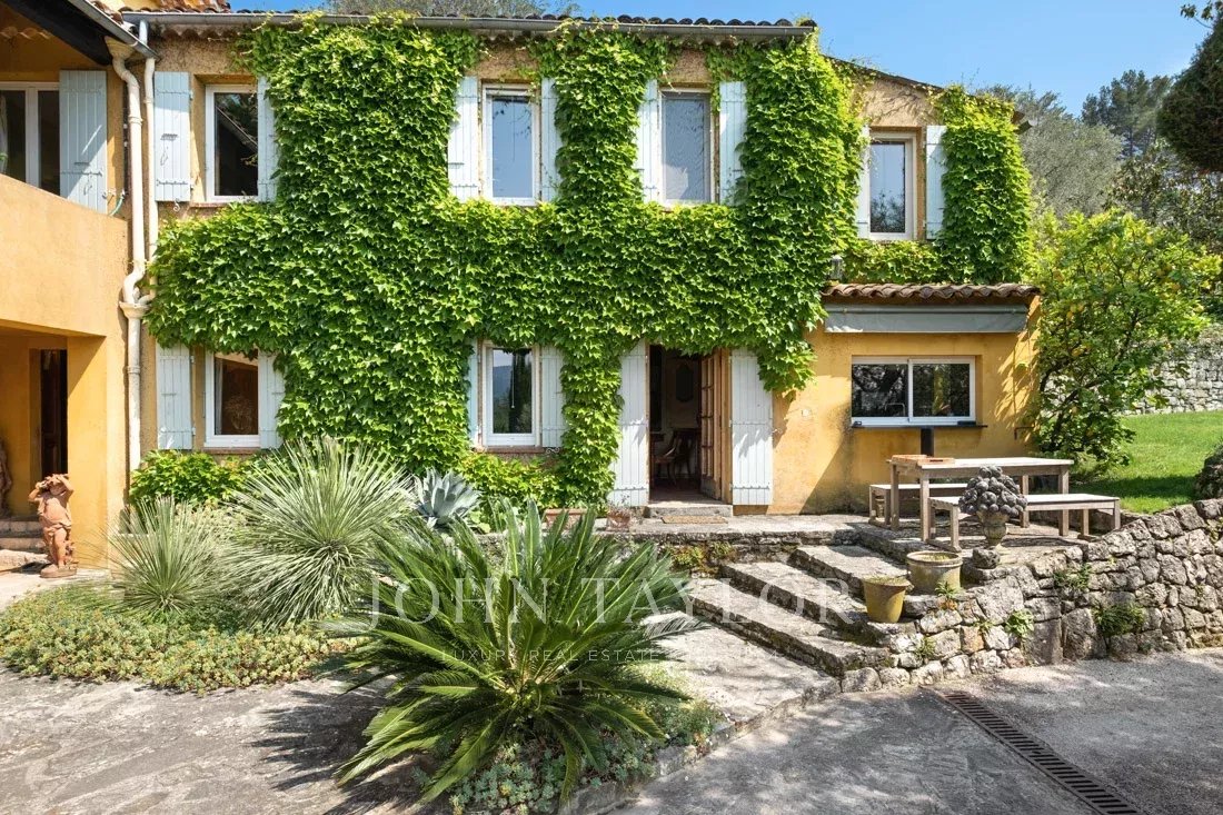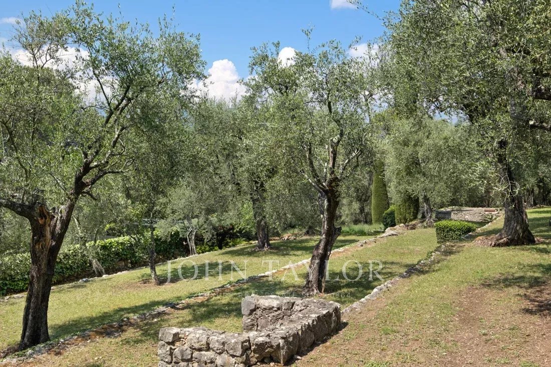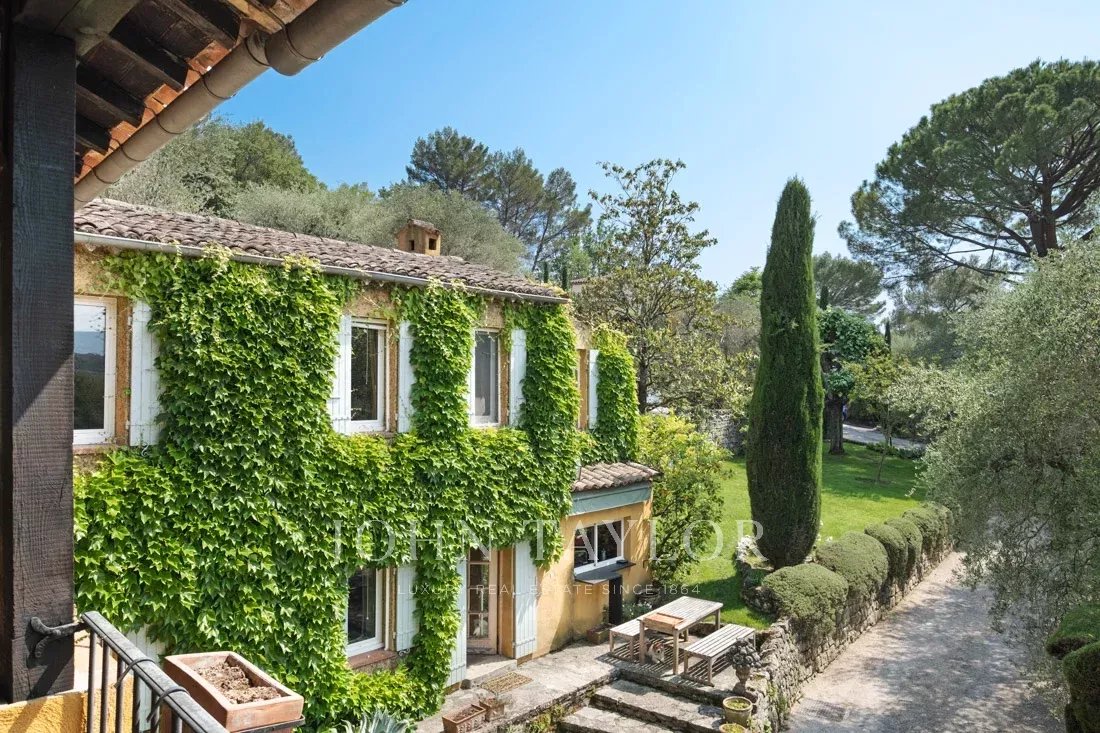 This 1.6-hectare property with its magnificent Mediterranean plants, numerous terraces, water fountains and tennis court offers panoramic views of the surrounding hills and absolute serenity.
