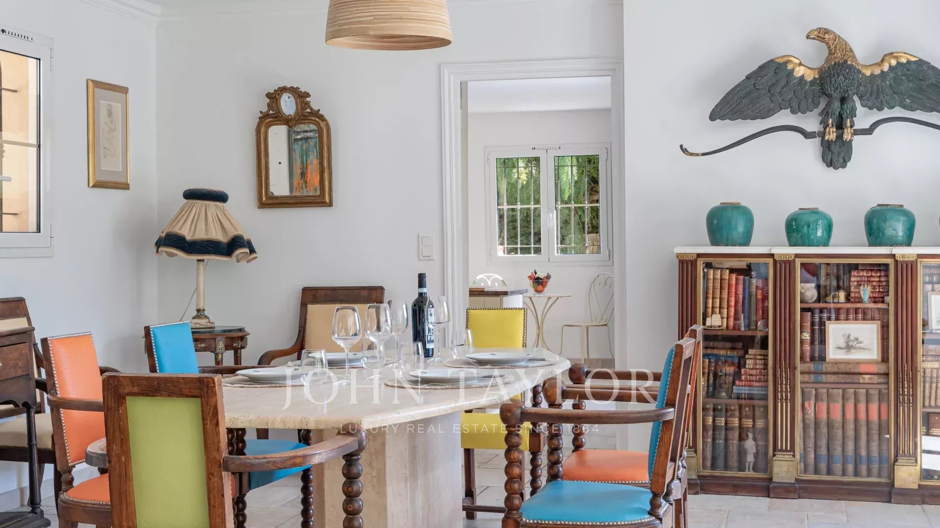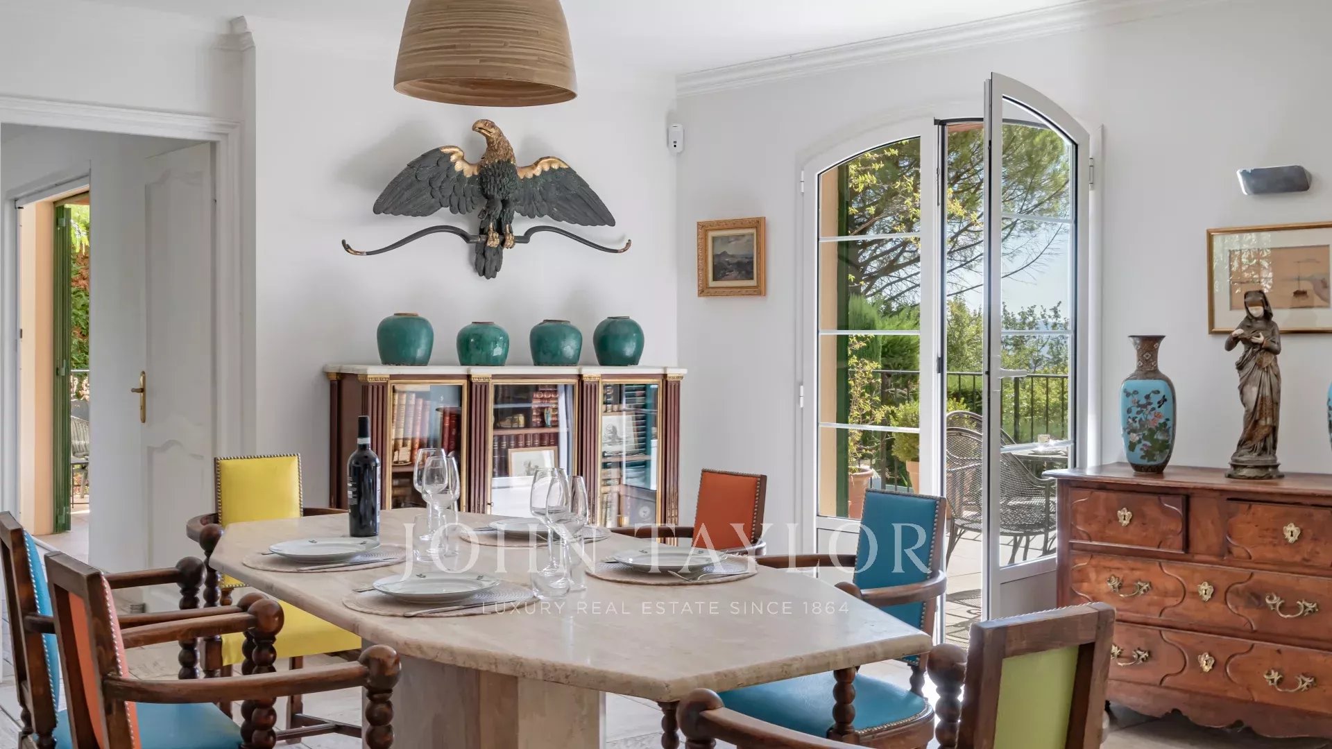 Located in a peaceful, charge-free private domain, this villa enjoys absolute tranquility while being close to all amenities, top golf courses, beautiful beaches, and just 35 minutes from Nice International Airport.