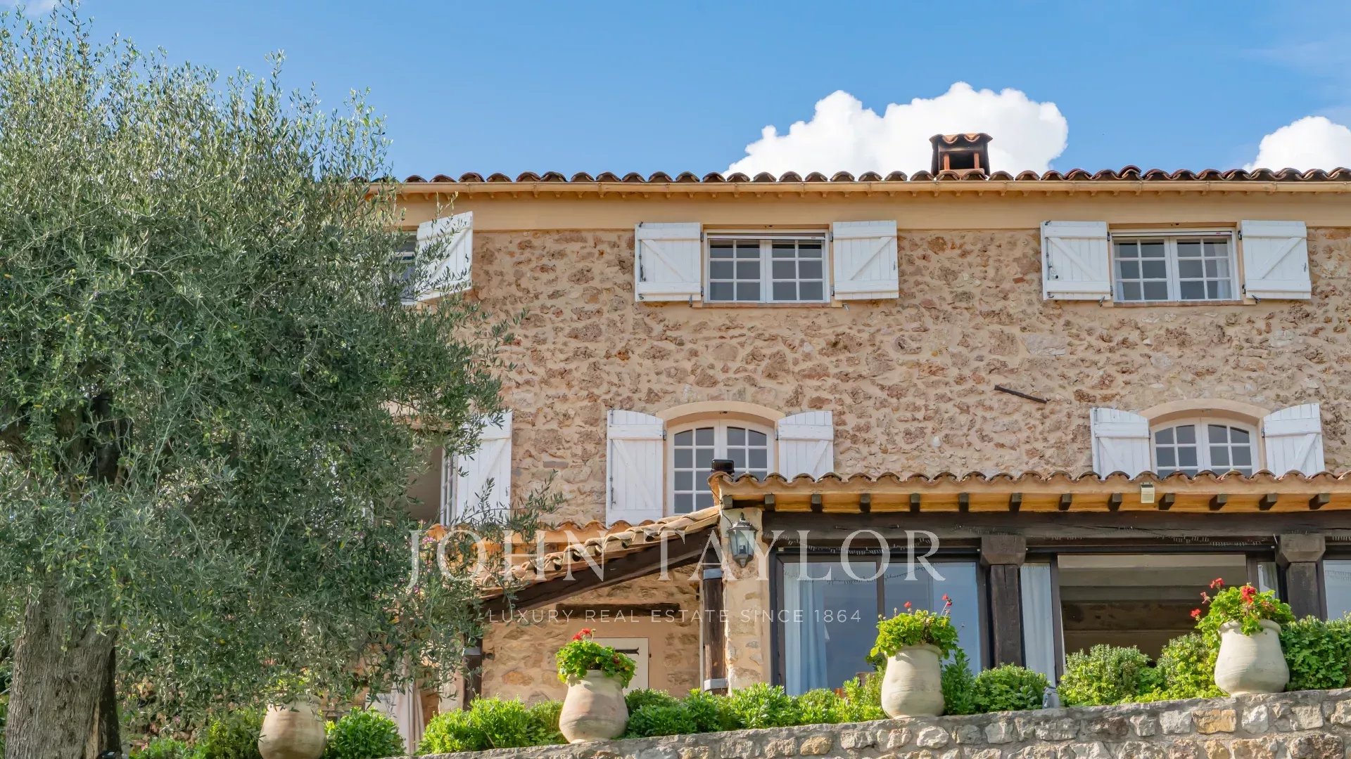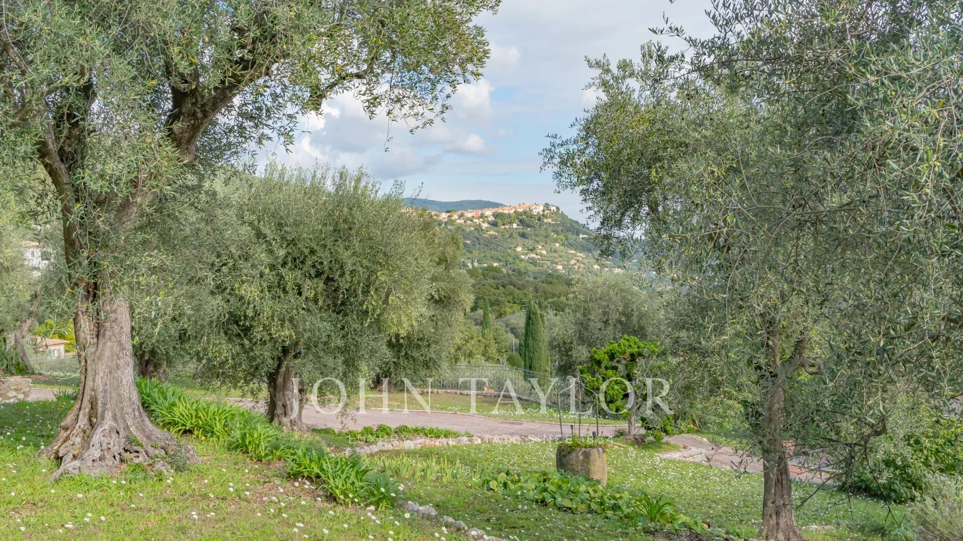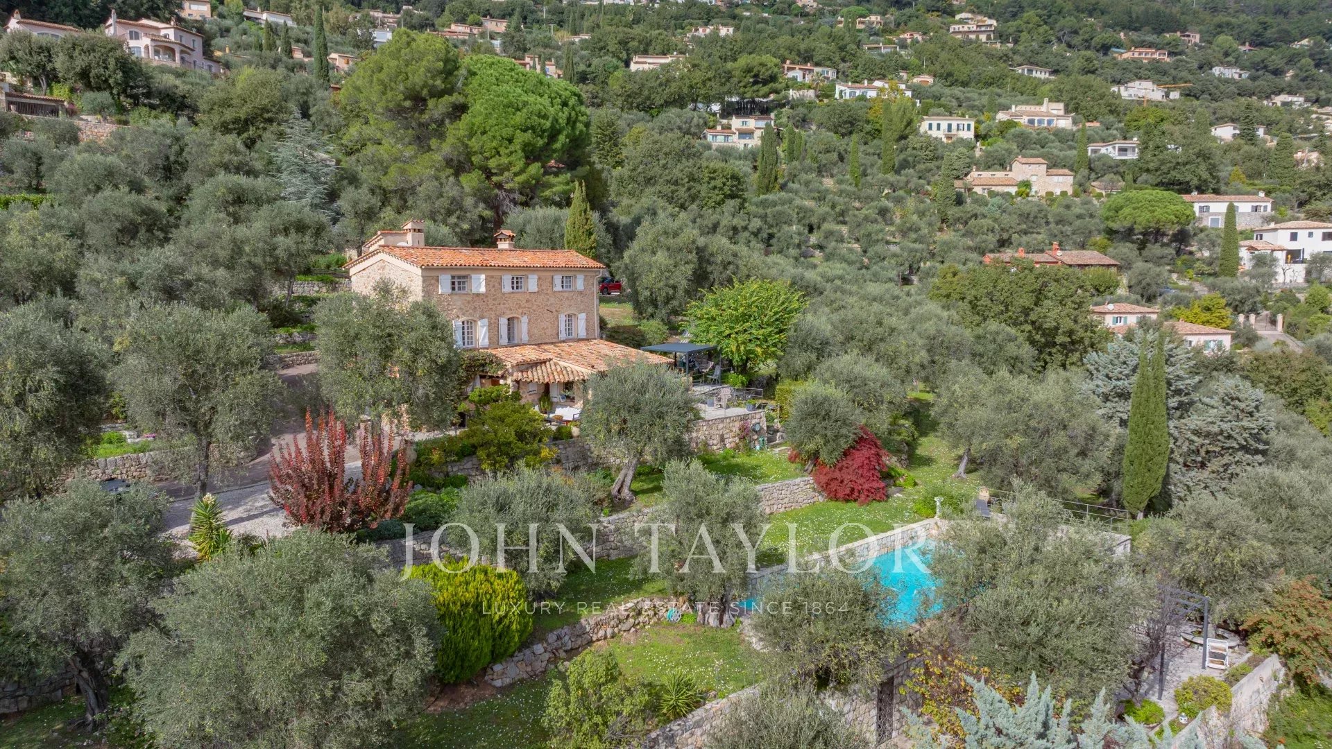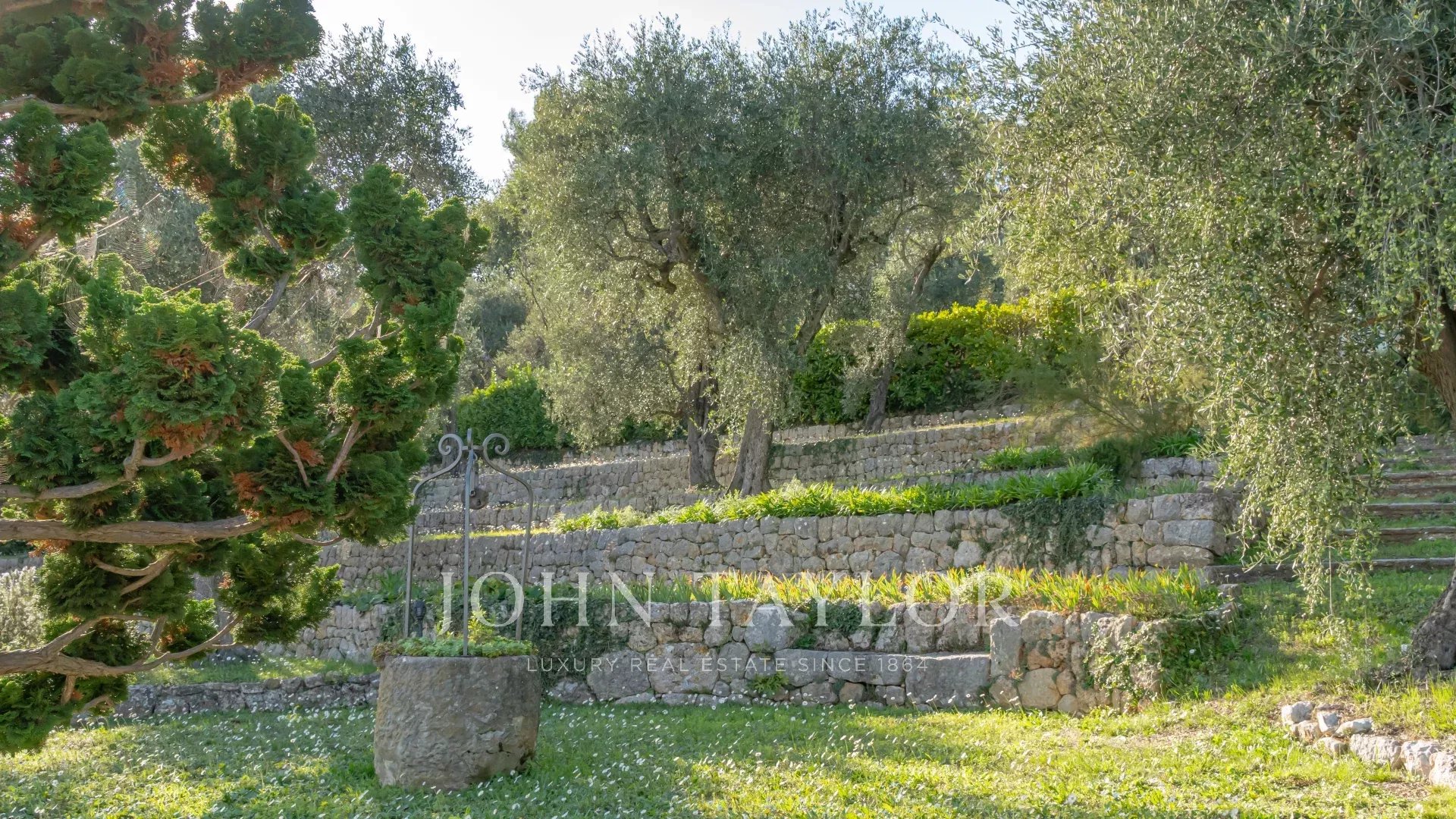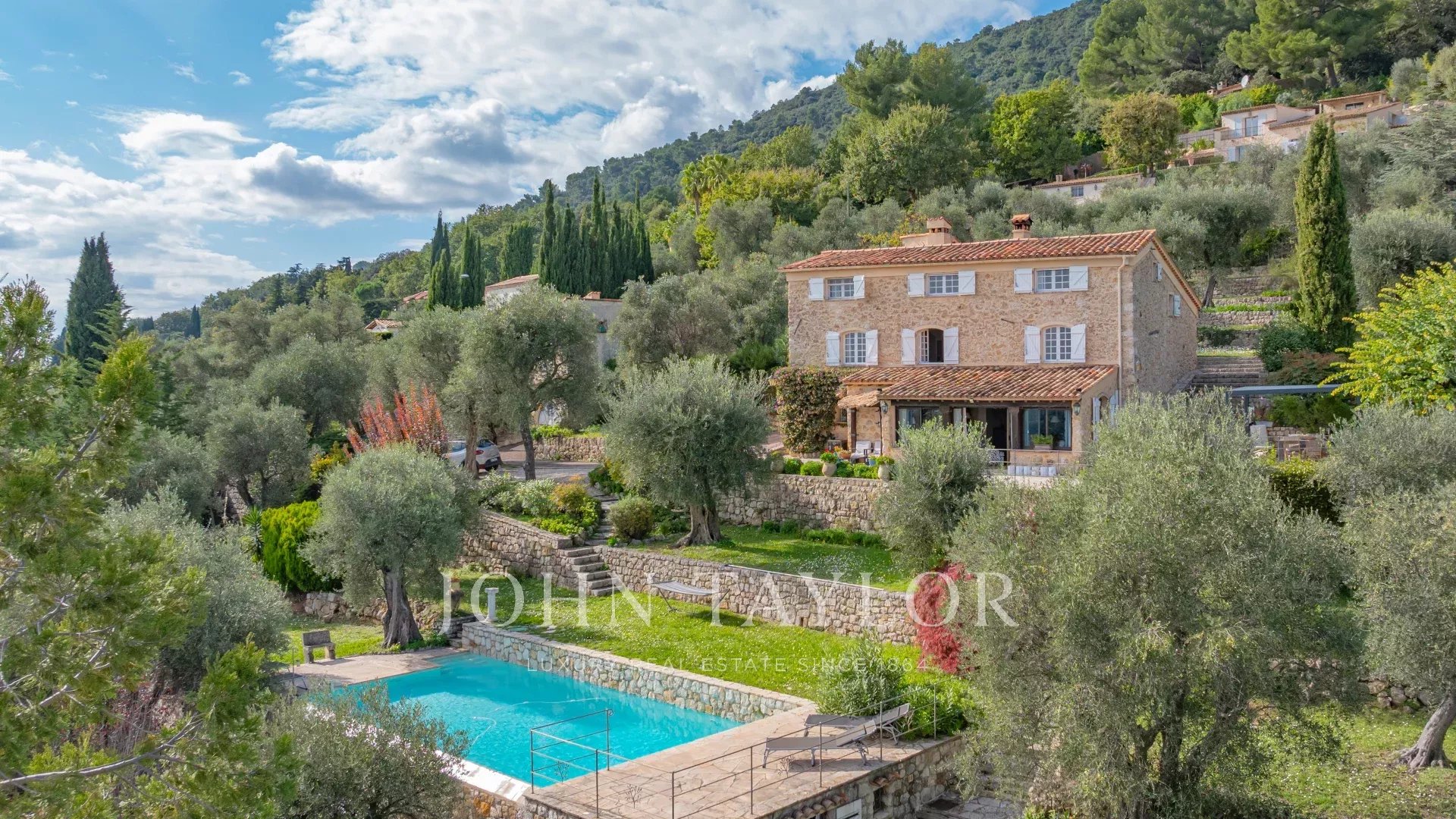 The property includes an infinity pool, several terraces, a parking area and grounds planted with over 200 olive trees.