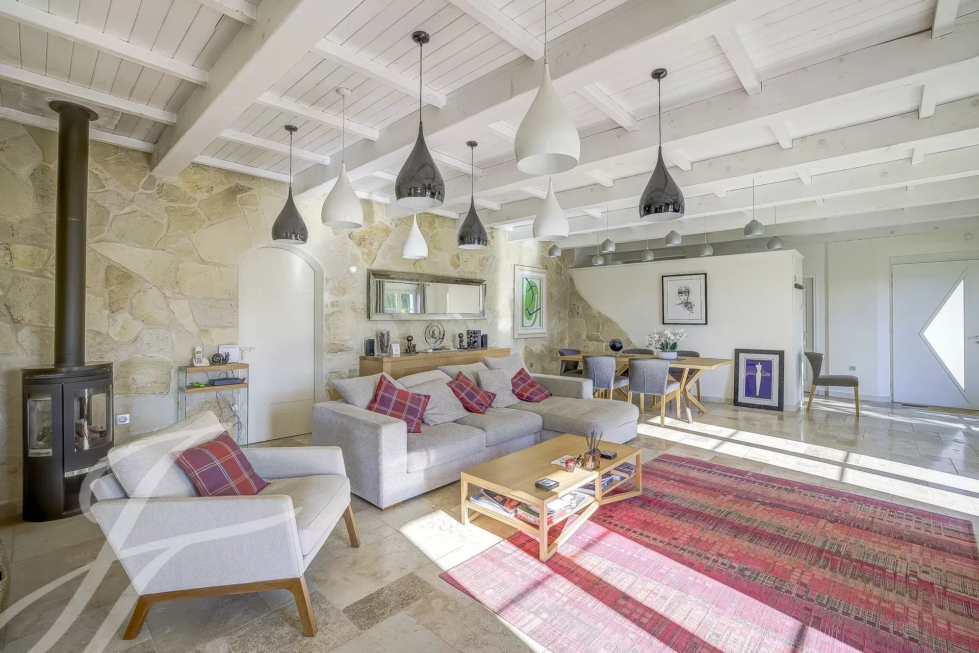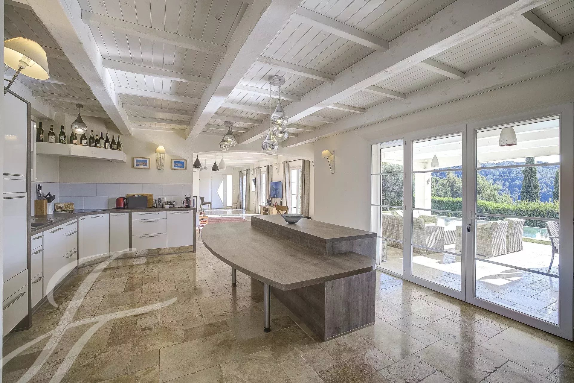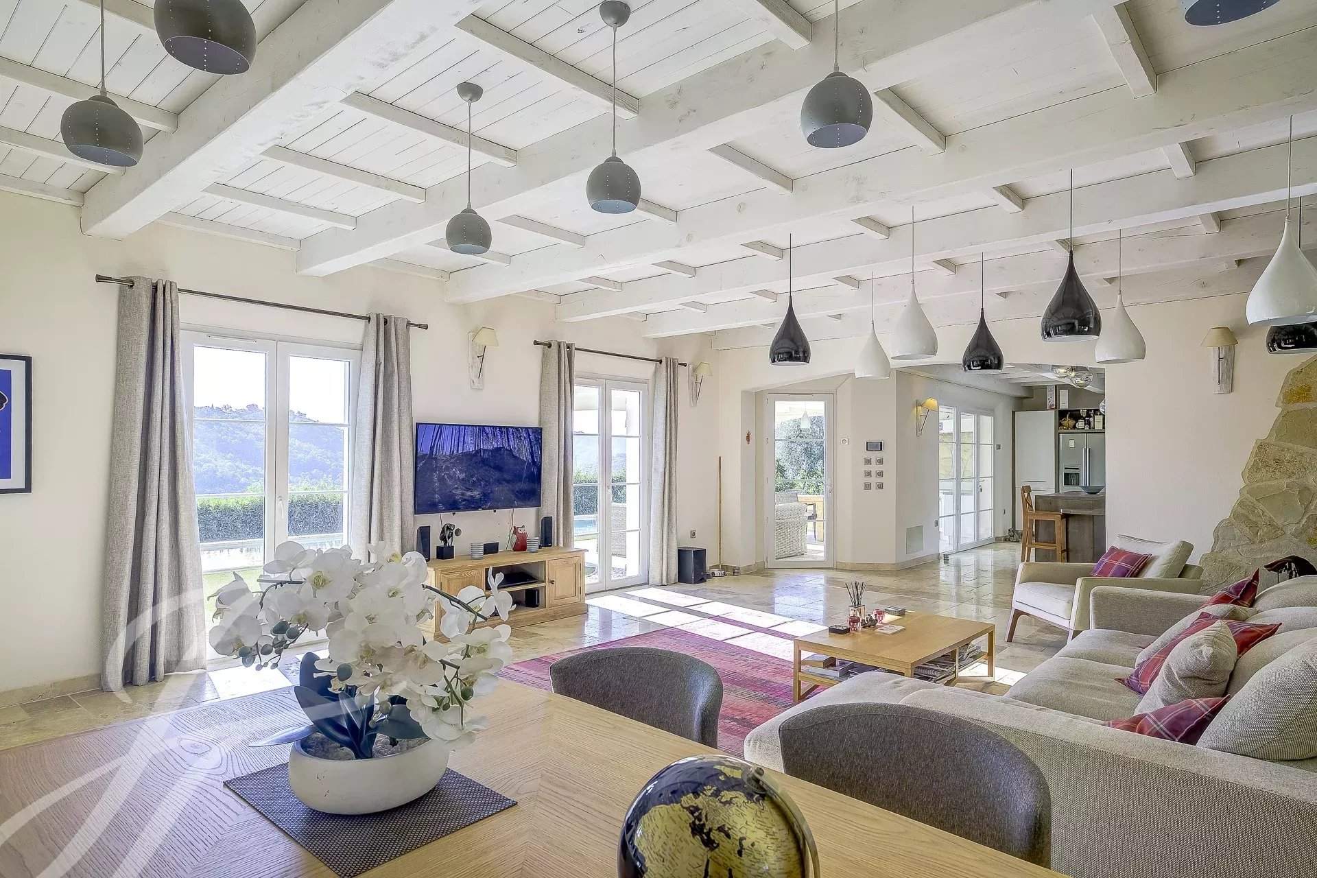 The spacious, open-plan living area opens directly onto the outdoor space and swimming pool, from where you can admire the region's magnificent scenery.
