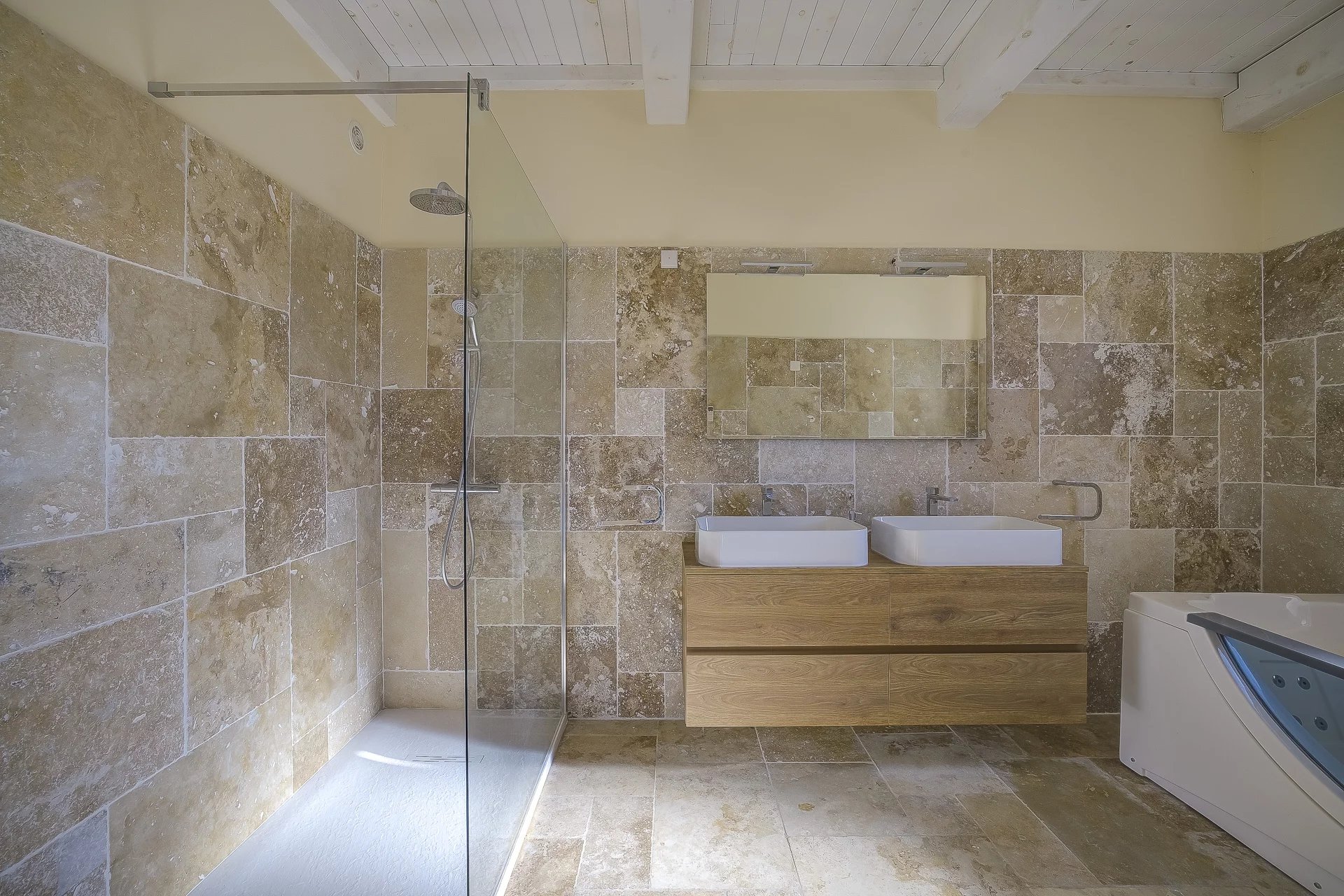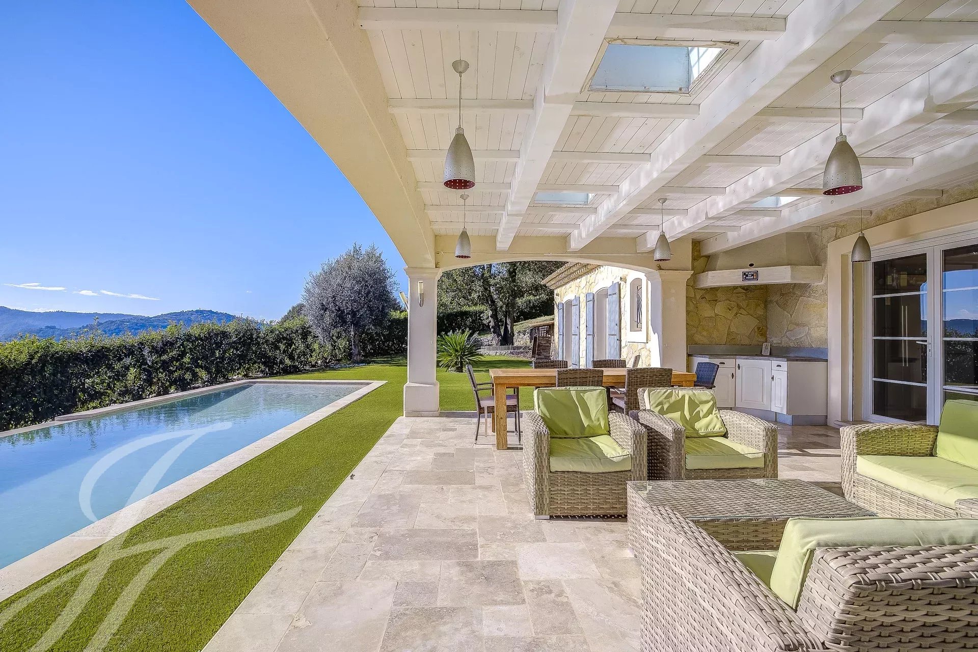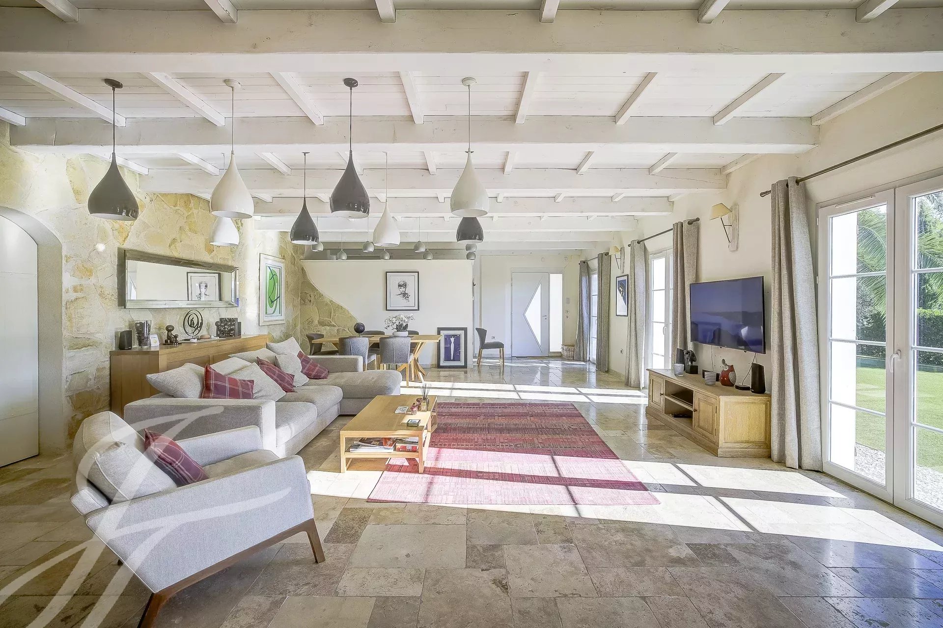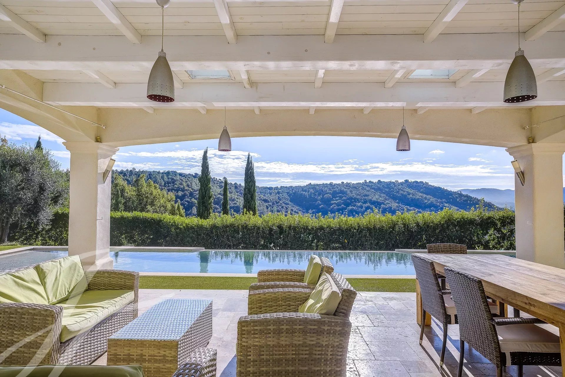 The spacious, open-plan living area opens directly onto the outdoor space and swimming pool, from where you can admire the region's magnificent scenery.