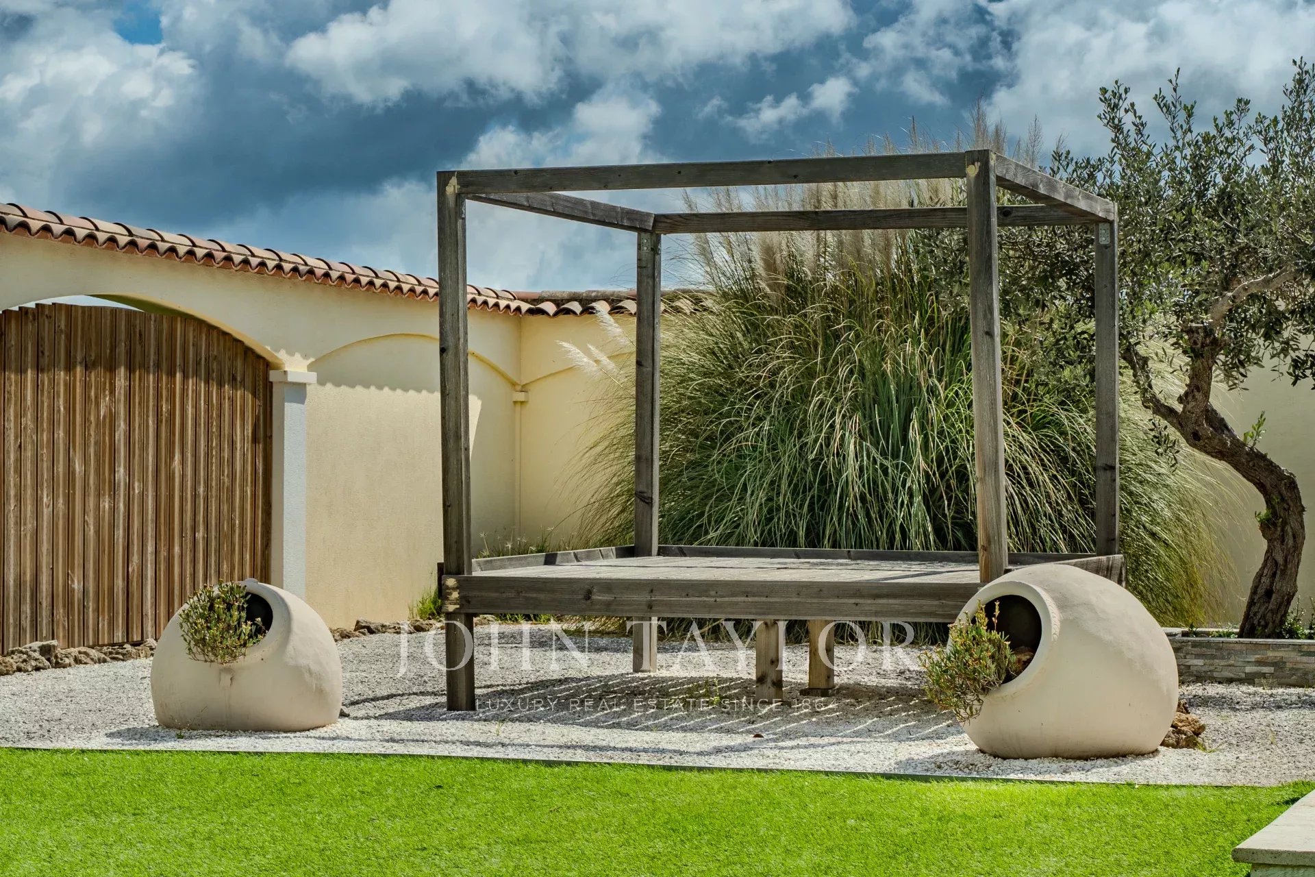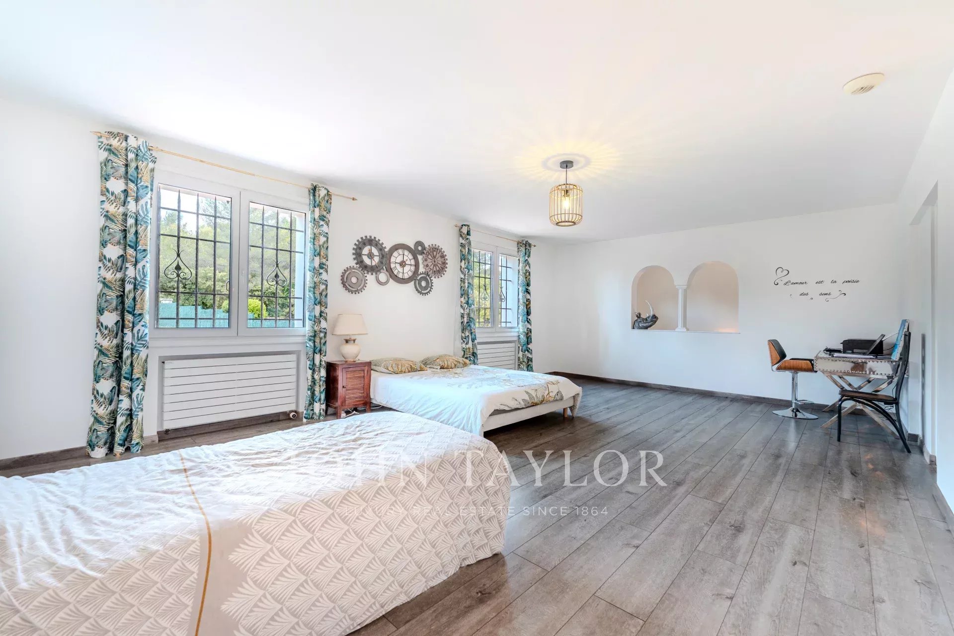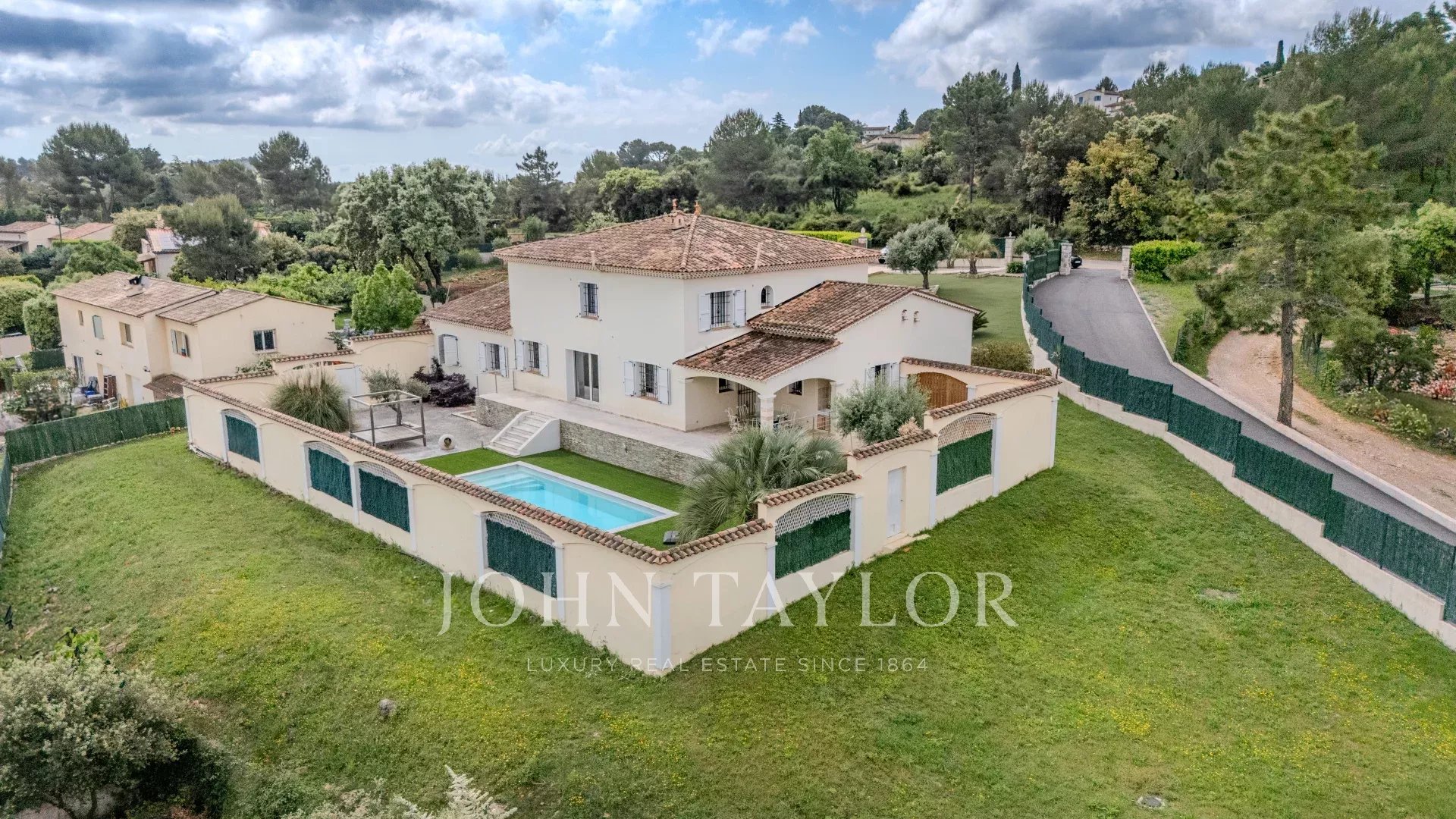 In a peaceful, sought-after setting, charming, spacious villa set in 2,951 m² of wooded grounds, featuring several terraces, a swimming pool, a double garage with mezzanine and a pergola.