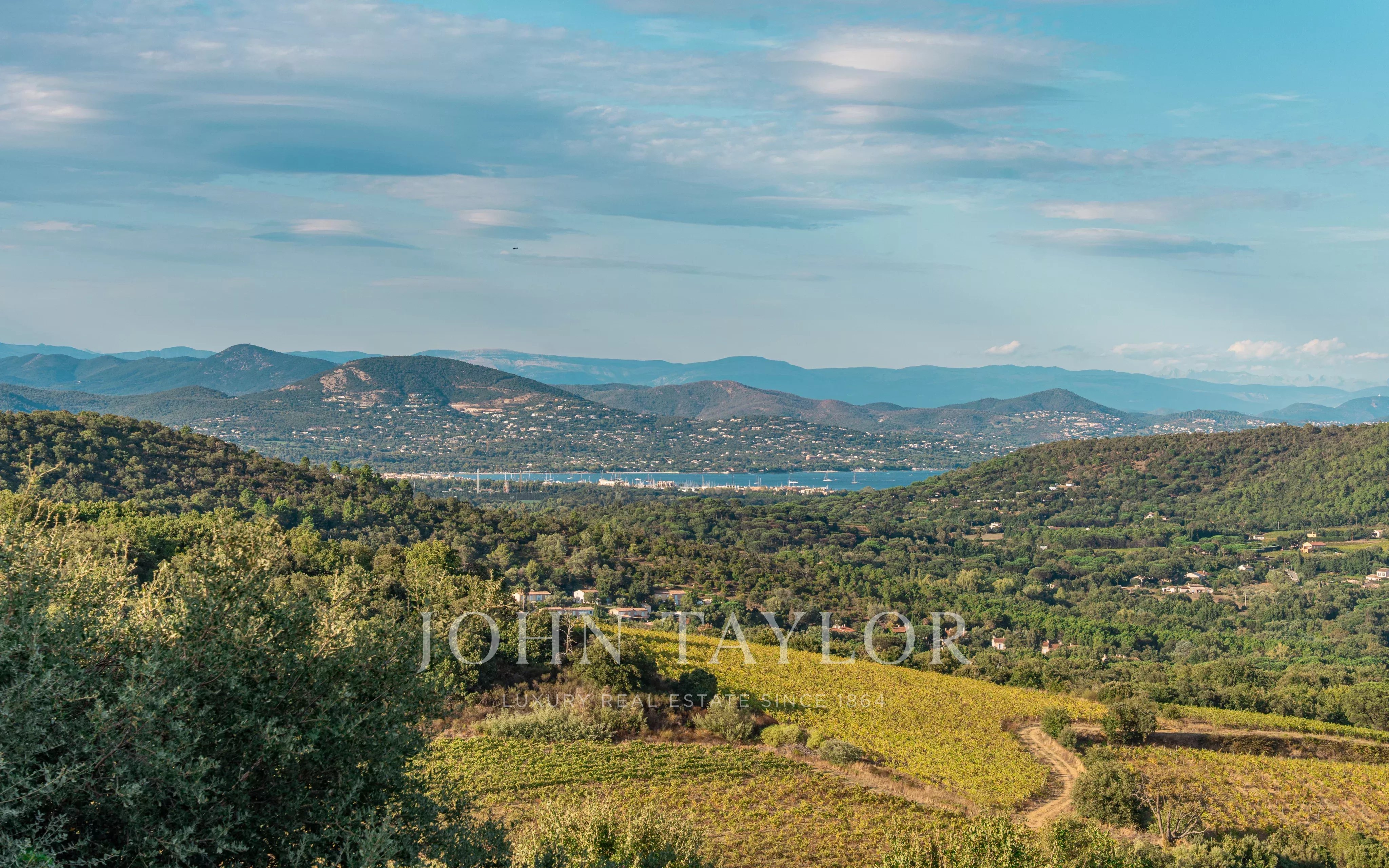 Its elevated position offers spectacular views over the Gulf of Saint-Tropez, the village of Gassin, and, on the horizon, the snow-capped peaks of the Alps.