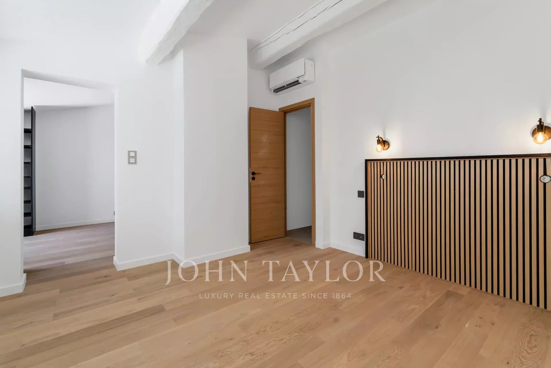 Upstairs, a bedroom with dressing room and en-suite bathroom offers a private space.