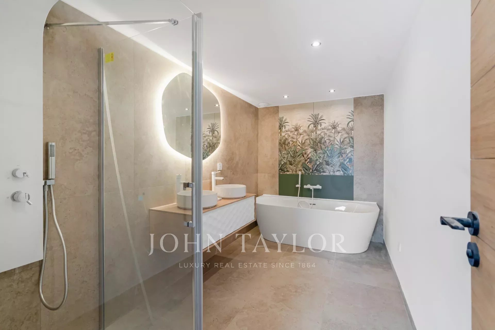 The lower level comprises an entrance hall, two additional bedrooms with en-suite bathrooms, a dressing room, laundry room, and a cellar.