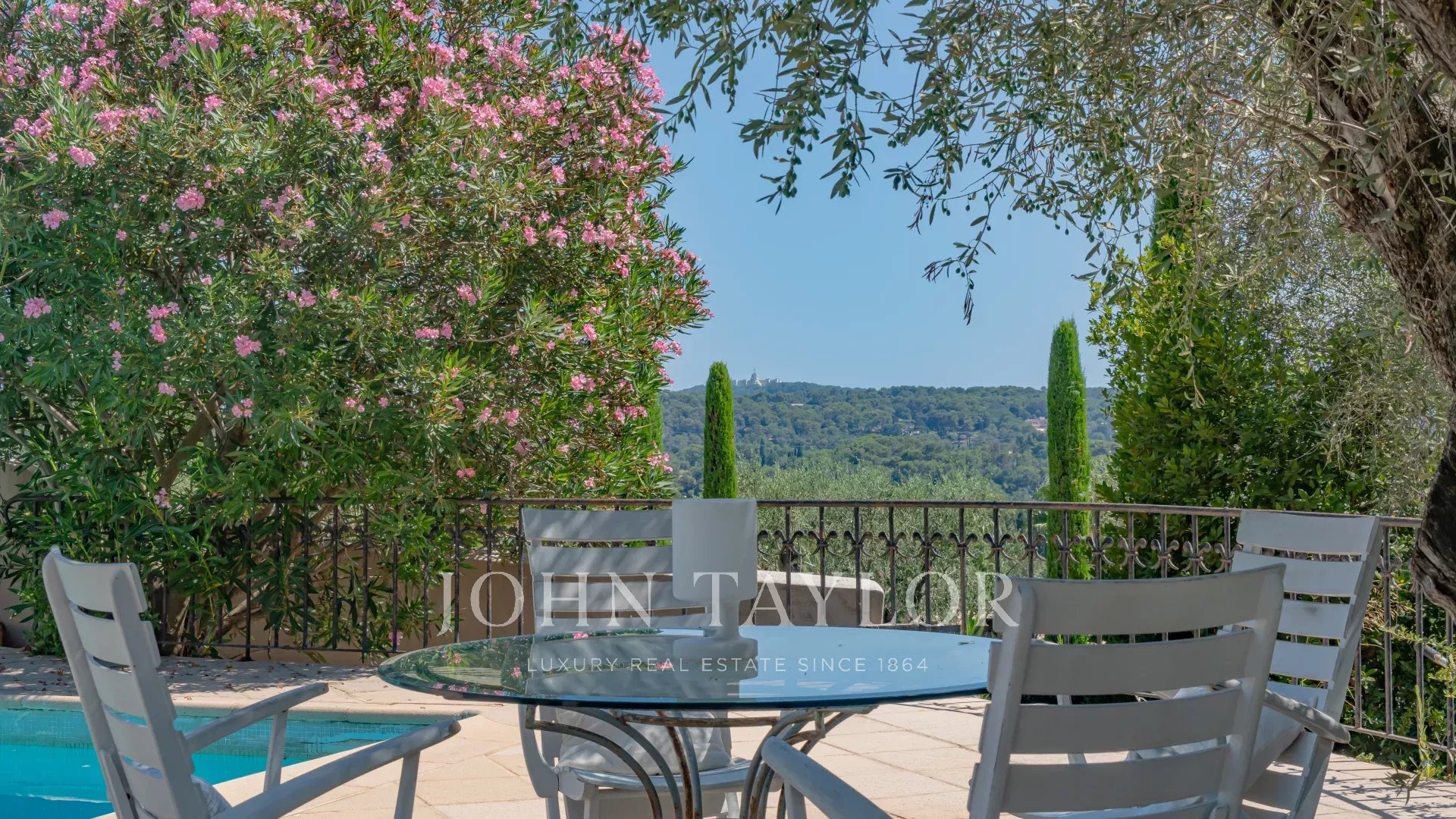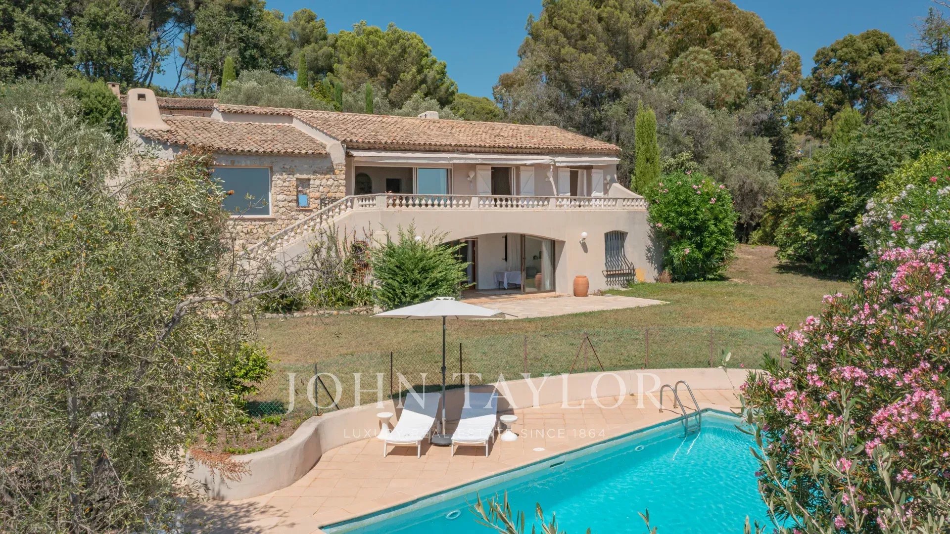 MOUGINS – PANORAMIC SEA & VILLAGE VIEW – CHARMING PROPERTY WITH GUEST HOUSE AND SHARED TENNIS COURT