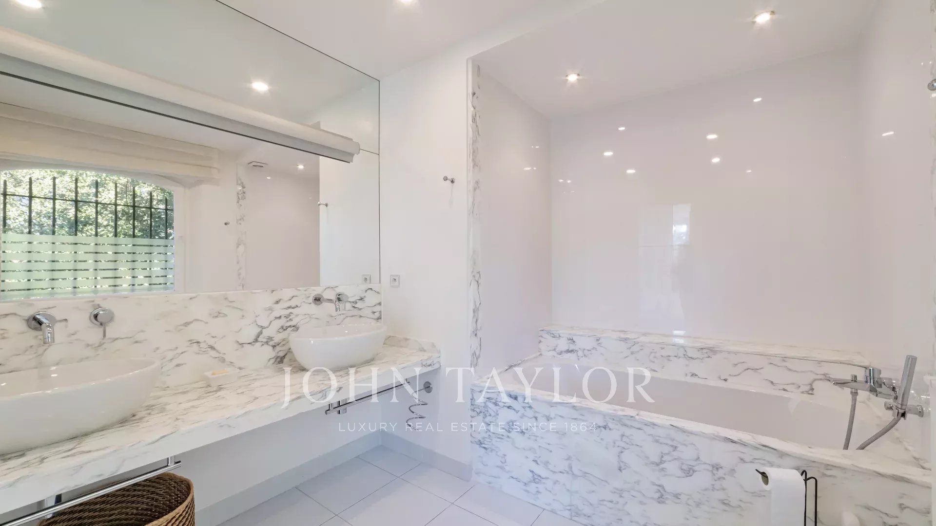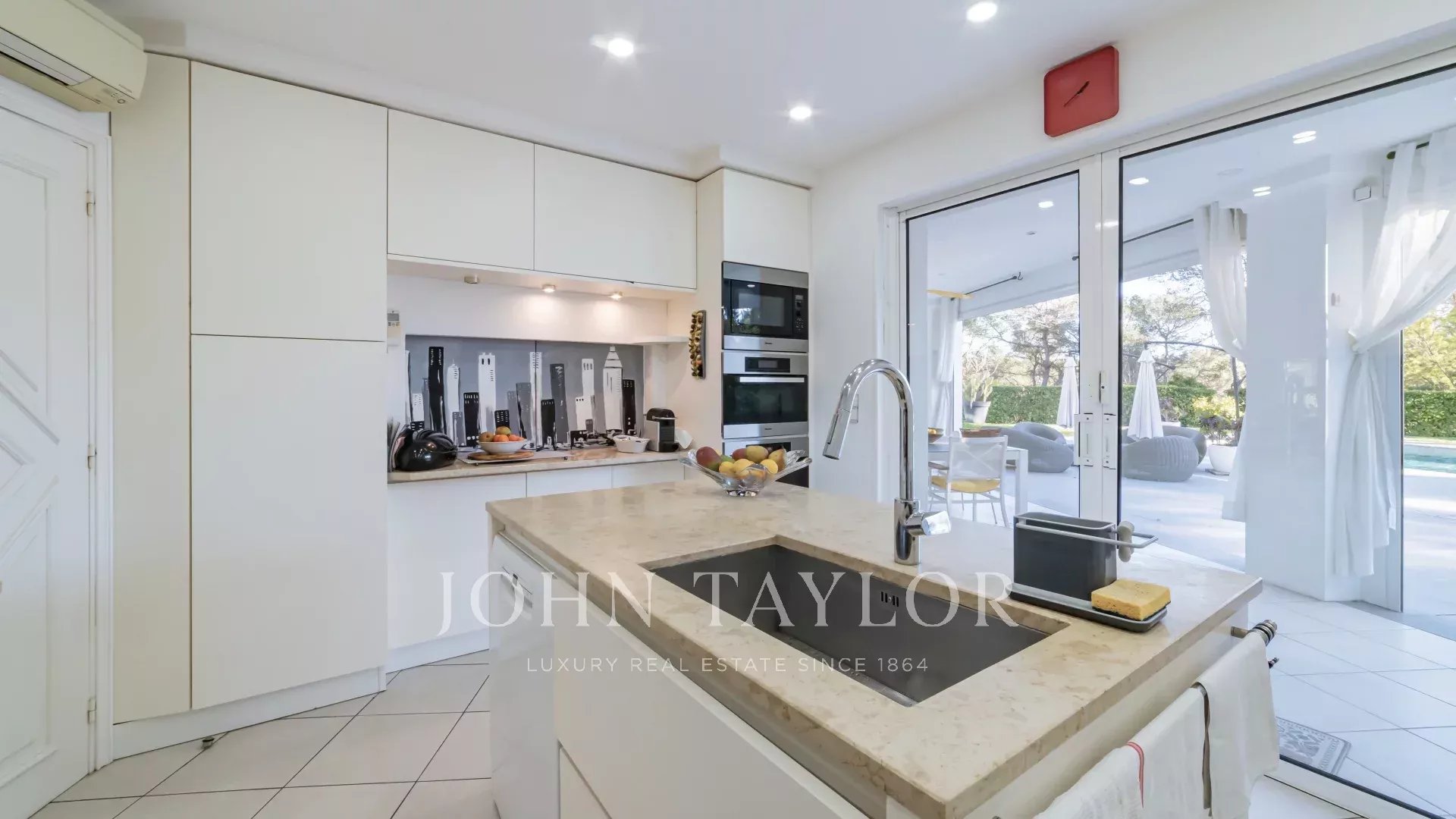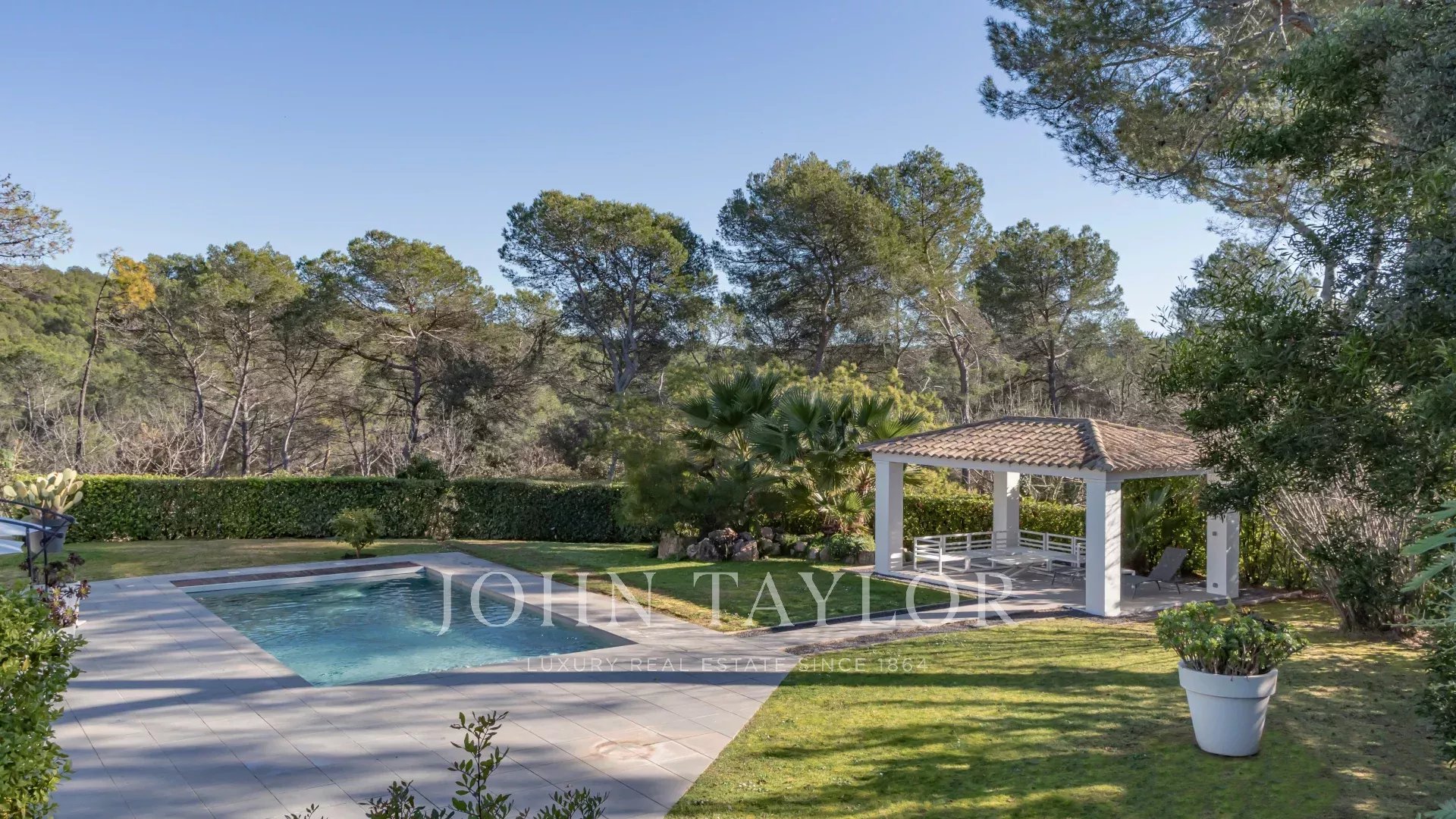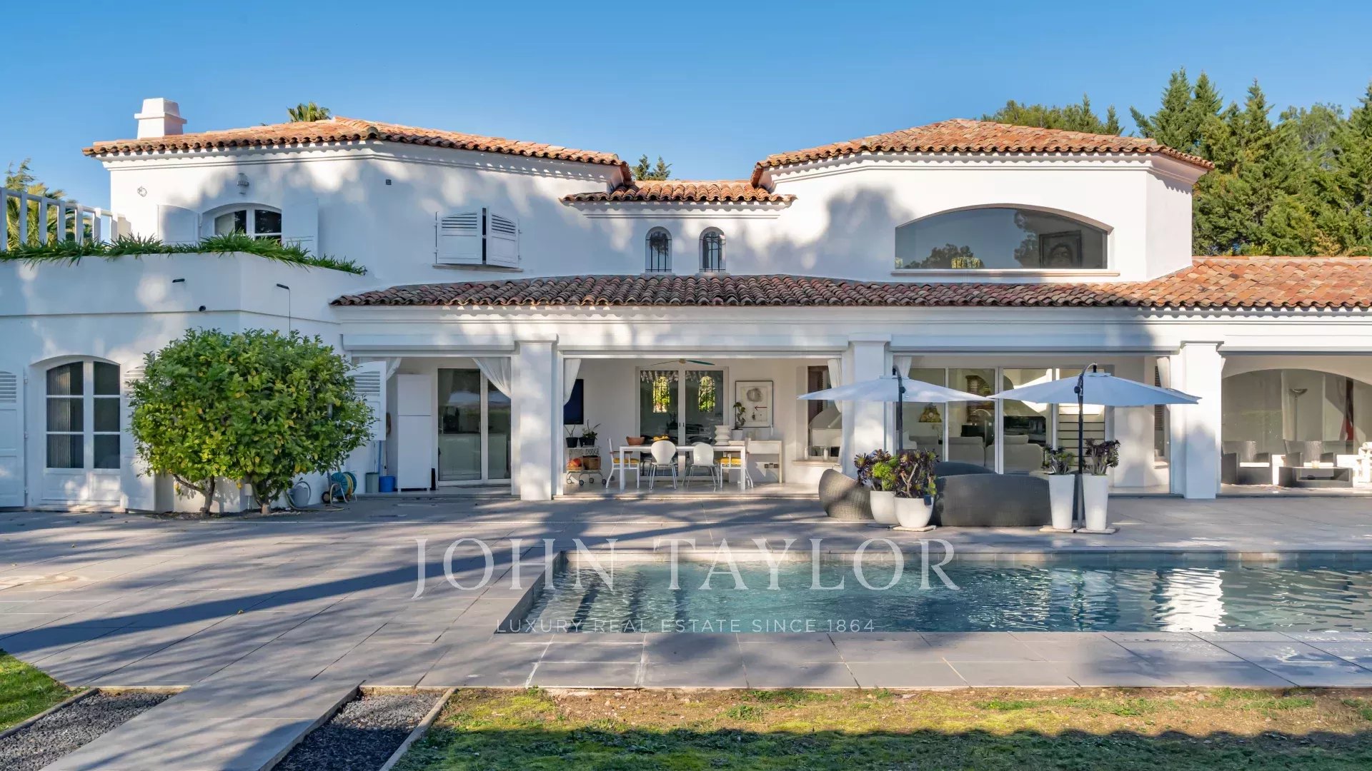 Set in the heart of a beautifully landscaped 2,400 sqm park, it reveals remarkable reception areas, enhanced by a spectacular cathedral-style living room bathed in natural light, seamlessly opening onto the outdoor spaces and the swimming pool.