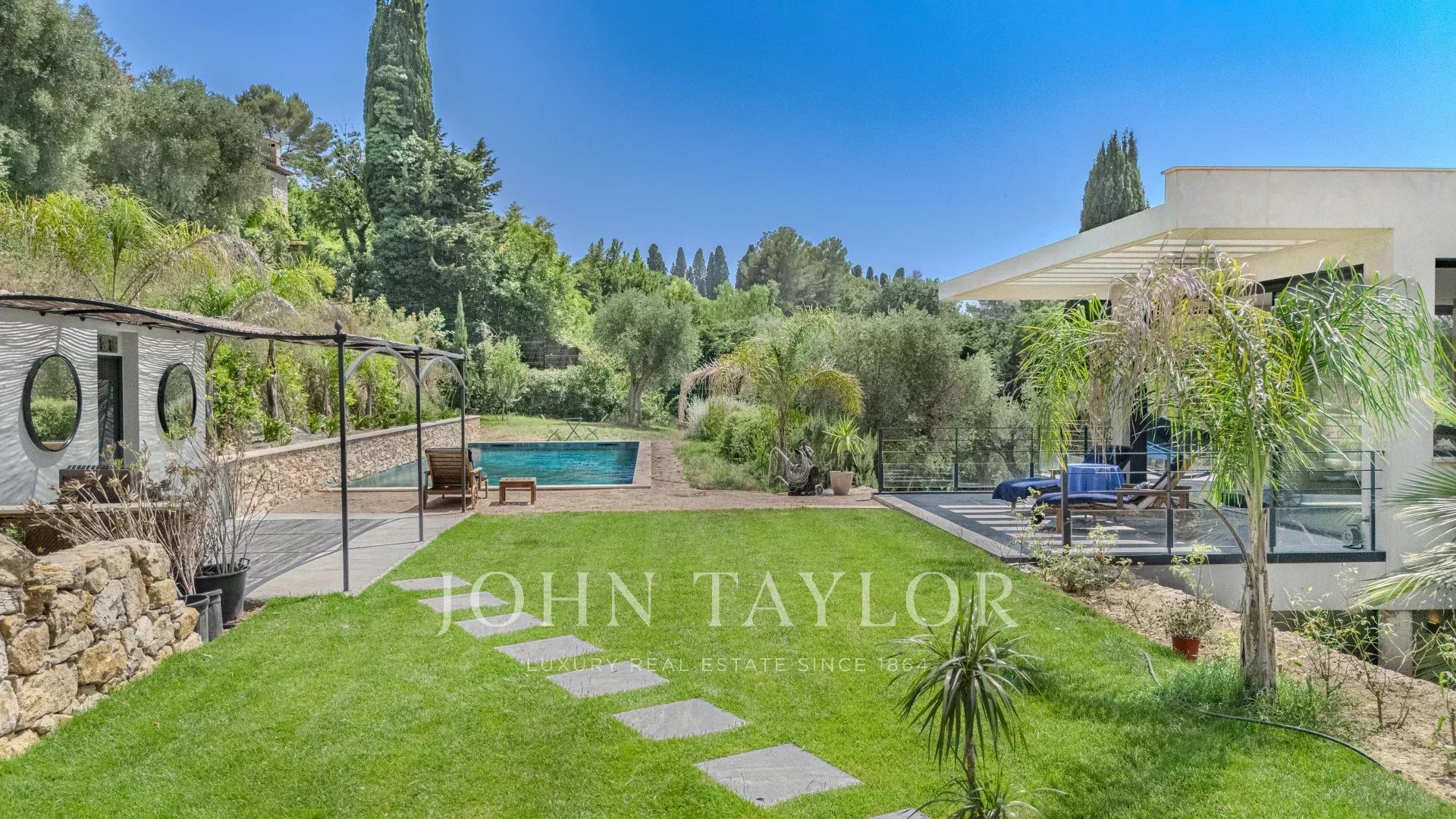 Nestled in one of Mougins' most sought-after areas, this magnificent new contemporary villa will seduce you with its architectural elegance and top-of-the-range features. Set on a 4,930 m² plot, this exceptional property offers breathtaking views over the picturesque village of Mougins.