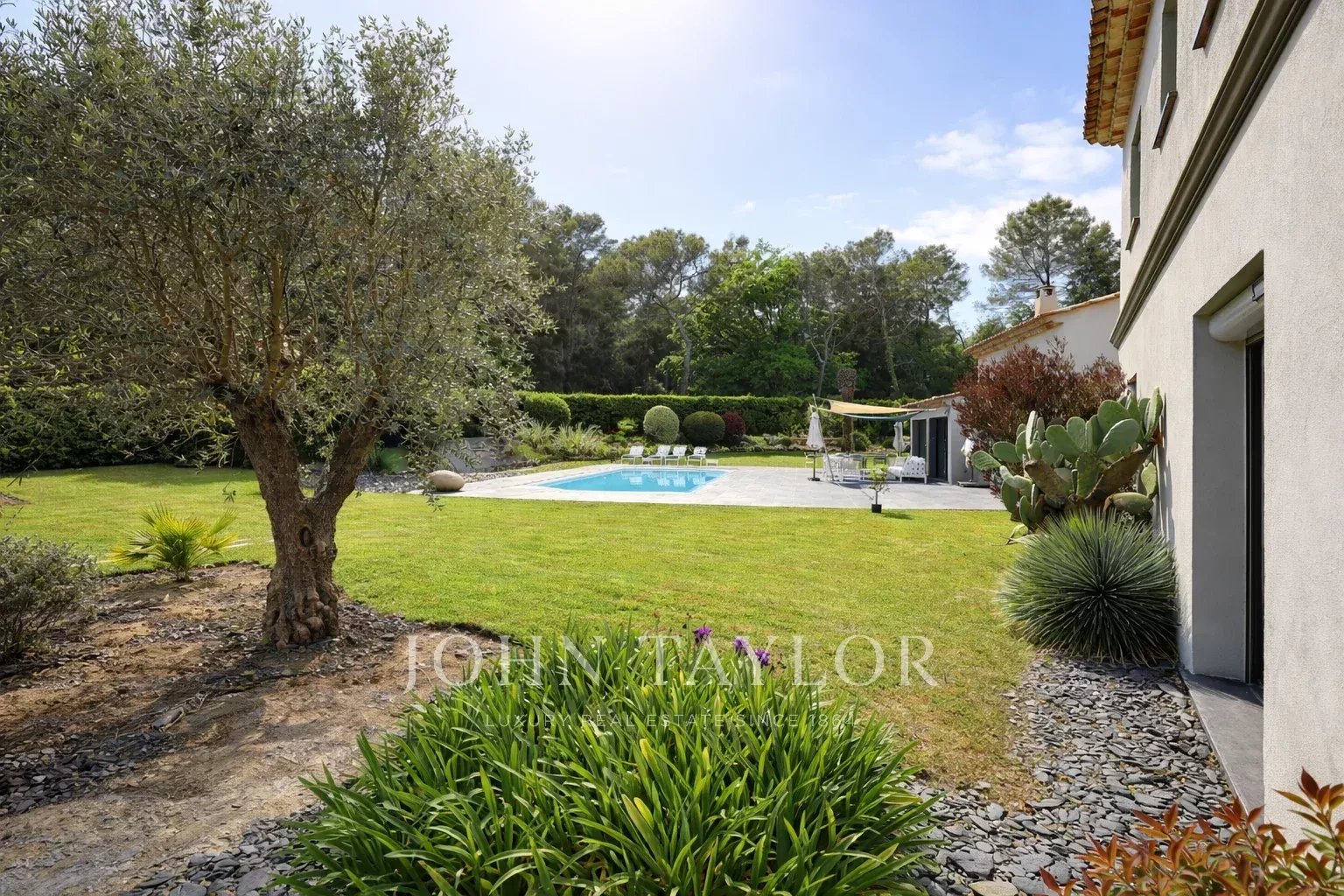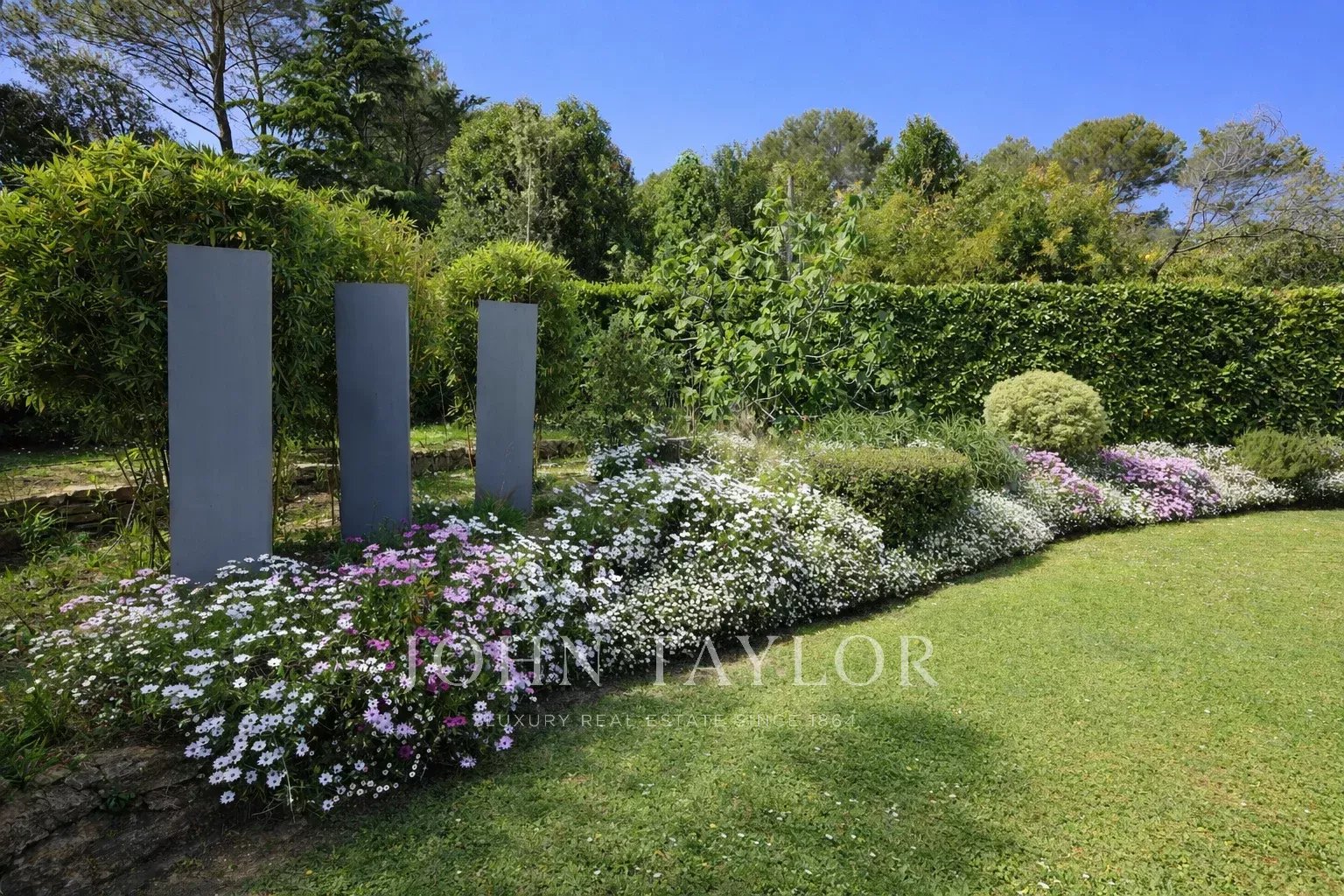 Within the prestigious Mougins Parks estate, a confidential address among the most sought after in the region, benefiting from 24-hour security, this exceptional property of approximately 310 m² embodies a rare way of living, combining elegance, serenity, and absolute refinement. Nestled in the heart of a magnificent flat landscaped garden of 2,500 m², it offers a remarkably peaceful living environment.