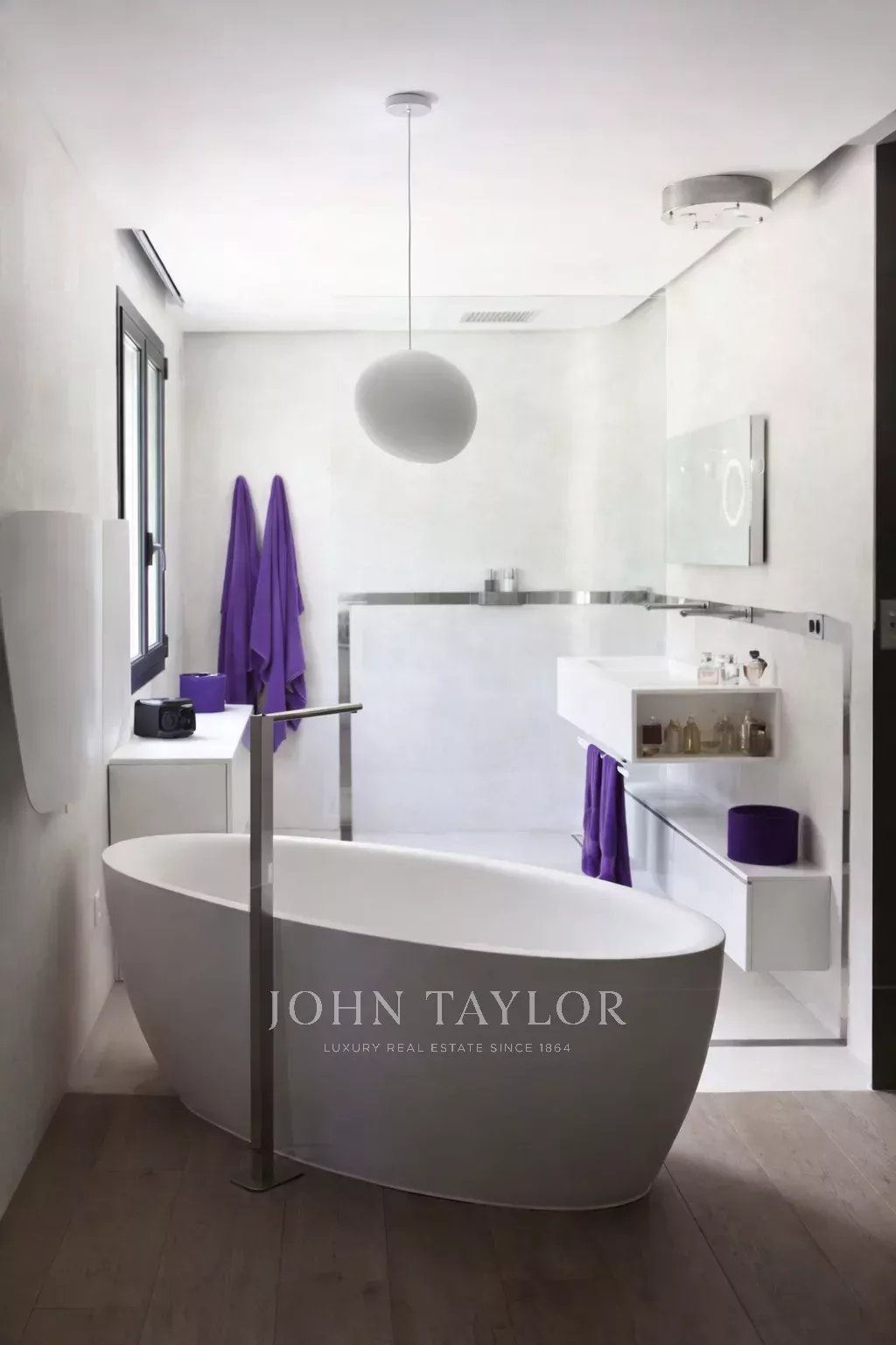 The high-end features include a gym, a library-office, a wine cellar, a shelter for three vehicles, as well as a comprehensive security system with alarm and video surveillance. The latest-generation home automation and Starlink connectivity complete this exceptional property. An elevation possibility also offers rare development potential.
