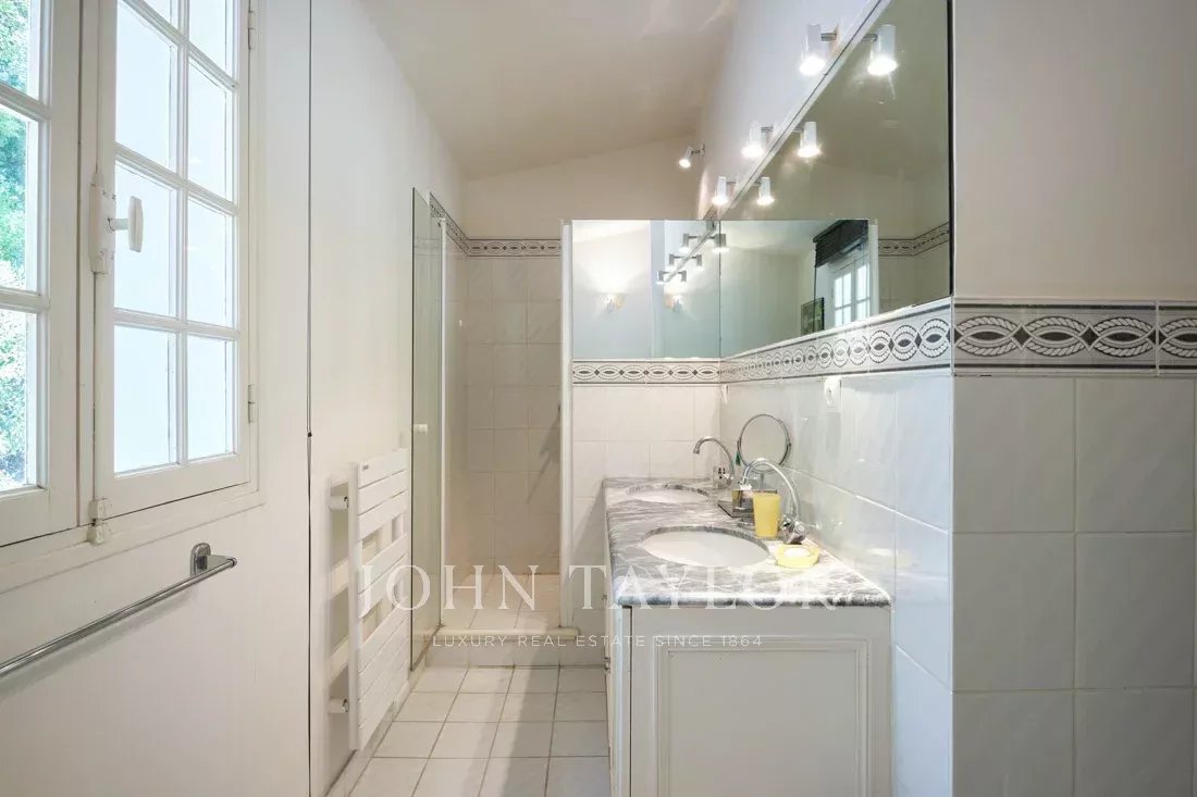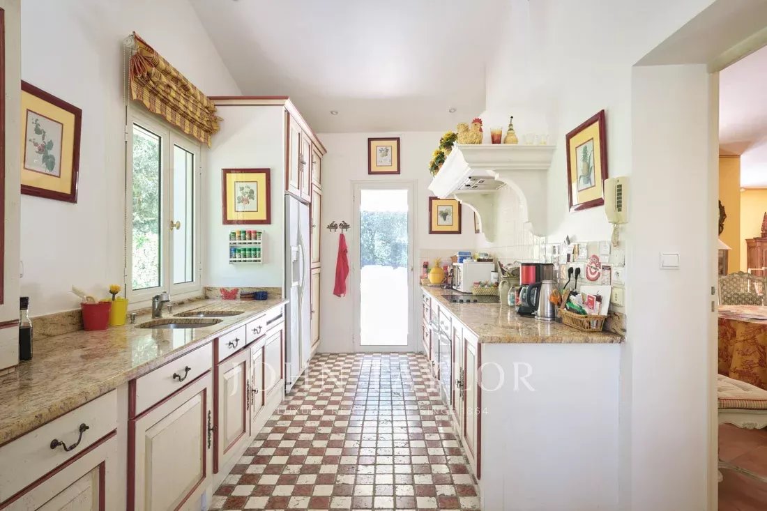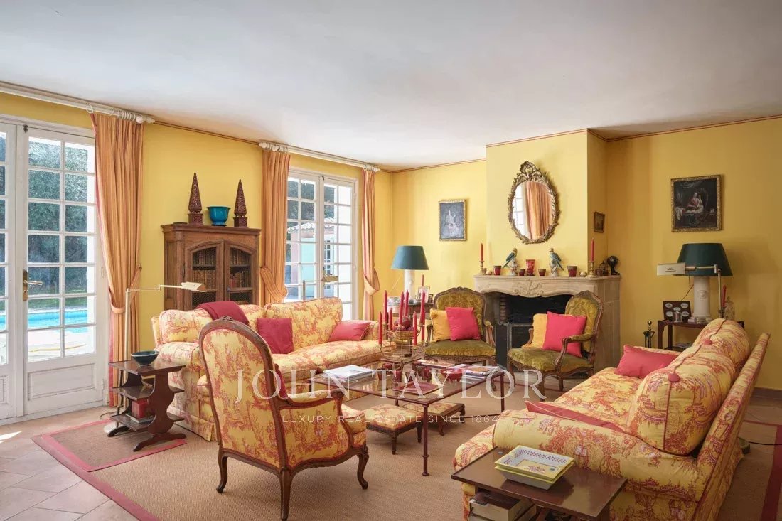 Co-exclusivity: On the hillside of Mougins, just a stone's throw from the old village, this beautiful 234 m² Provencal property benefits from 3,218 m² of flat land with an olive grove.