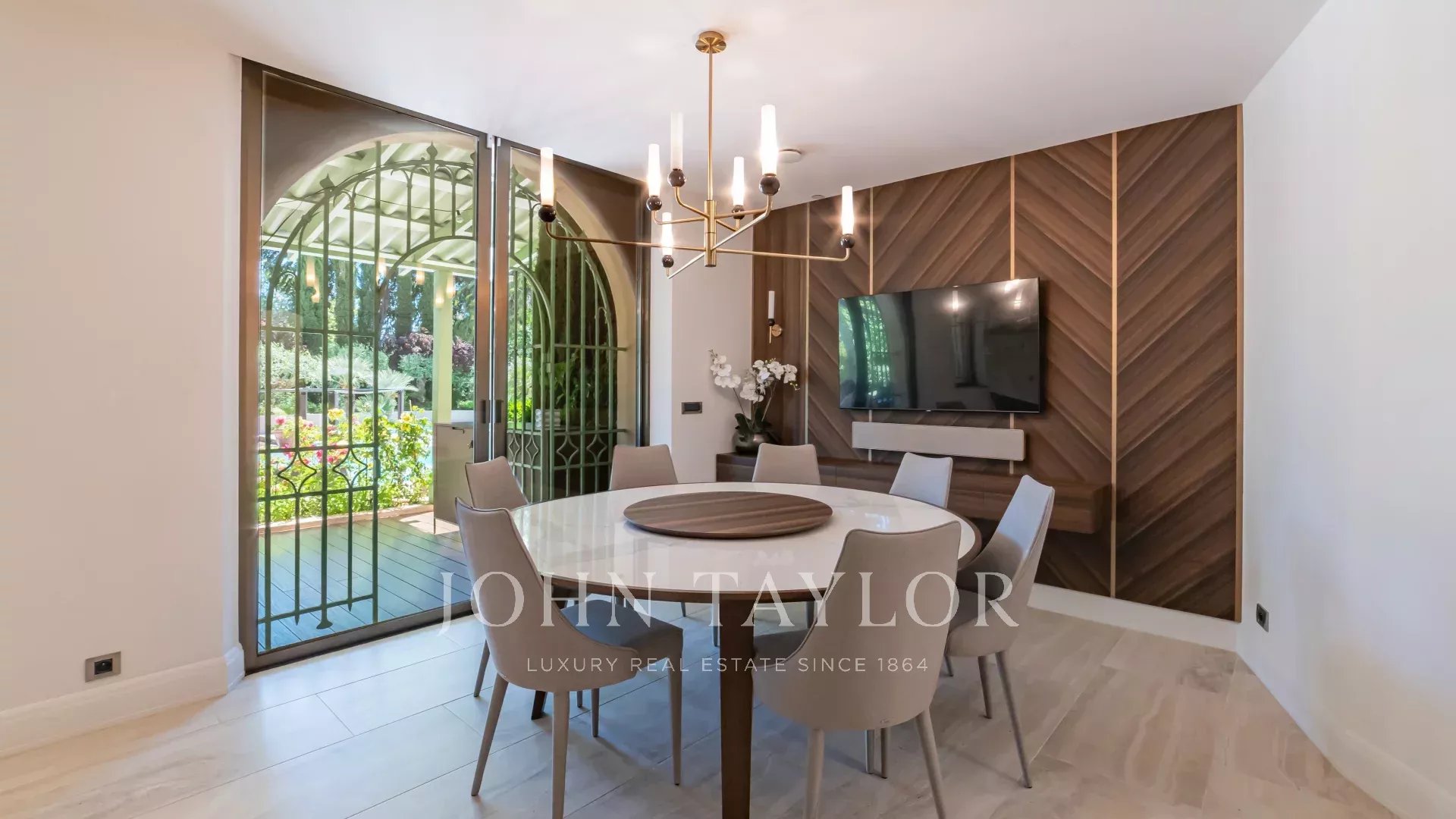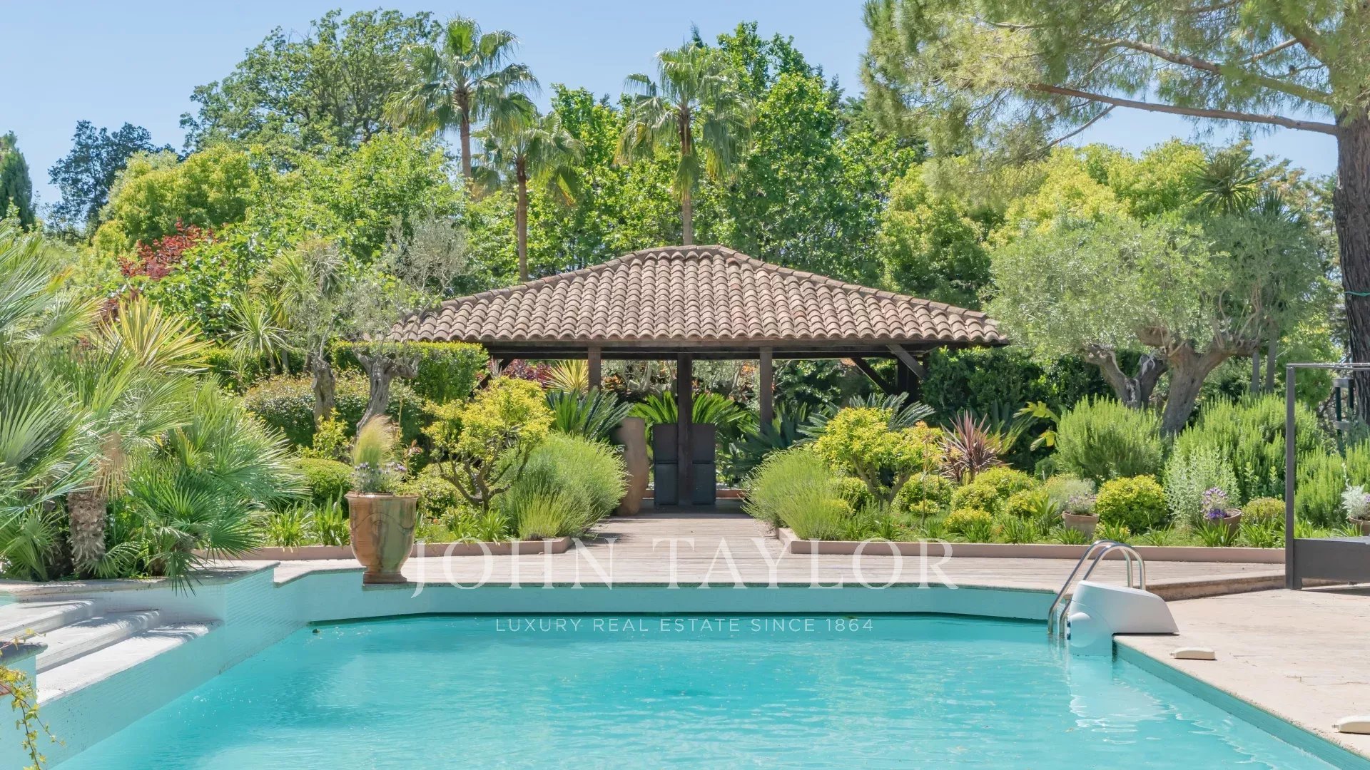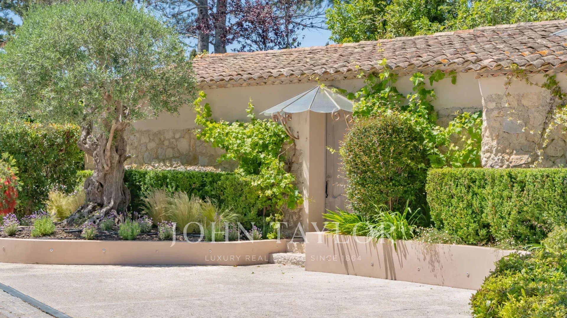 In a quiet, secured and gated Domaine of Mougins, superb property nestled in a landscaped parc of approx. 7,700 sq.m with swimming pool and tennis court.