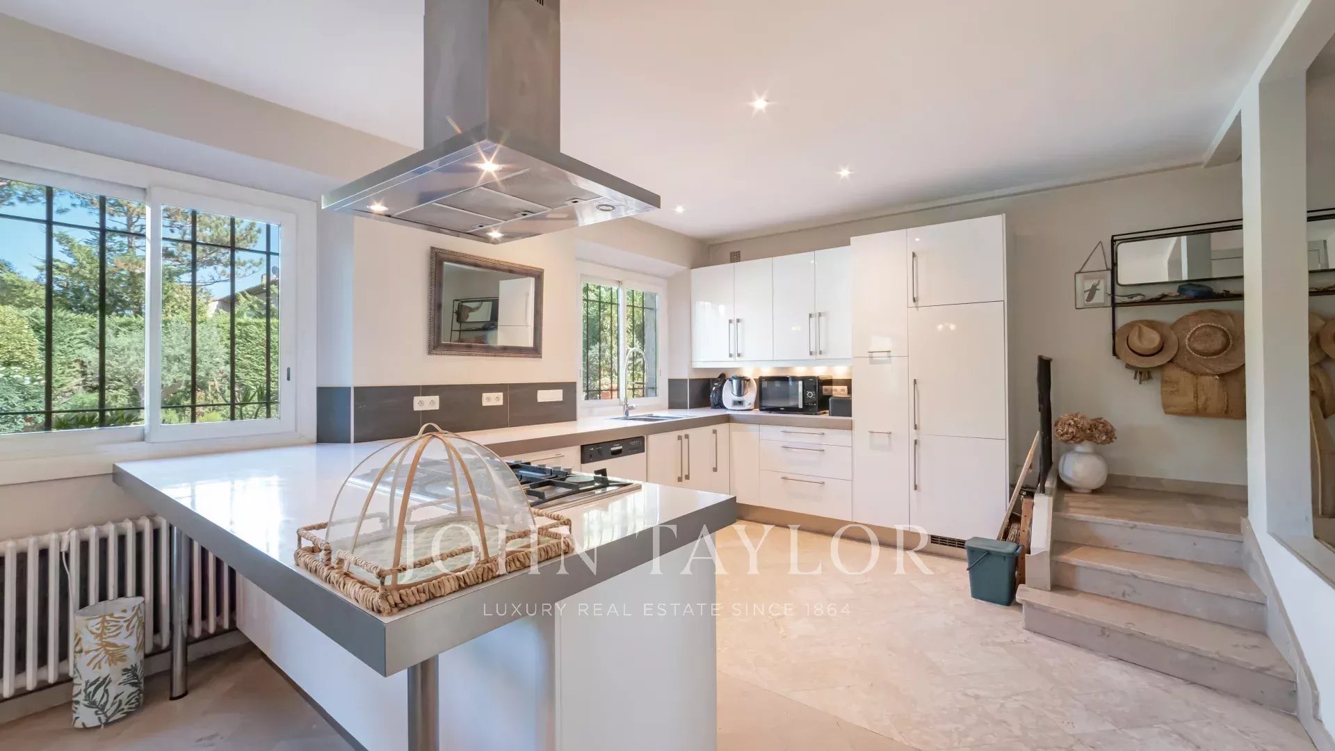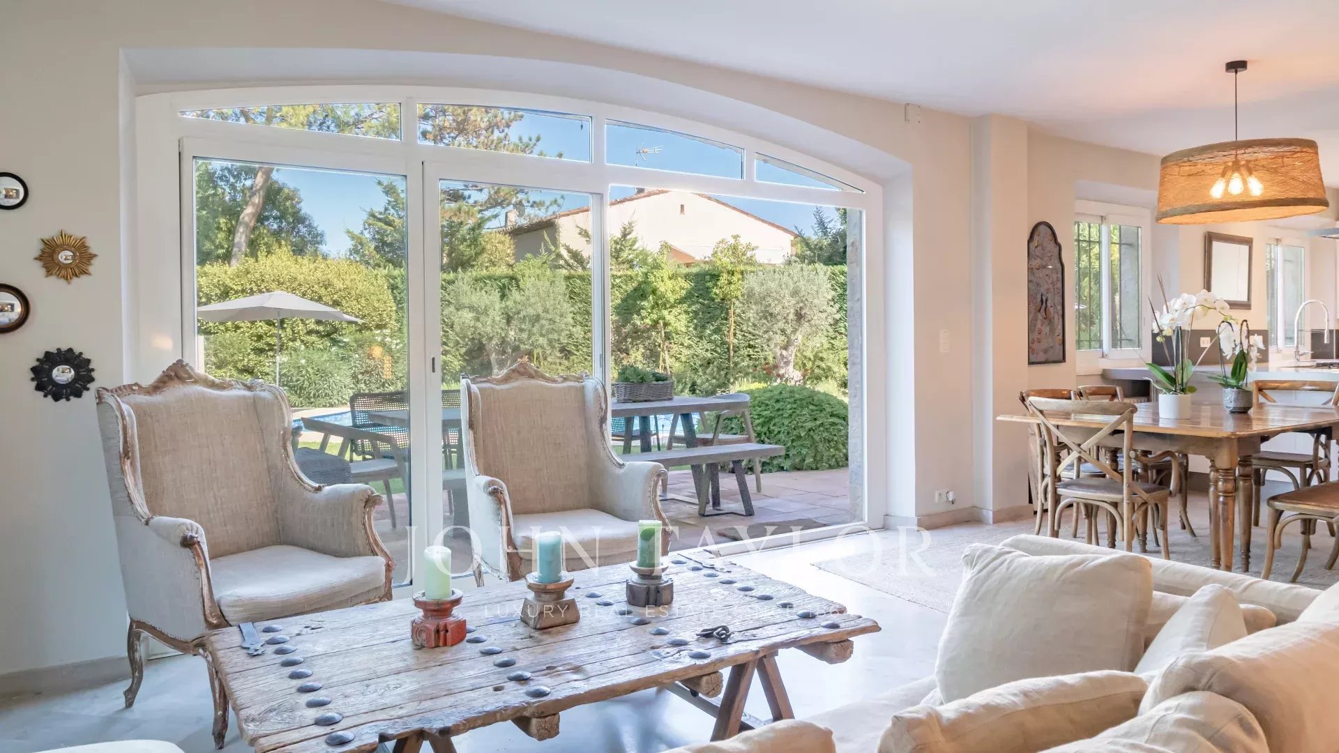 In the residential district of l'Étang, this elegant freestone villa, designed by renowned architect Gridaine, spans around 300 m² and sits on a 1,746 m² plot with swimming pool.